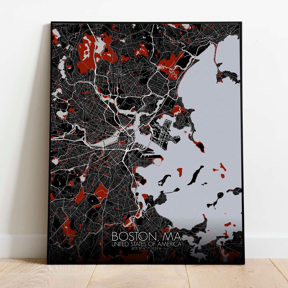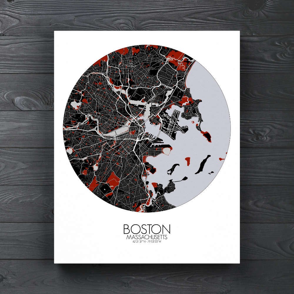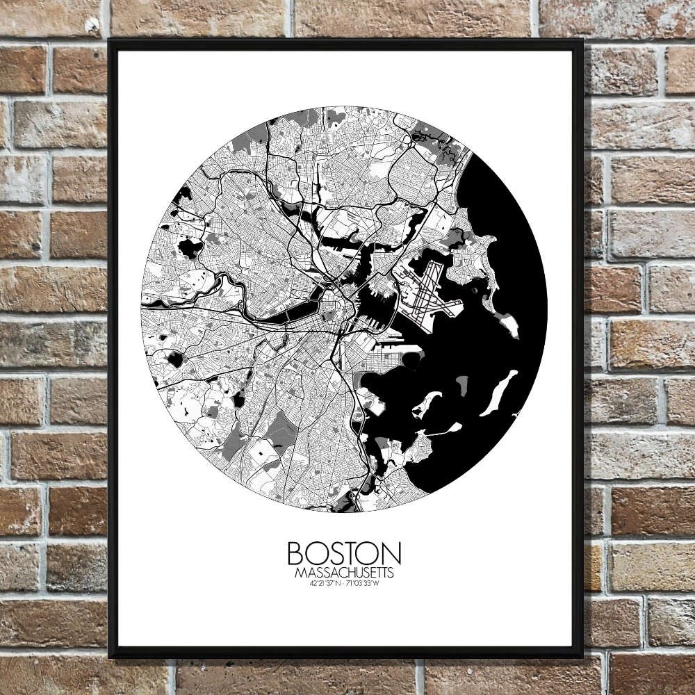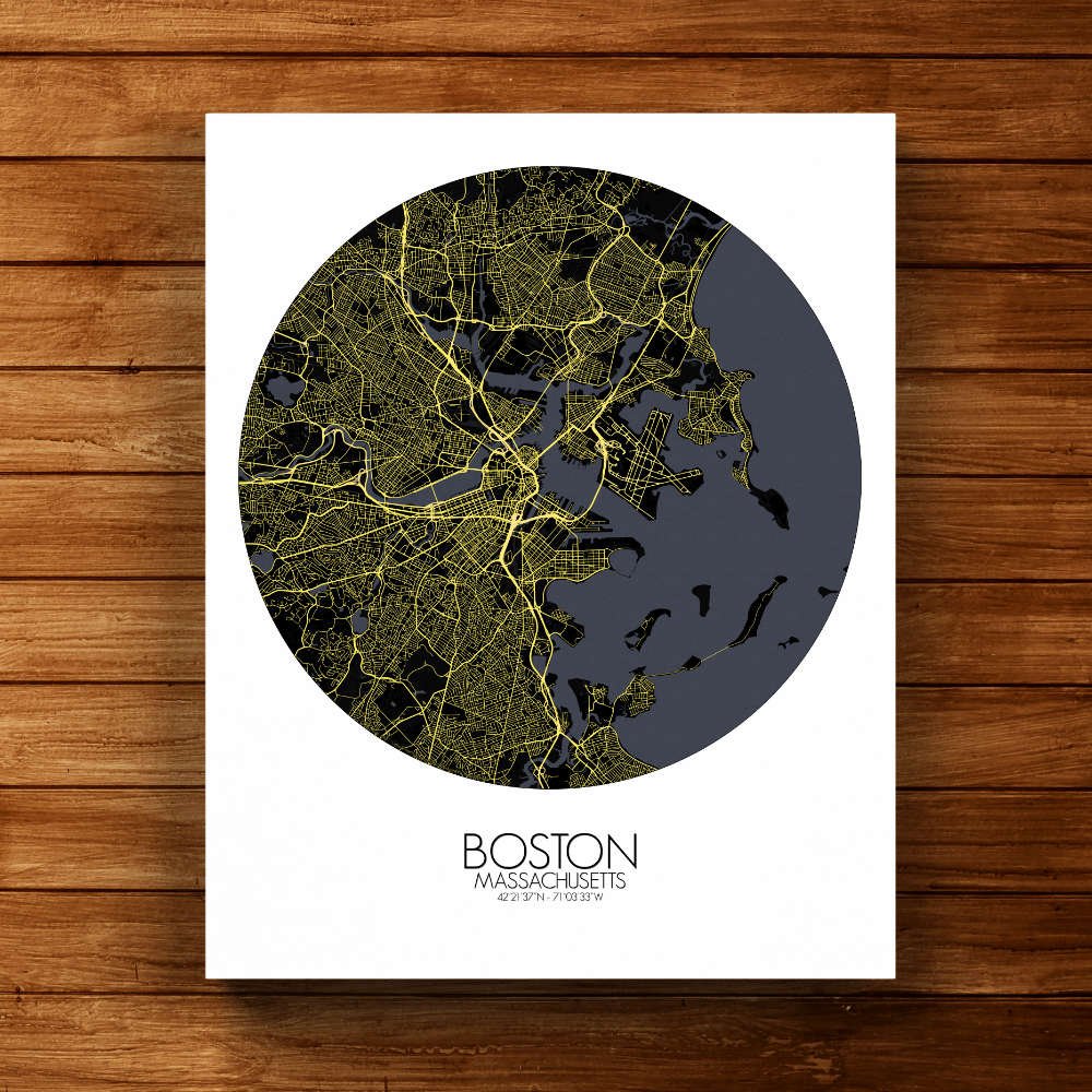 Consigue un City Map (mapa mural de ciudad) impreso de Boston, Massachusetts. ¡Elige el tamaño, el color y el diseño de tu mapa a continuación!