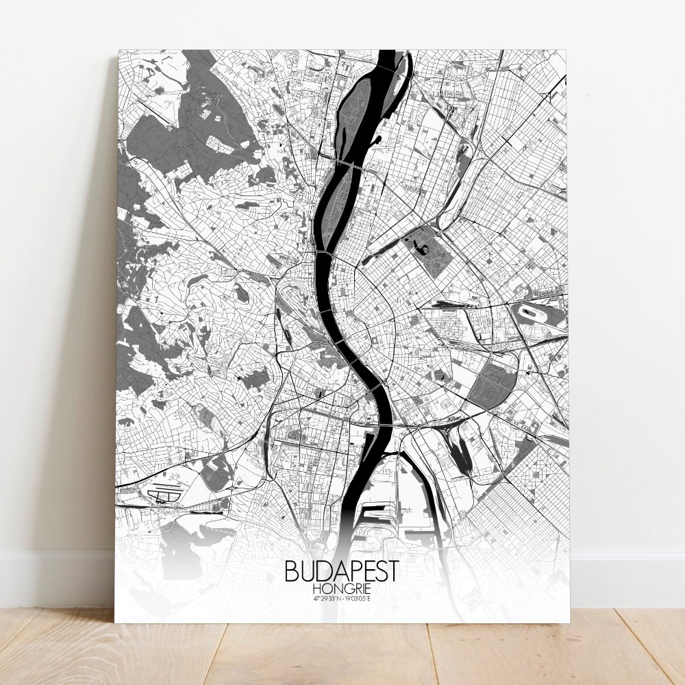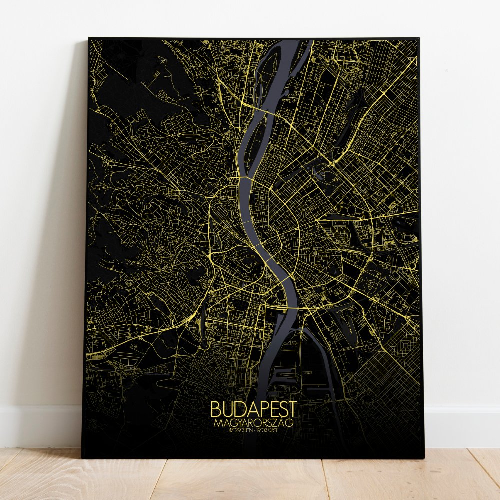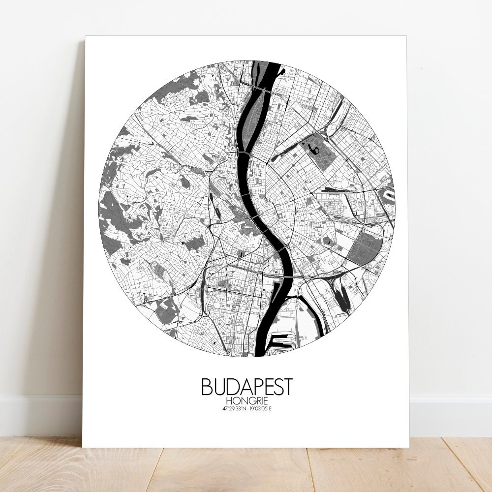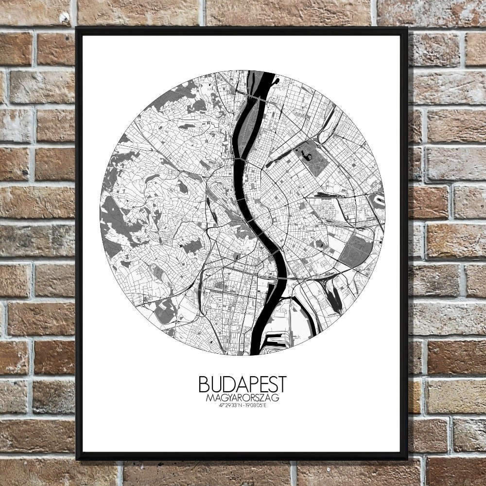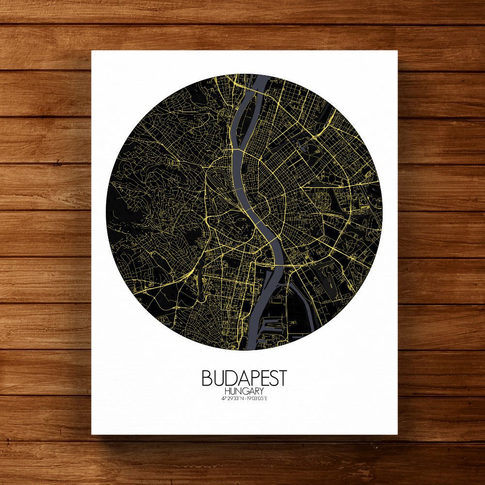 Poster City map de Budapest, Hungría: Cada contorno de este mapa cuenta una historia — de legiones romanas, baños otomanos, cafeterías llenas de pensadores y leyendas susurradas en los adoquines.