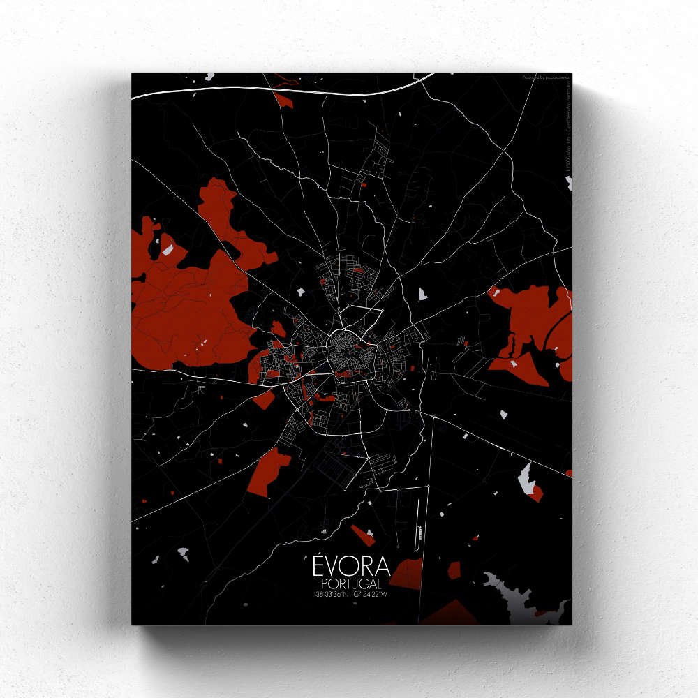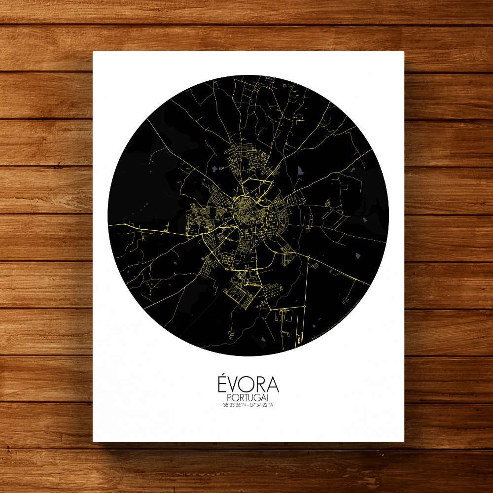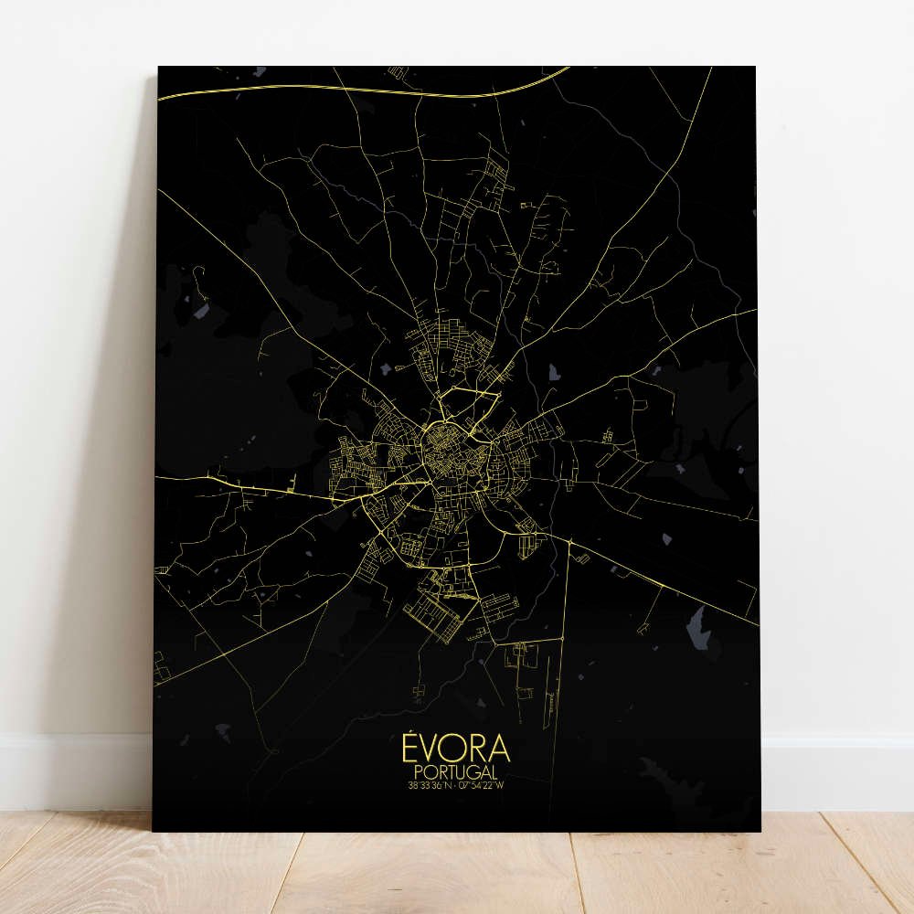 Consigue un City Map (mapa mural de ciudad) impreso de Évora, Portugal. ¡Elige el tamaño, el color y el diseño de tu mapa a continuación!