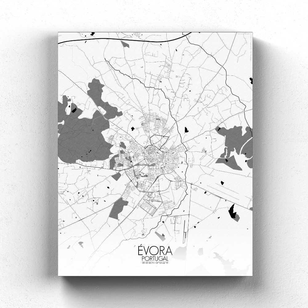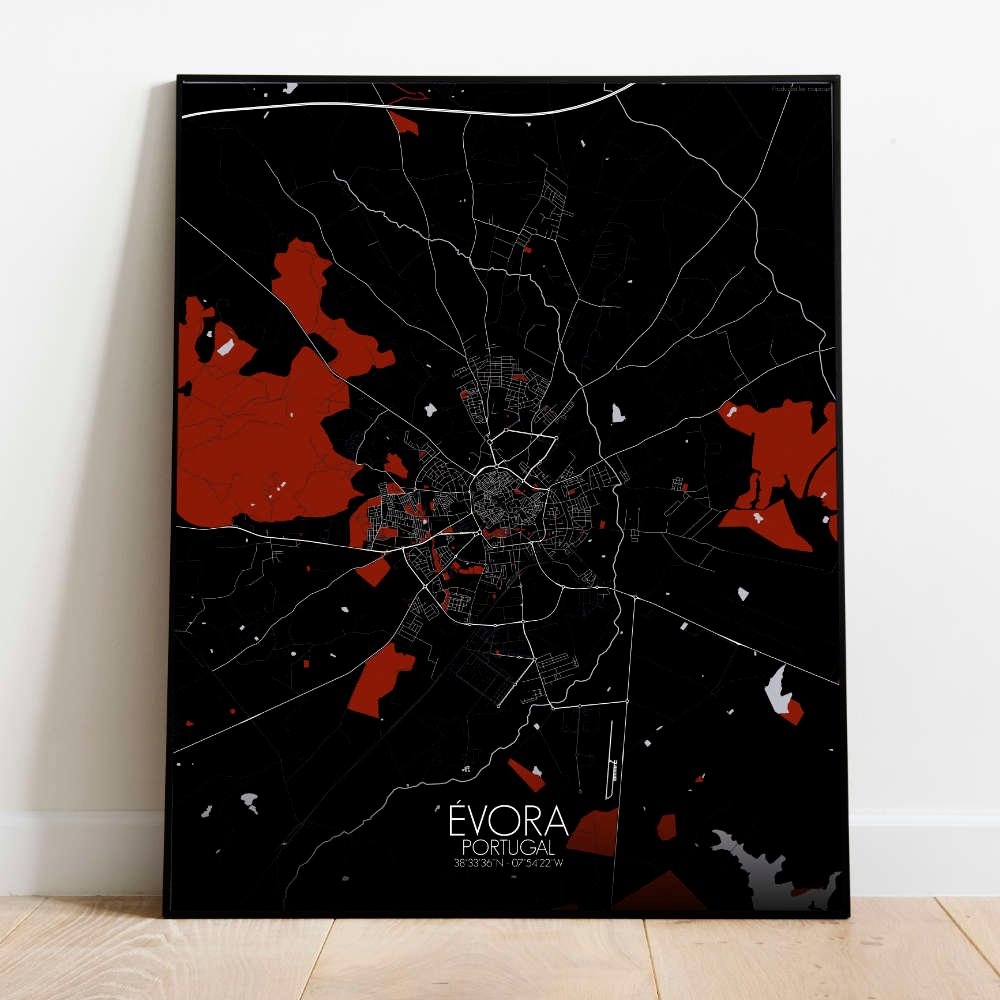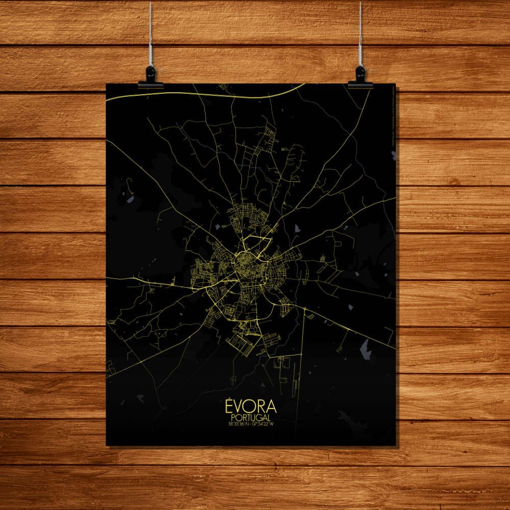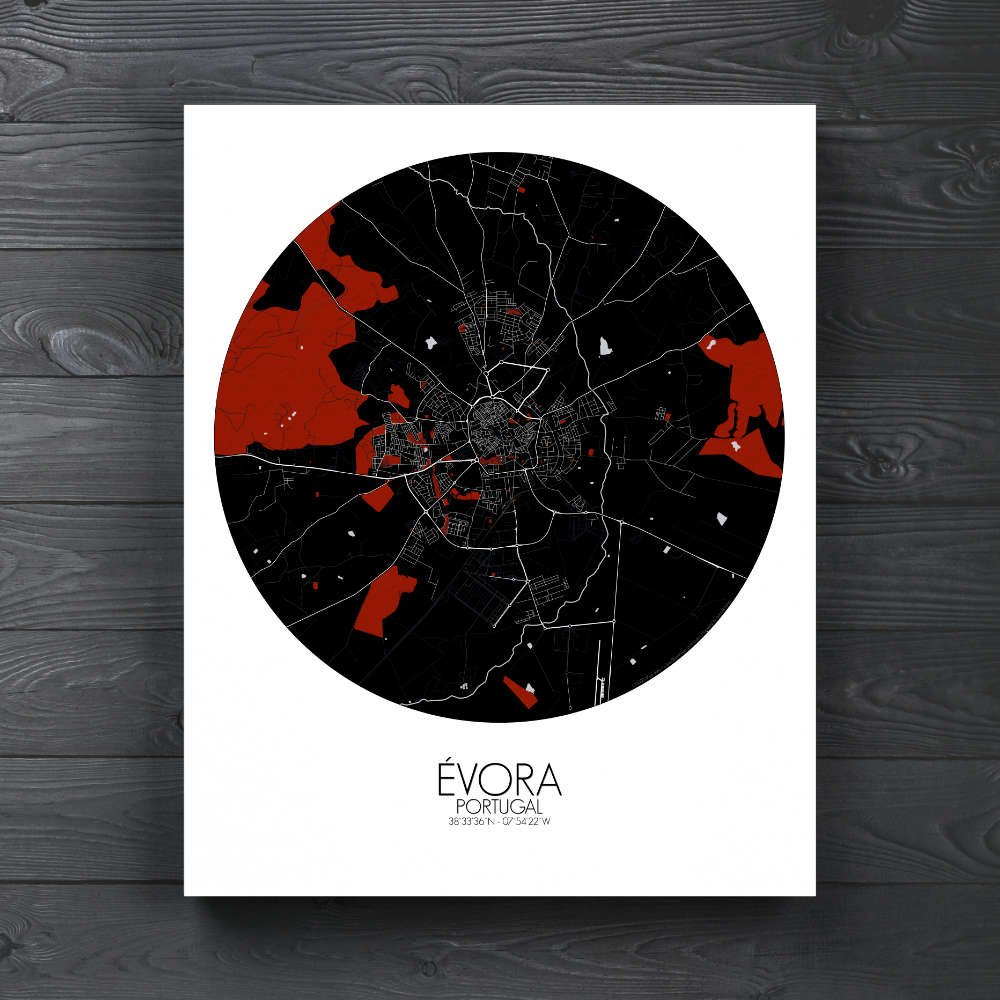 Consigue un City Map (mapa mural de ciudad) impreso de Évora, Portugal. ¡Elige el tamaño, el color y el diseño de tu mapa a continuación!