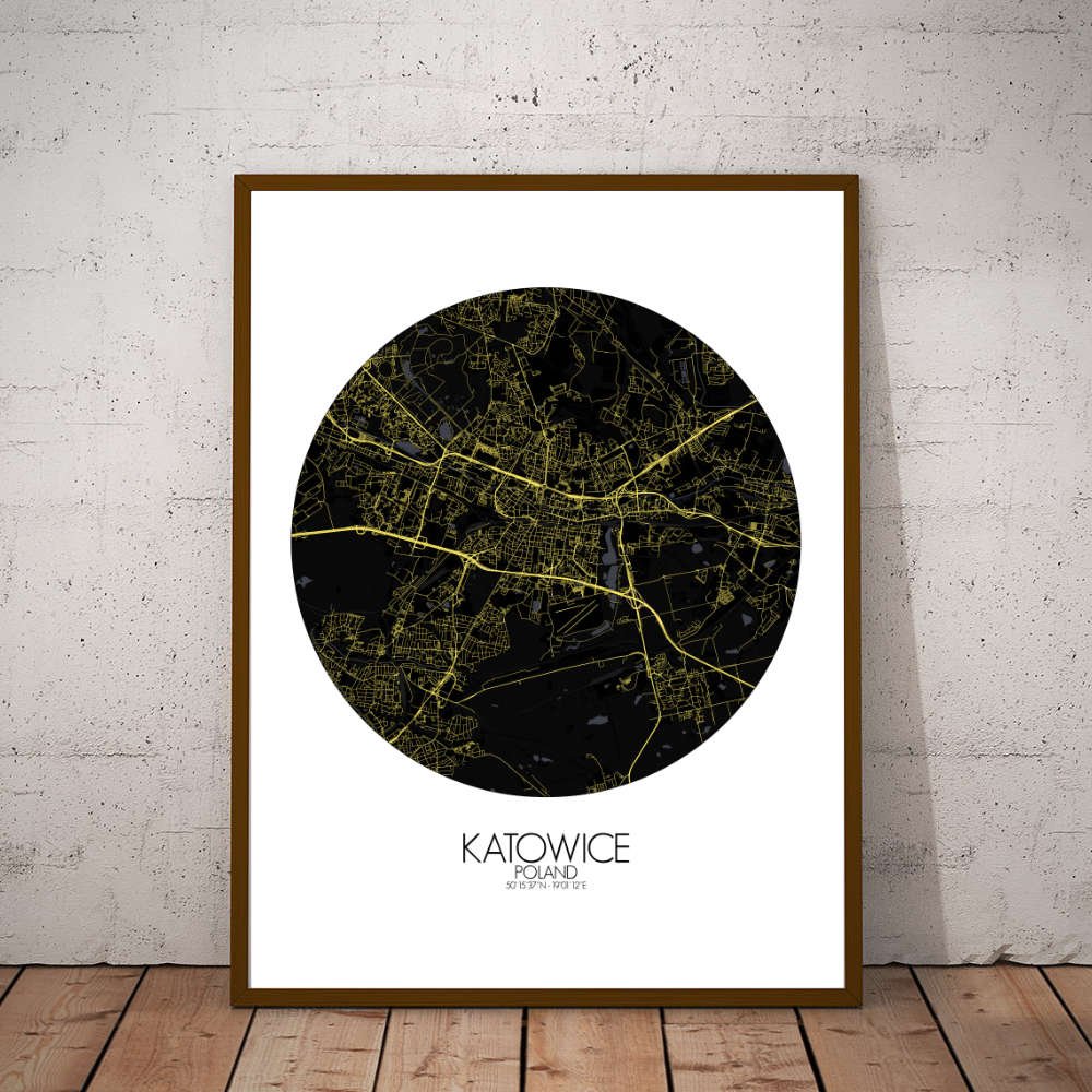 Poster City map de Katowice, Polonia: una epopeya de industria y resiliencia.