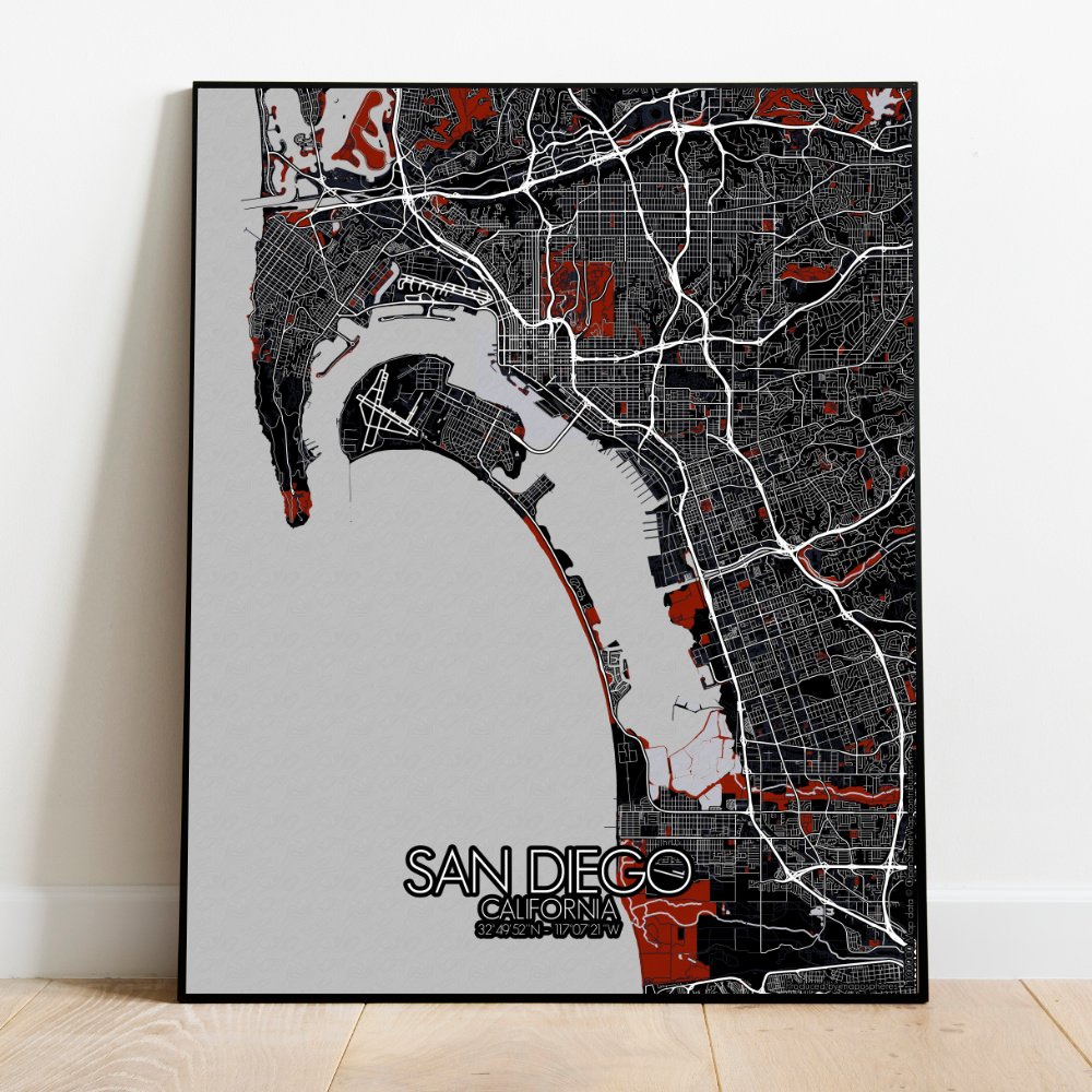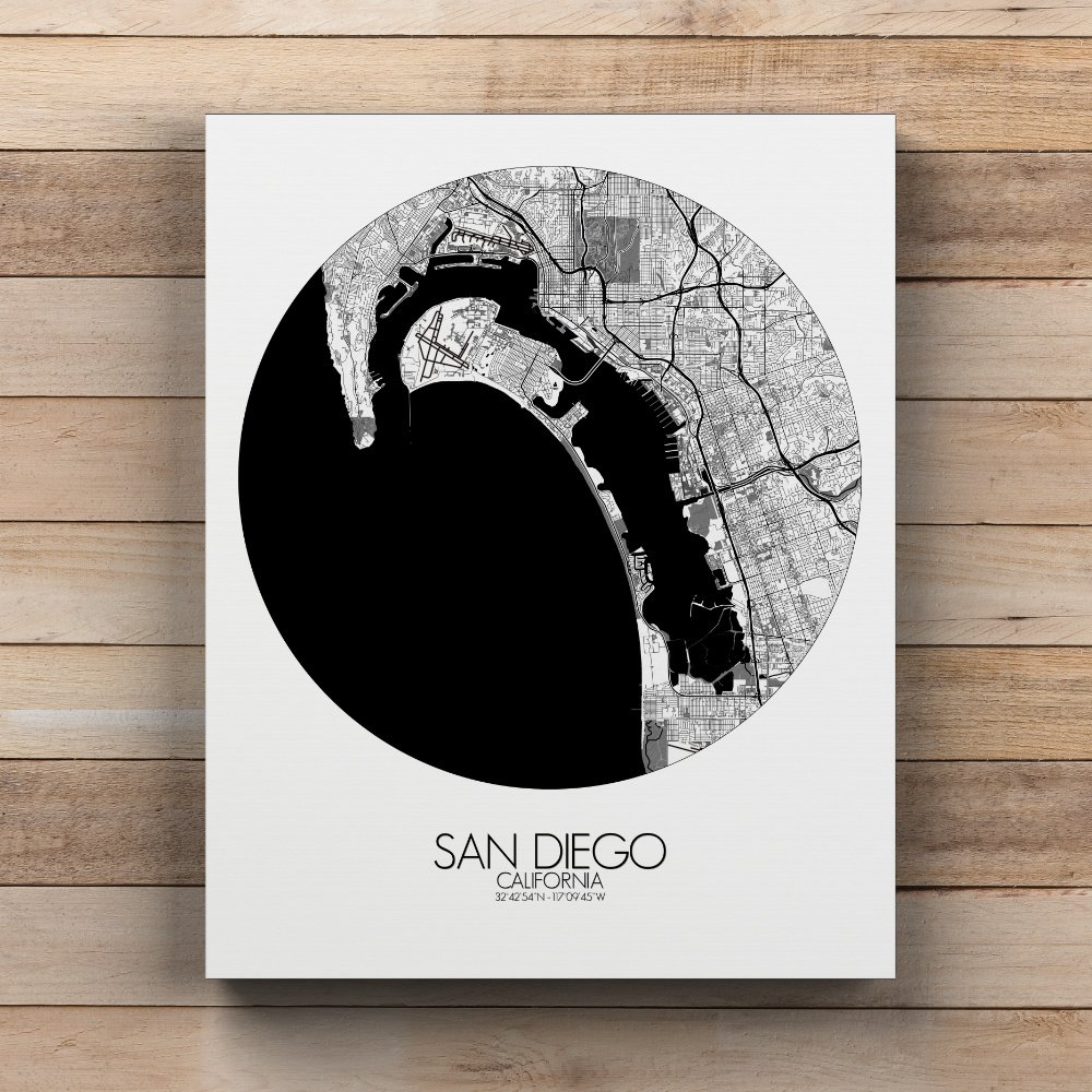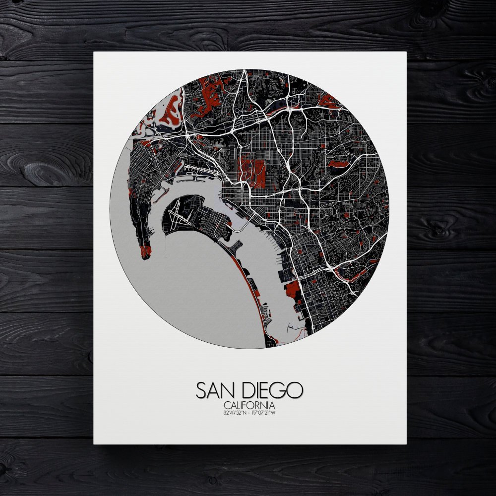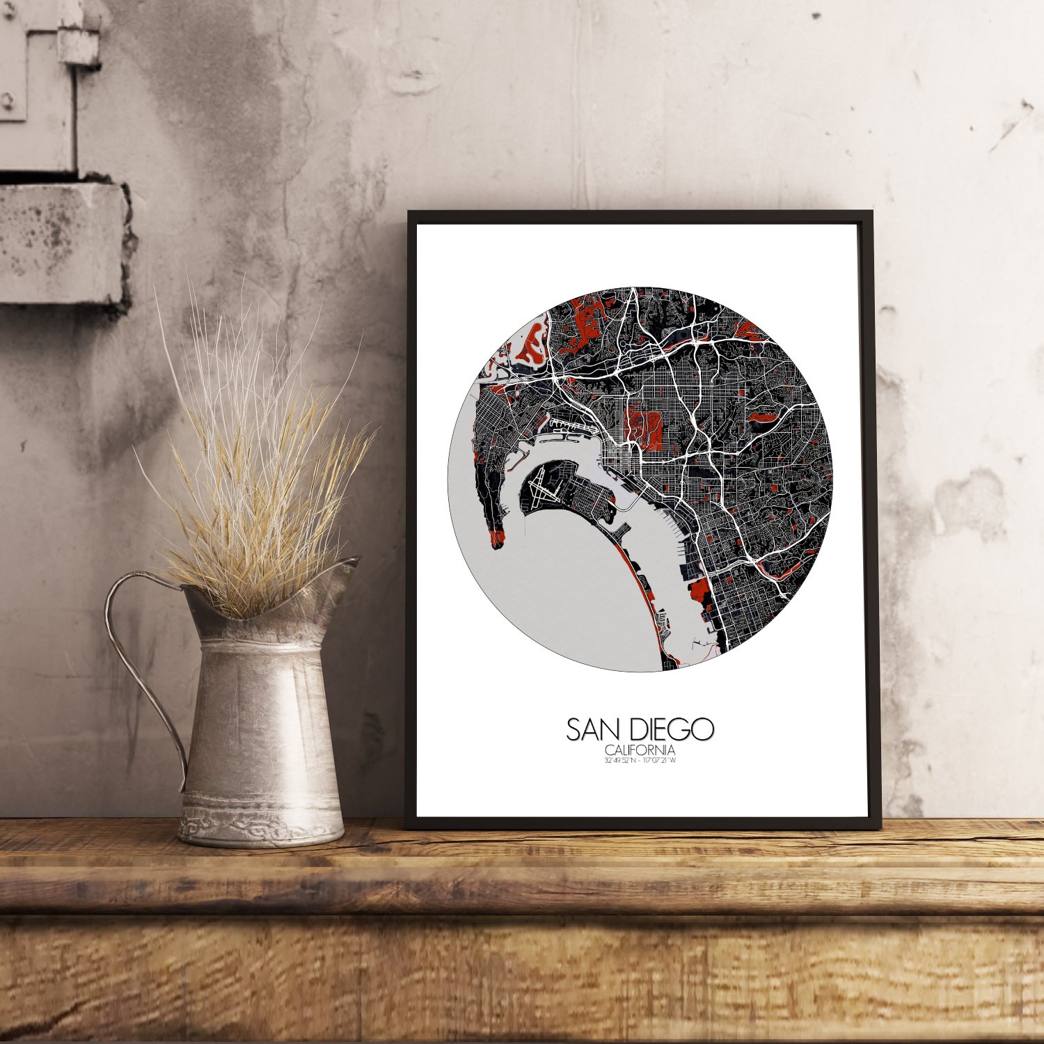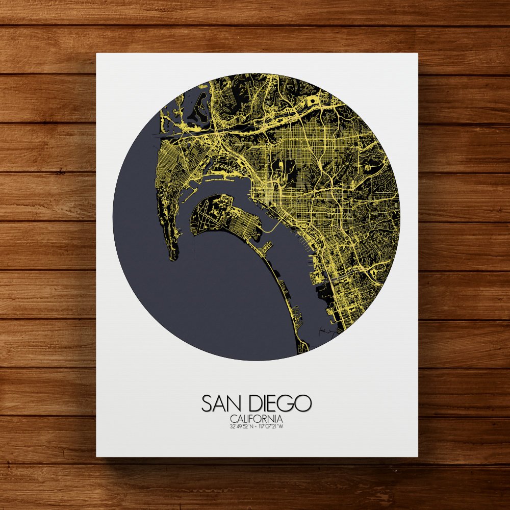 Consigue un City Map impreso (mapa mural) de San Diego | California. ¡Elige el tamaño, el color y el diseño de tu mapa a continuación!