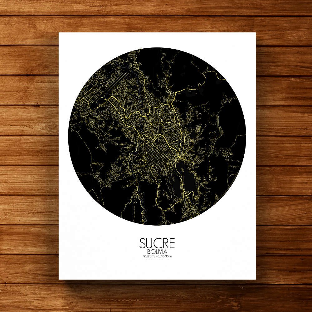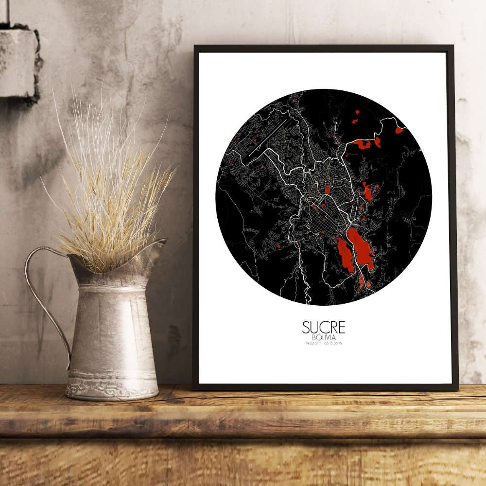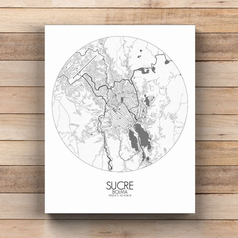 Poster City map de Sucre, Bolivia: Donde la tierra misma parece resonar con la lucha de Bolivia por la independencia.