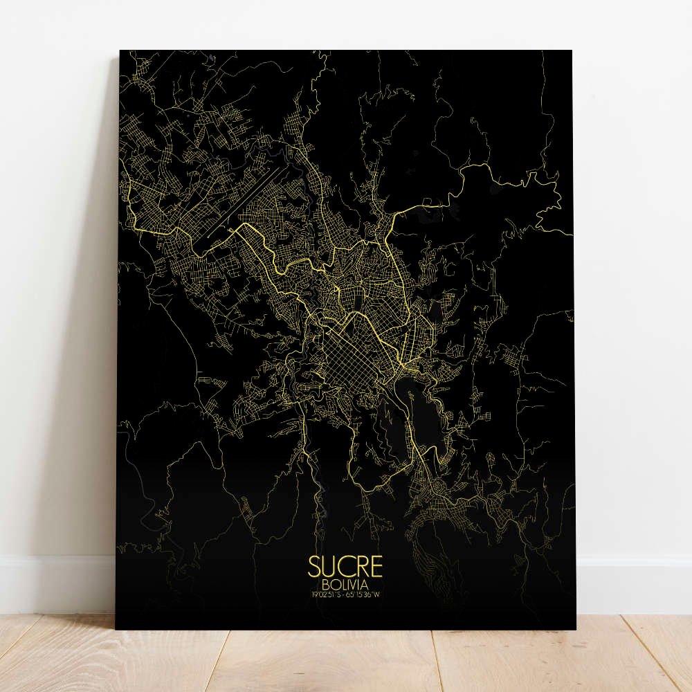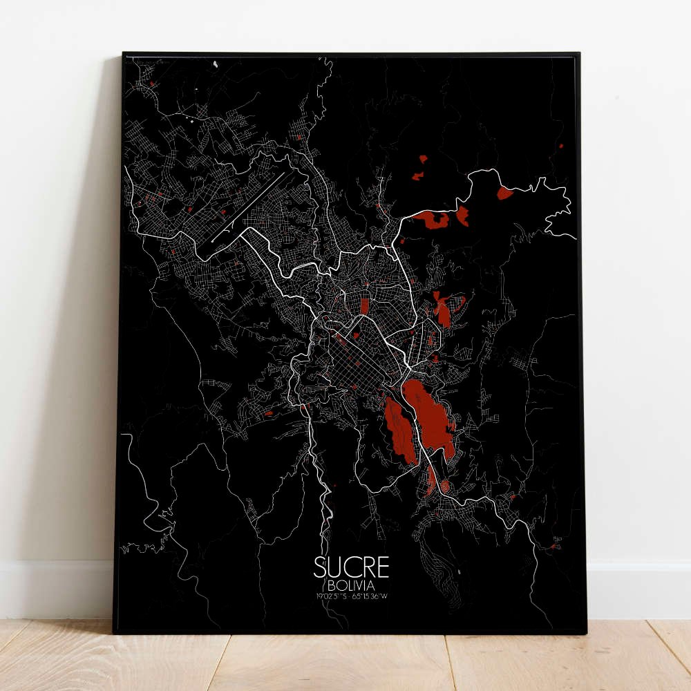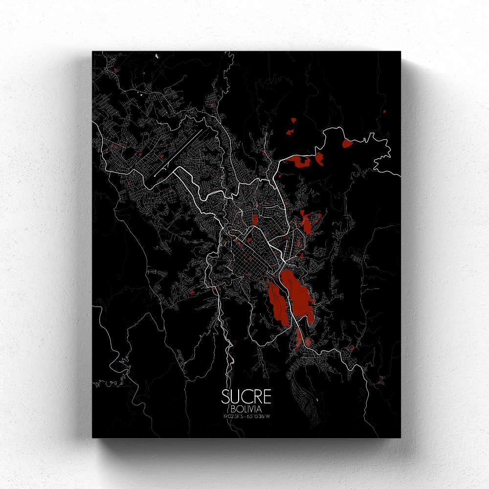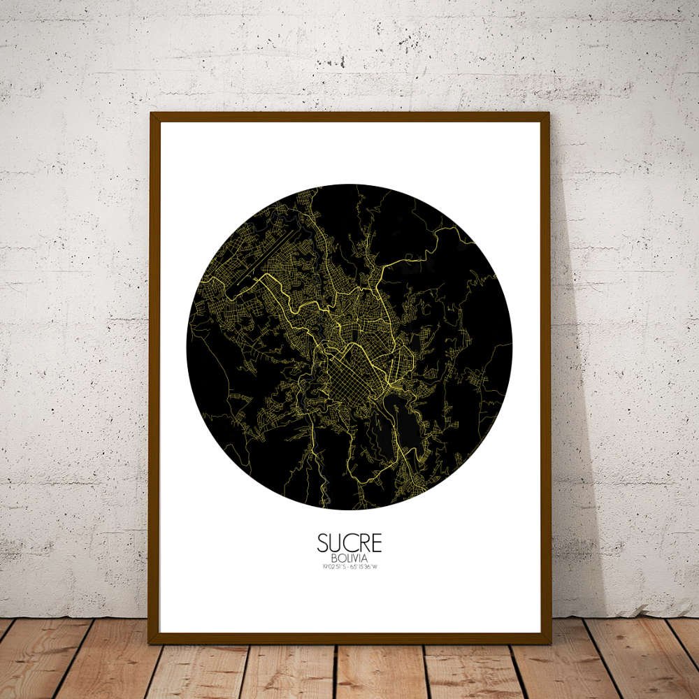 Poster City map de Sucre, Bolivia: Donde la tierra misma parece resonar con la lucha de Bolivia por la independencia.