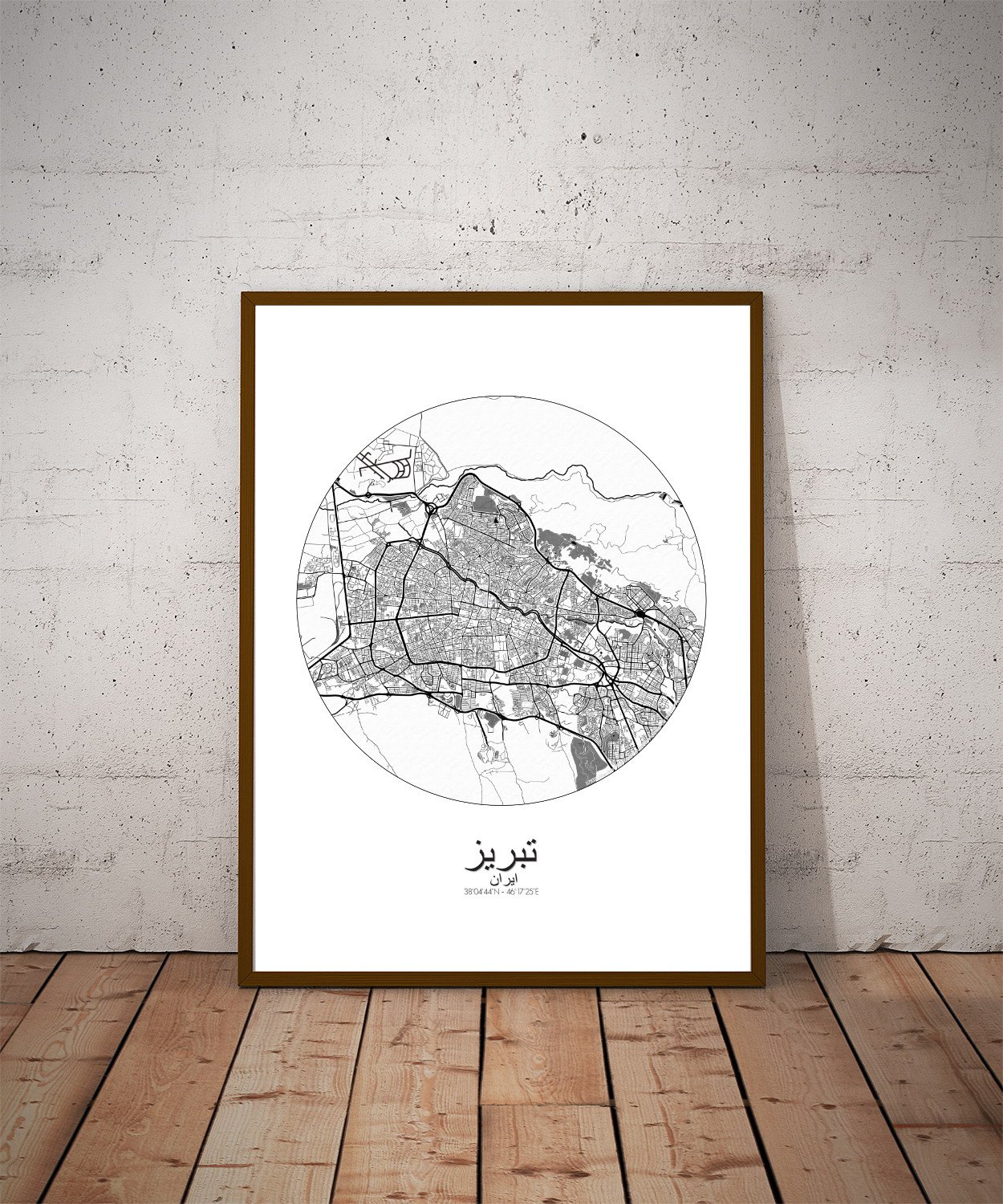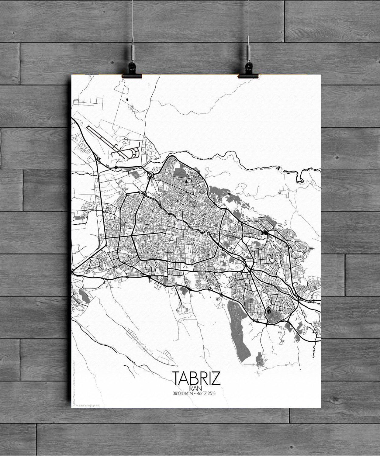 Poster City map de Tabriz, Irán: Desde los jardines que una vez escucharon la poesía de Shahriyar, hasta la silueta angular de la Mezquita Azul—antaño resplandeciente con azulejos turquesa antes de que los terremotos pusieran a prueba su paciencia—este mapa captura no solo calles y formas, sino la esencia de un lugar donde mito y montaña se encuentran.