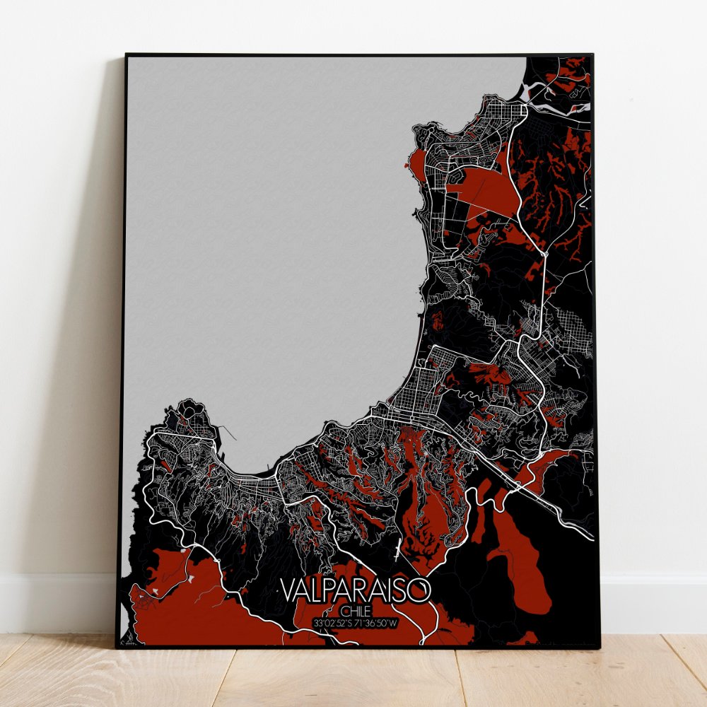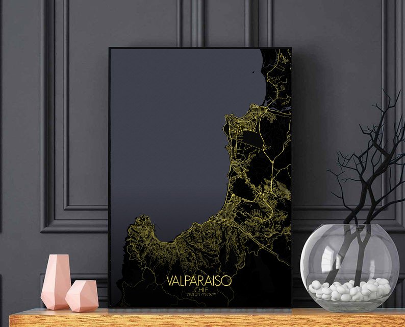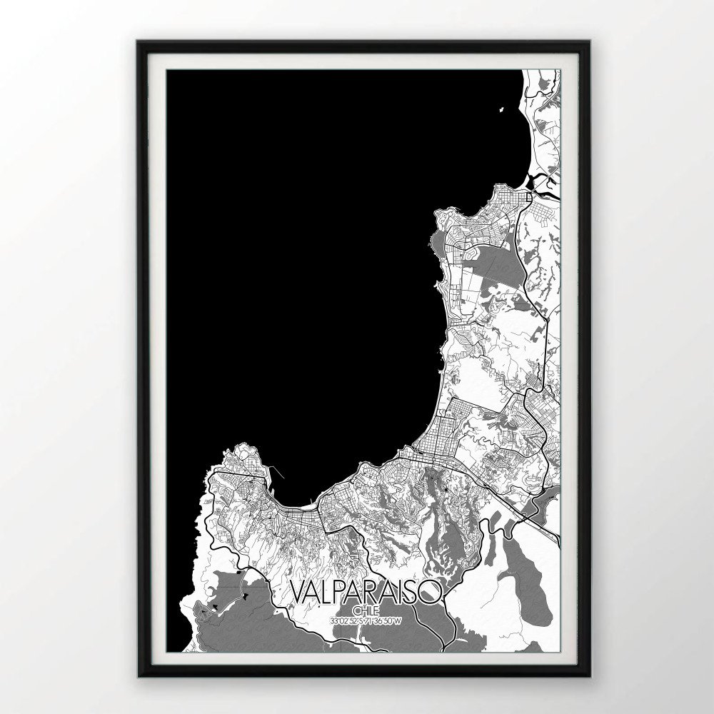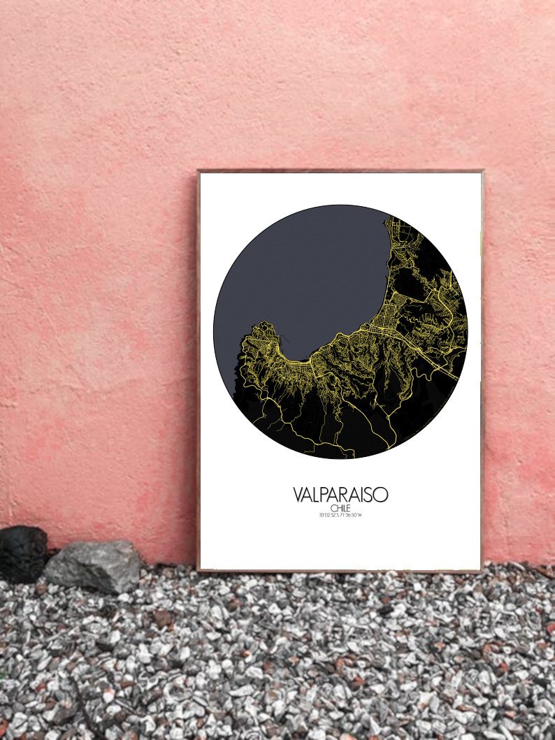 Consigue un City Map impreso (mapa mural) de Valparaiso | Chile. ¡Elige el tamaño, el color y el diseño de tu mapa a continuación!