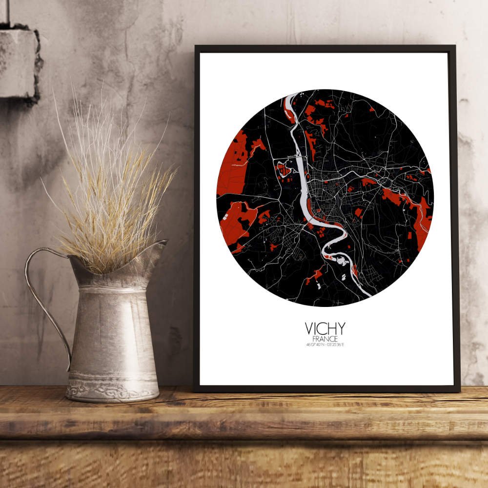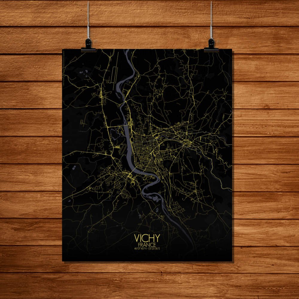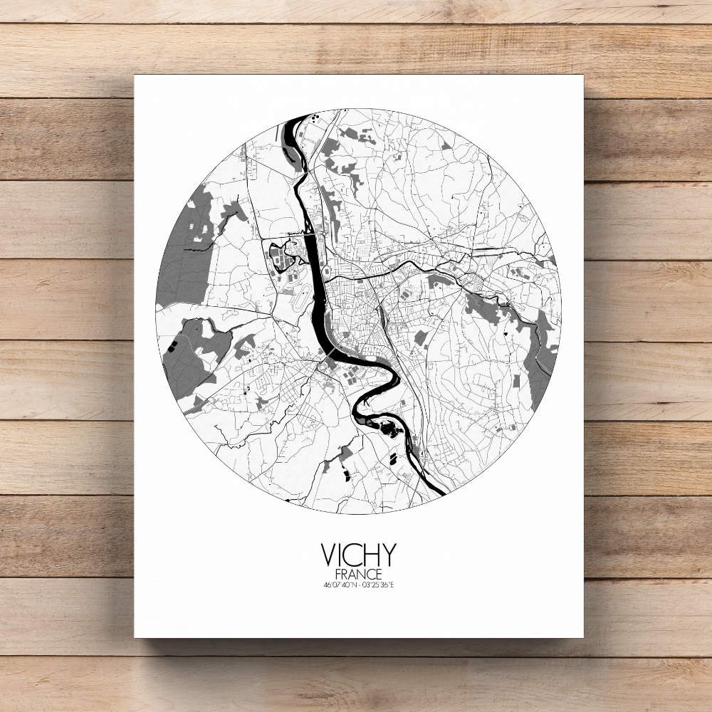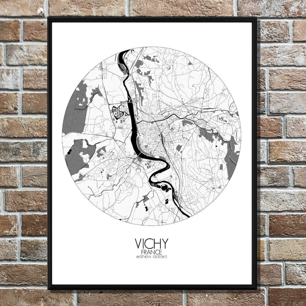 Poster City map de Vichy, Francia : ¡exhibe este mapa mural mientras exploras el Macizo Central!