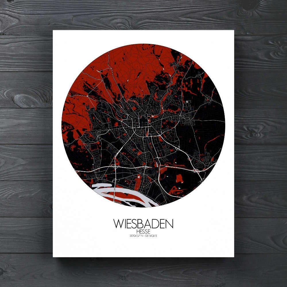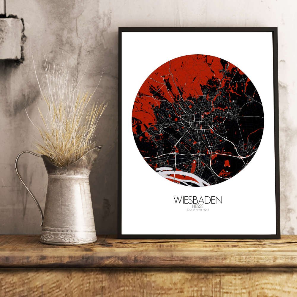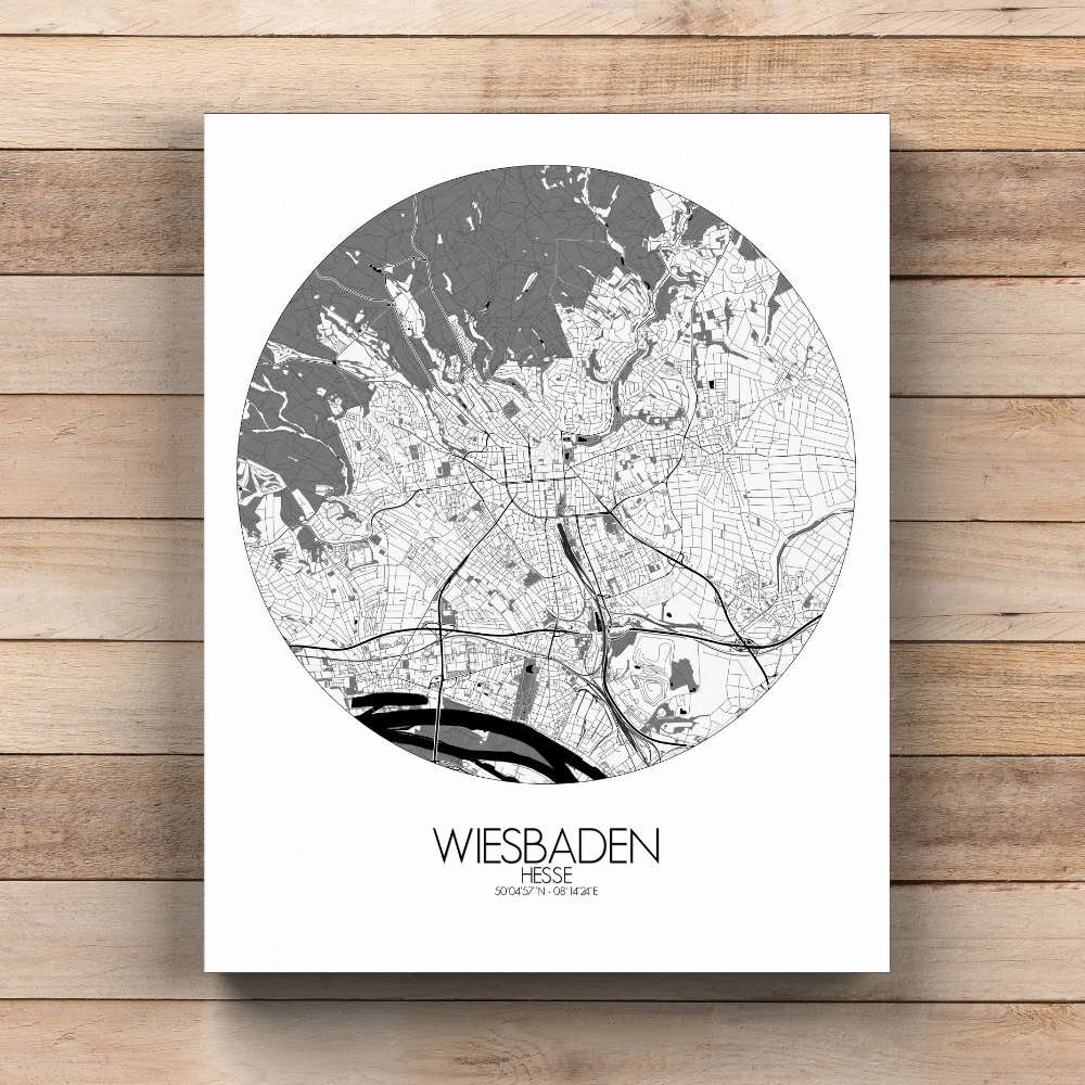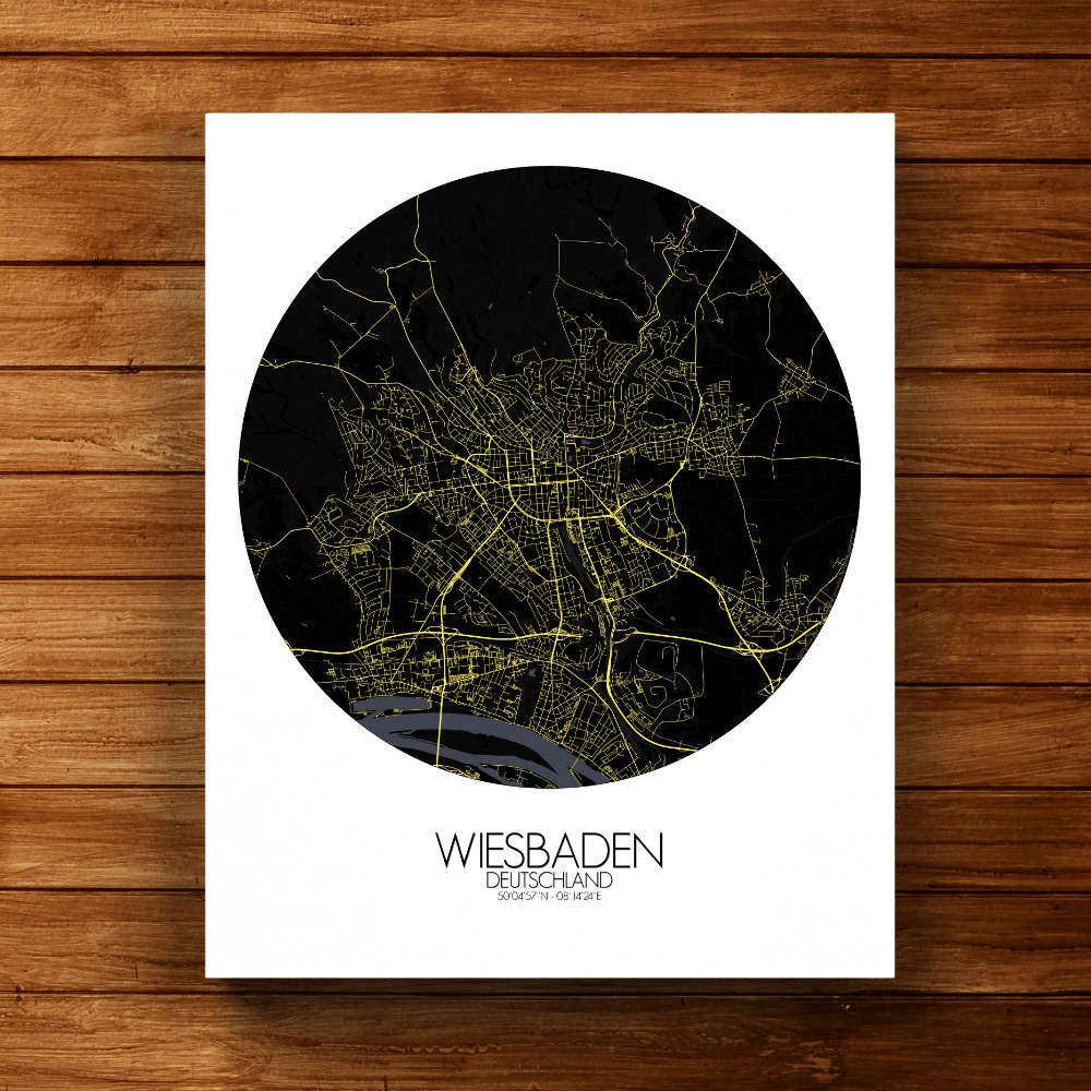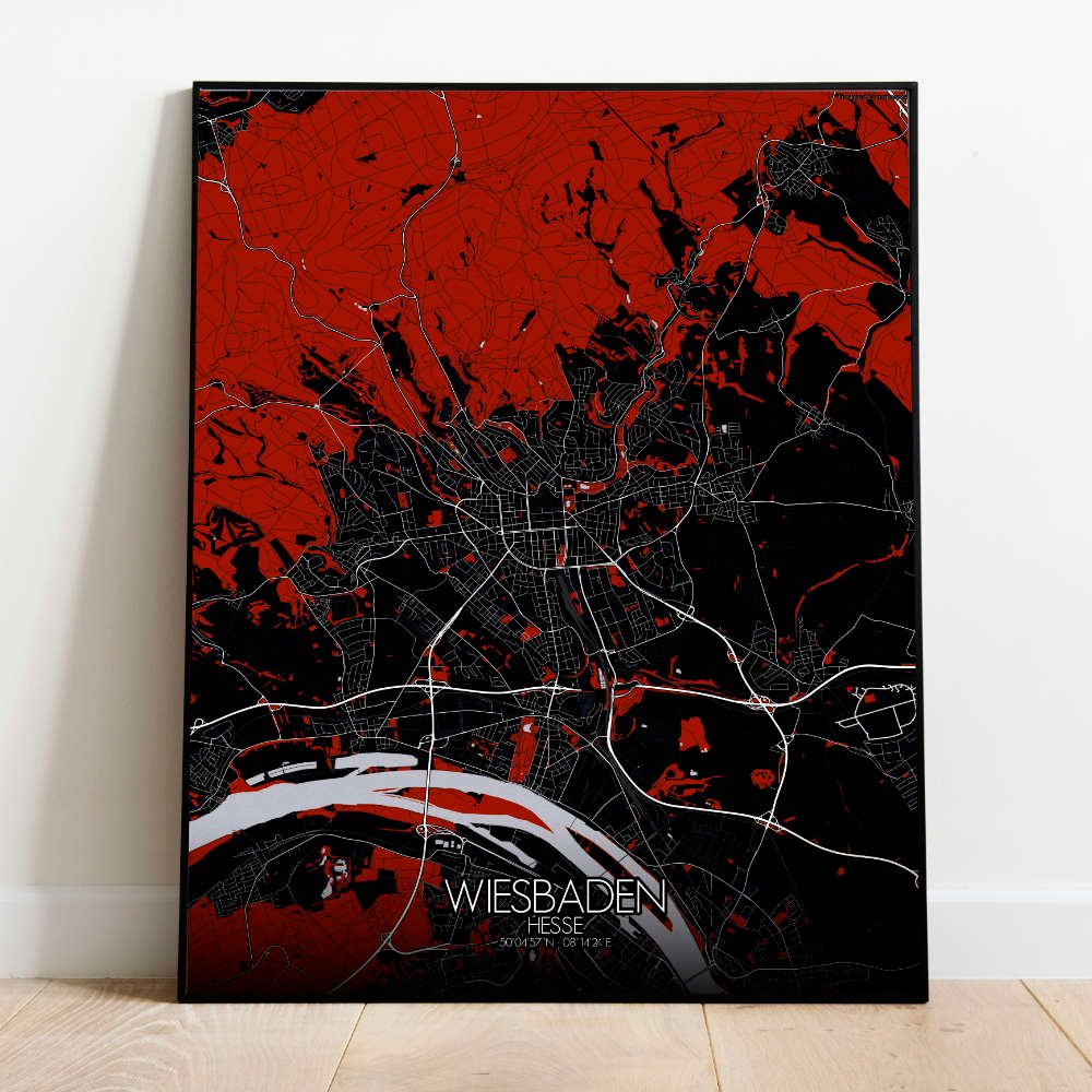 En conjunto, el mapa de Wiesbaden captura la esencia de esta encantadora ciudad, combinando herencia y modernidad y ofreciendo una representación visualmente cautivadora, perfecta para decorar cualquier pared.