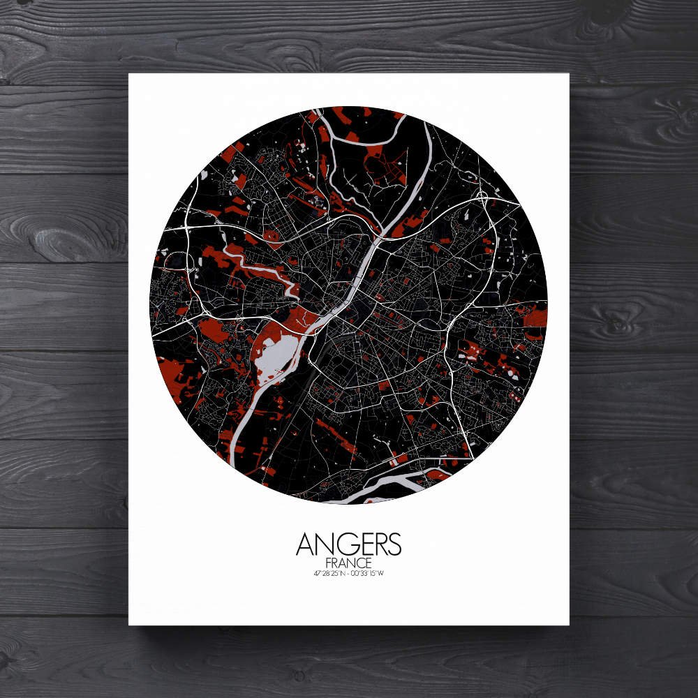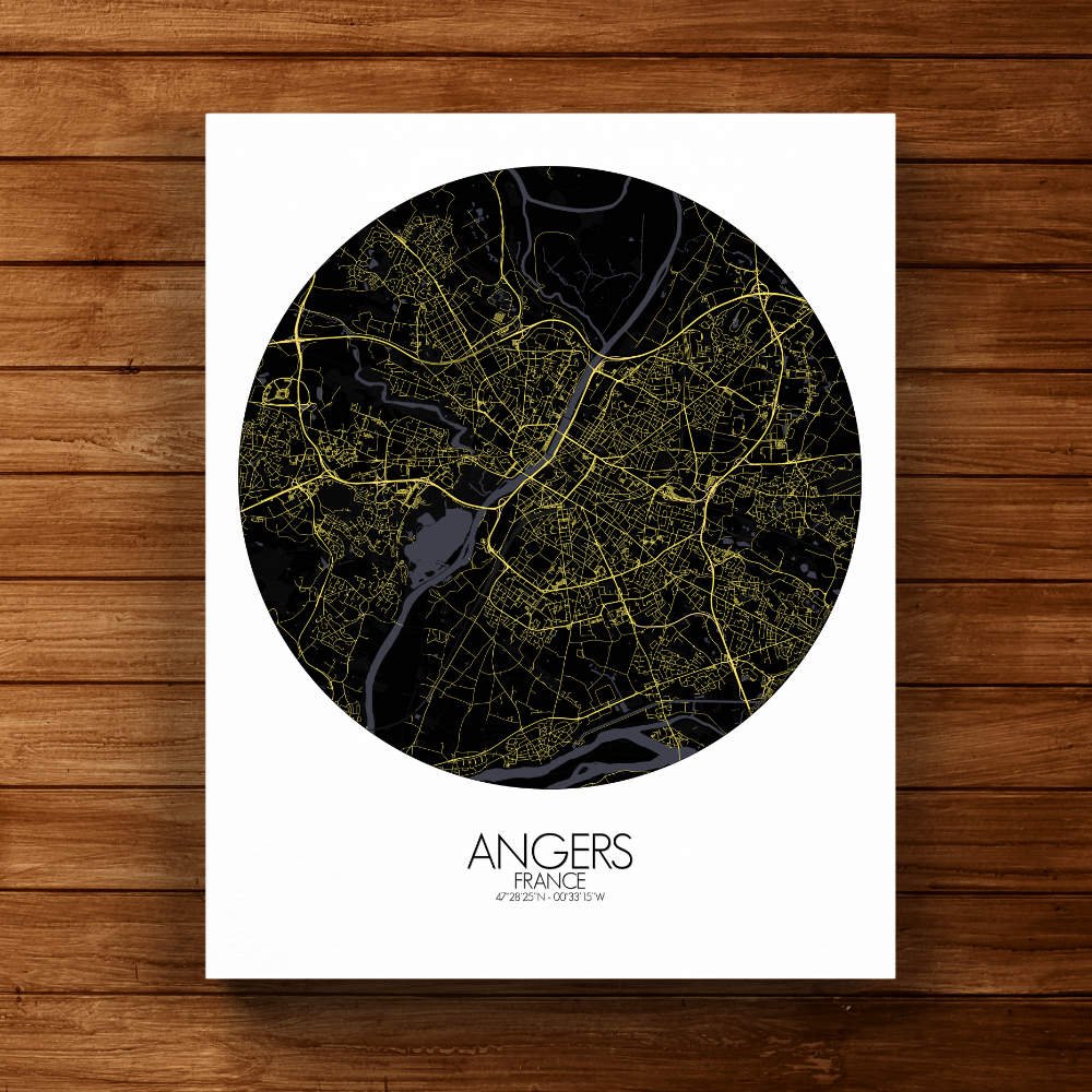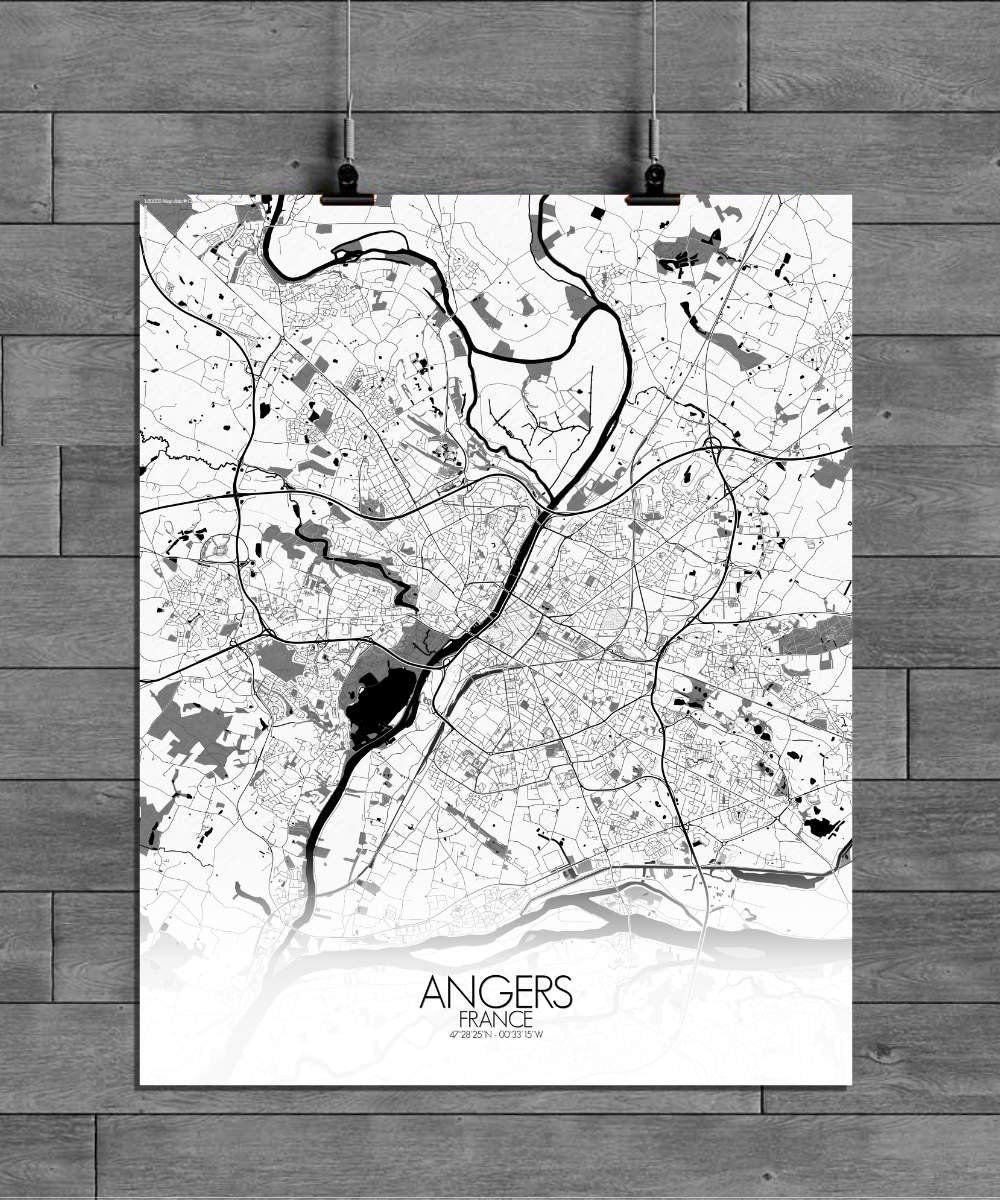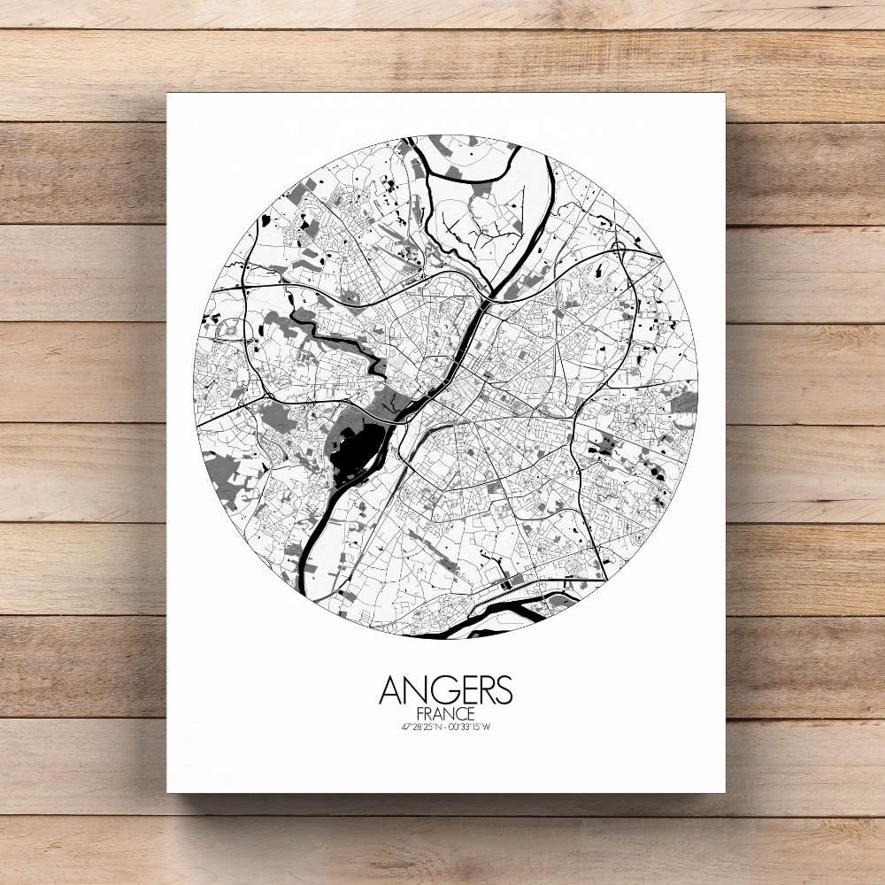 Poster City map d’Angers, France : avec son mélange d’espaces verts, de sites historiques et le doux flot de la Loire, la carte d’Angers offre une représentation frappante qui est à la fois intemporelle et pleine de vie—une pièce parfaite pour n’importe quel mur.