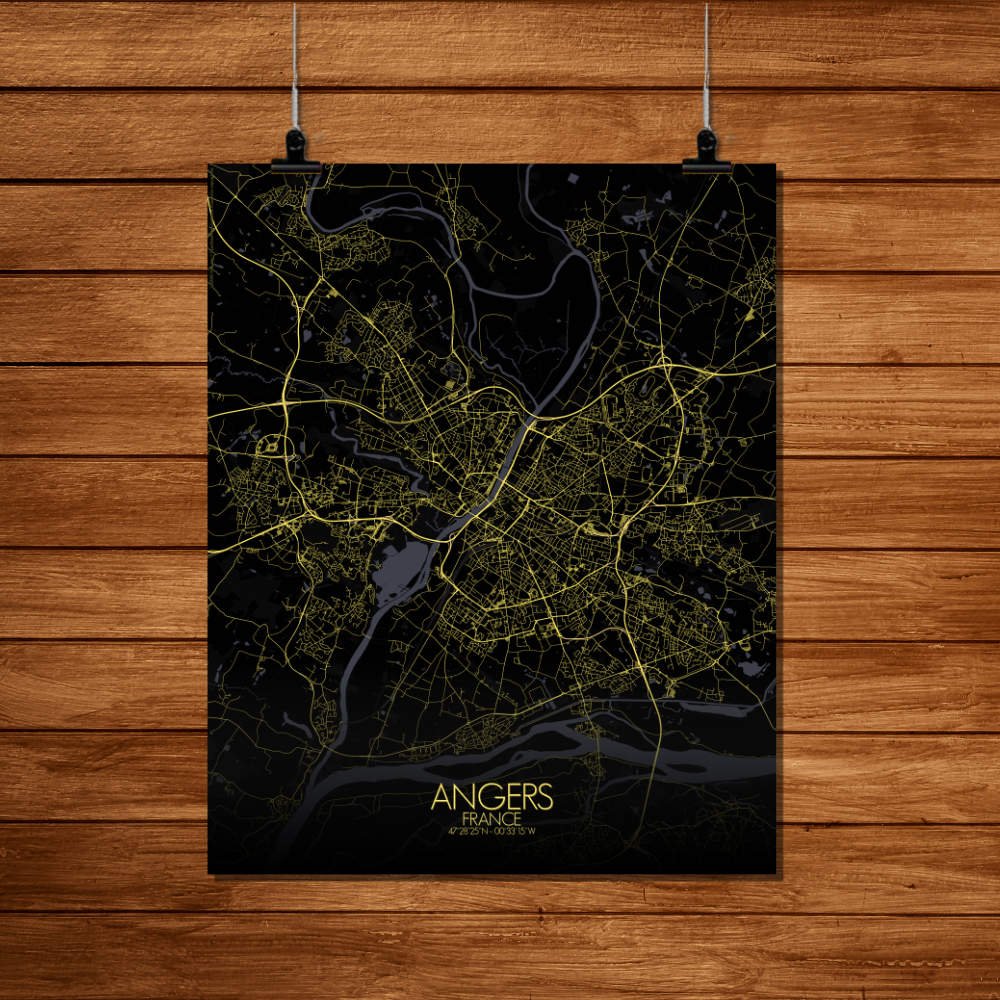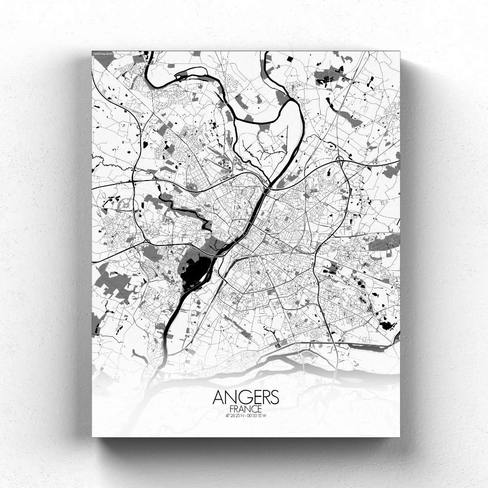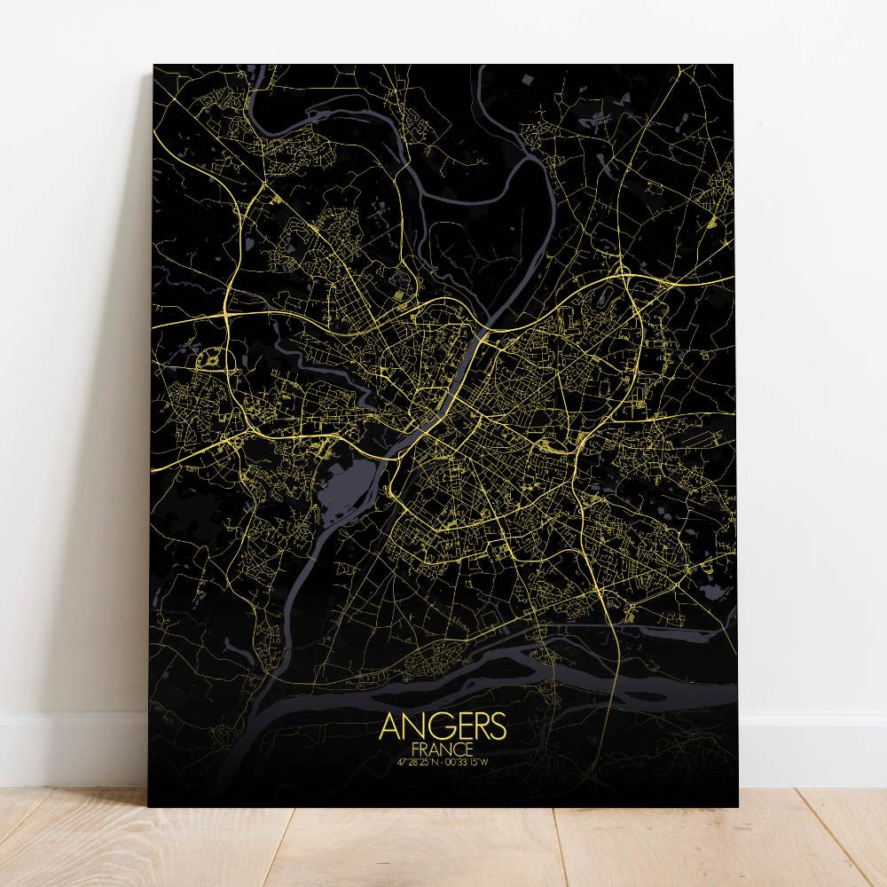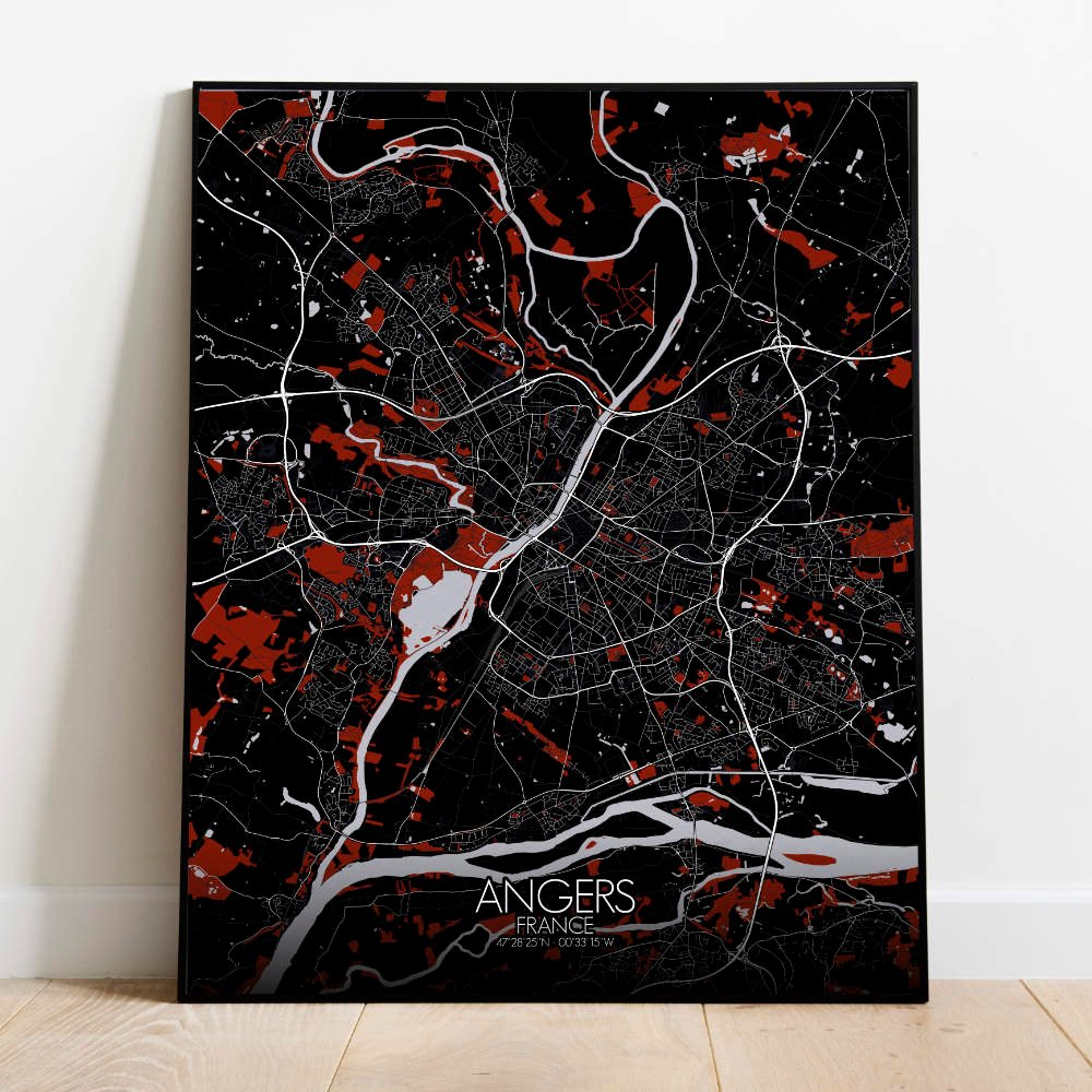 Poster City map d’Angers, France : avec son mélange d’espaces verts, de sites historiques et le doux flot de la Loire, la carte d’Angers offre une représentation frappante qui est à la fois intemporelle et pleine de vie—une pièce parfaite pour n’importe quel mur.