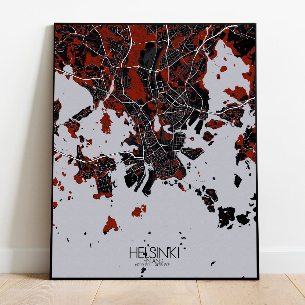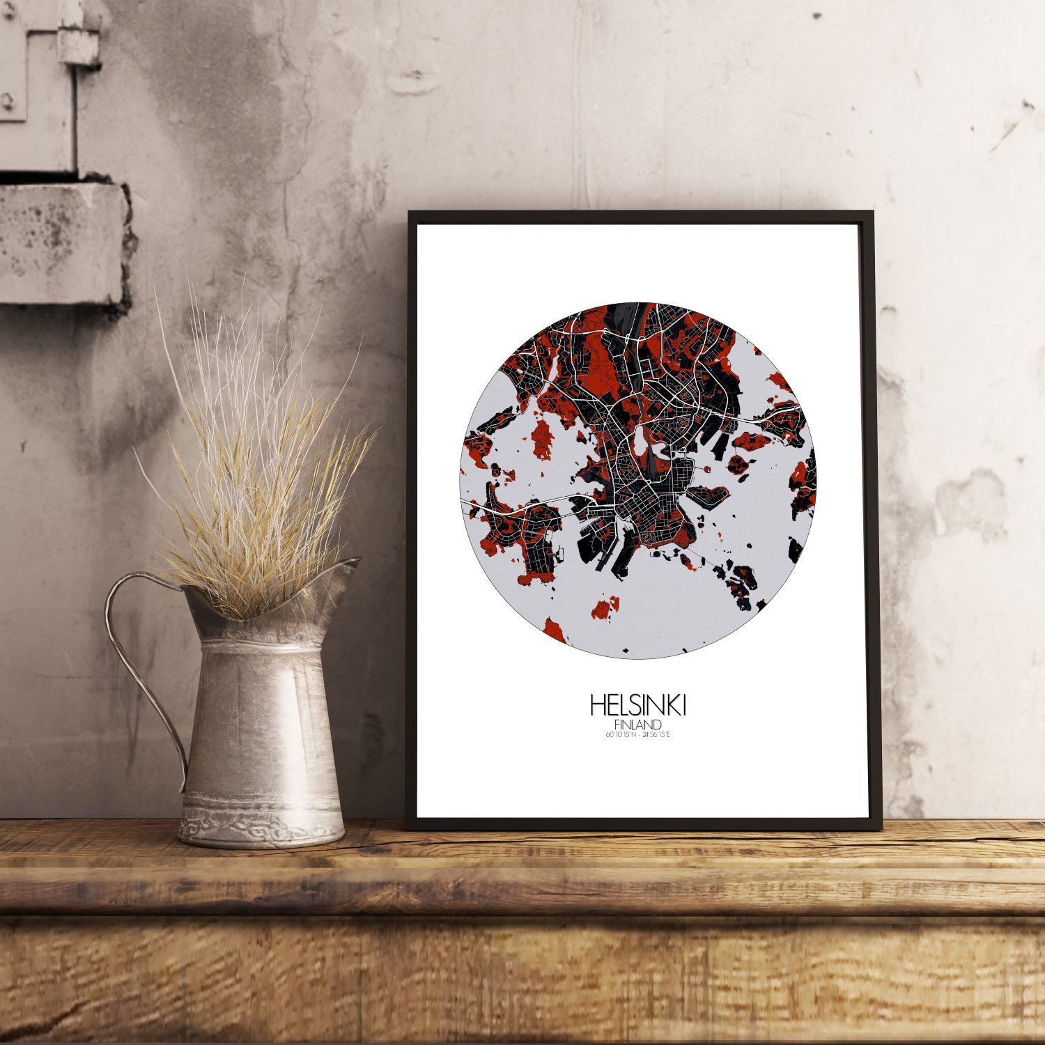 Poster City map d’Helsinki, Finlande : Voici Helsinki, la perle nordique posée délicatement le long des rives de la mer Baltique — une ville où la terre rencontre l’eau dans une danse calme et assurée.