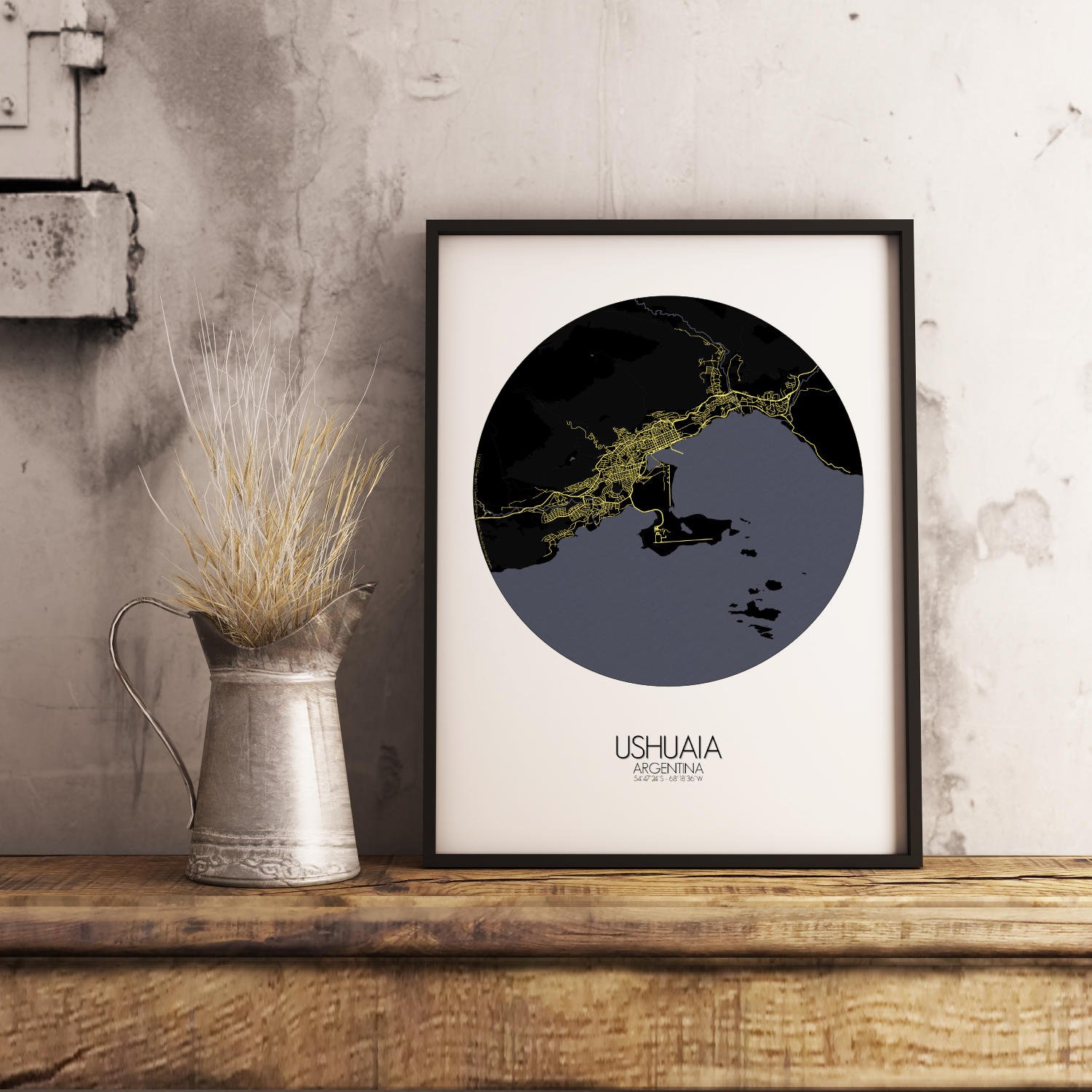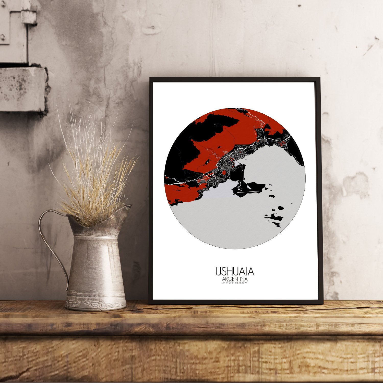 Poster City map d’Ushuaia, Argentine : au tout bord du monde où les montagnes se penchent vers la mer et où le vent semble toujours connaître votre nom…