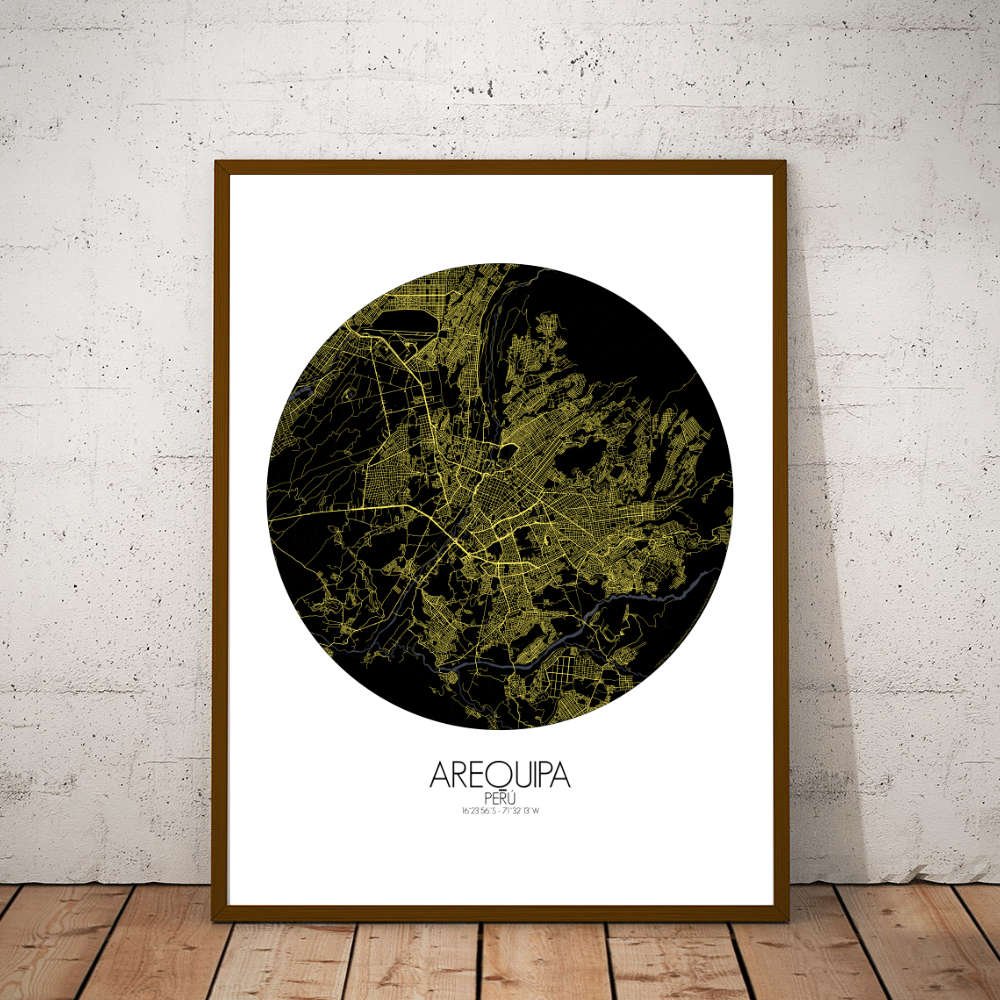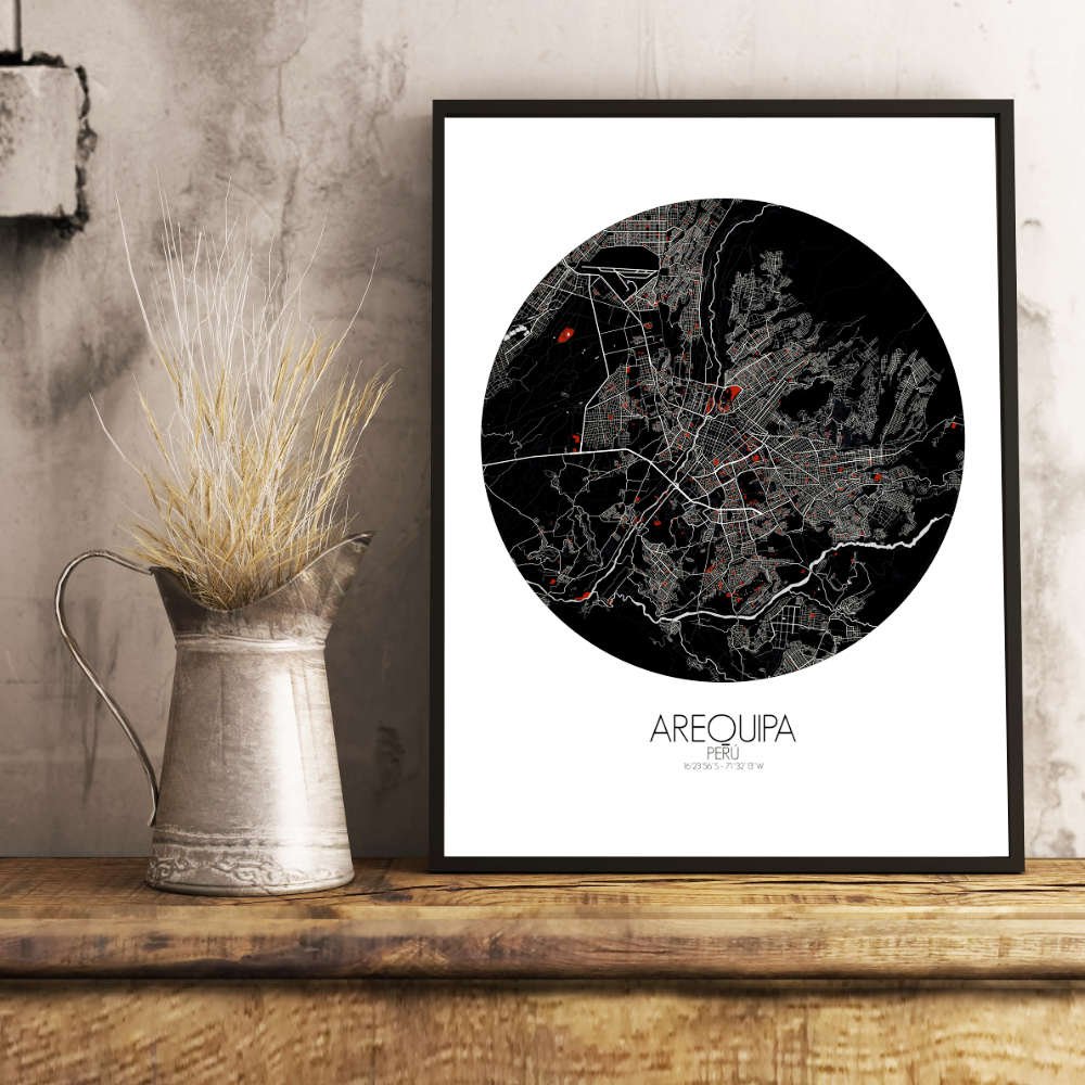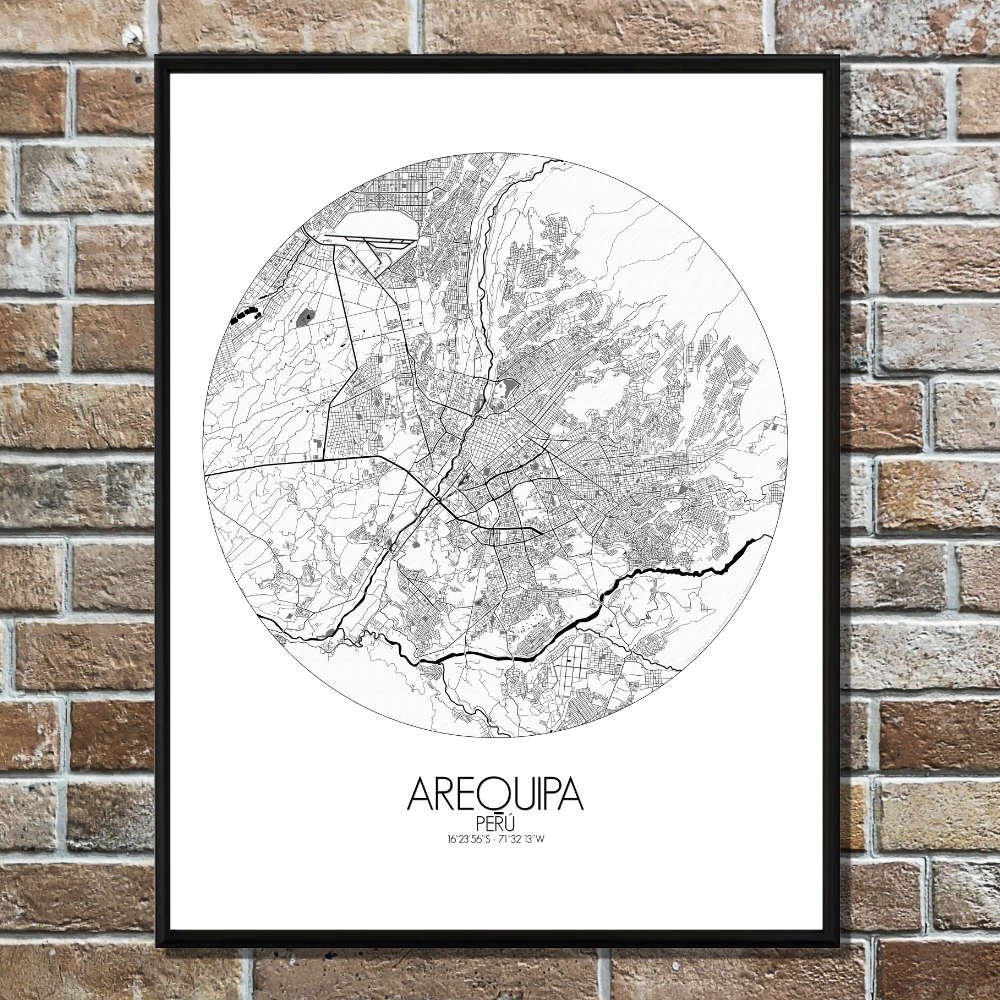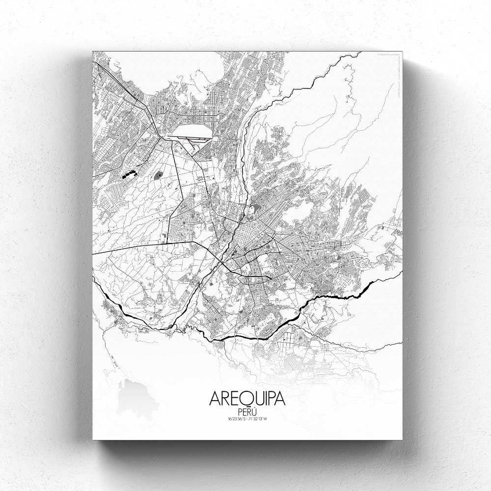 Poster City Map d’Arequipa, Pérou : cette carte offre non seulement une représentation visuelle, mais aussi un aperçu de l’âme de la « Ville Blanche ».