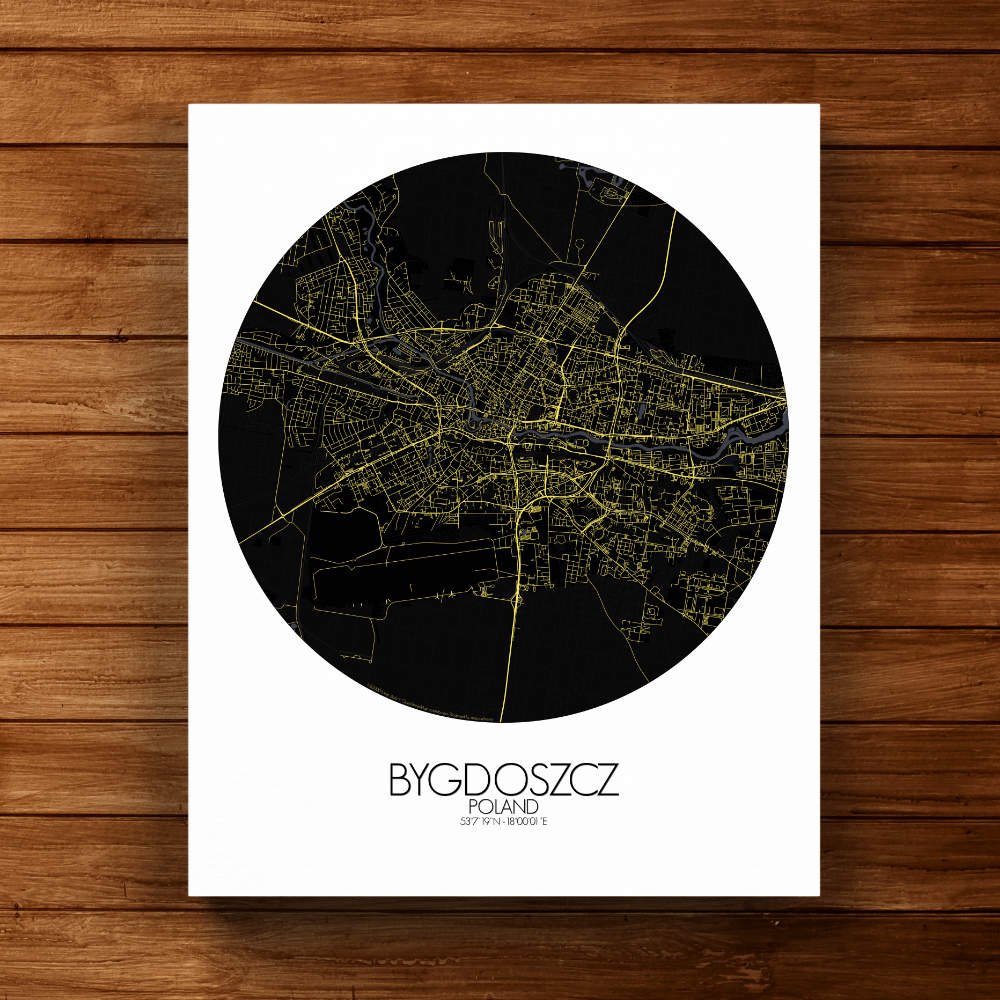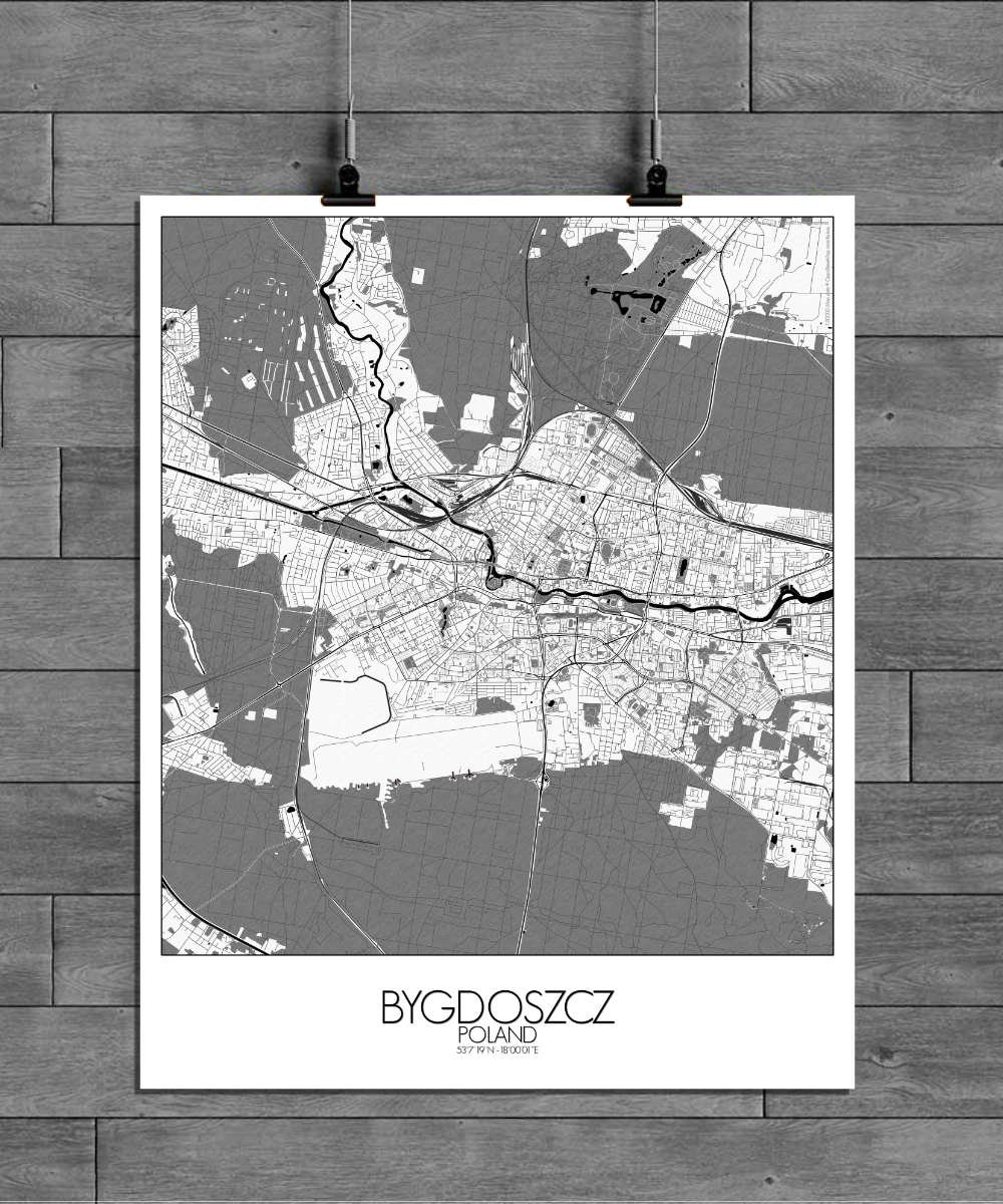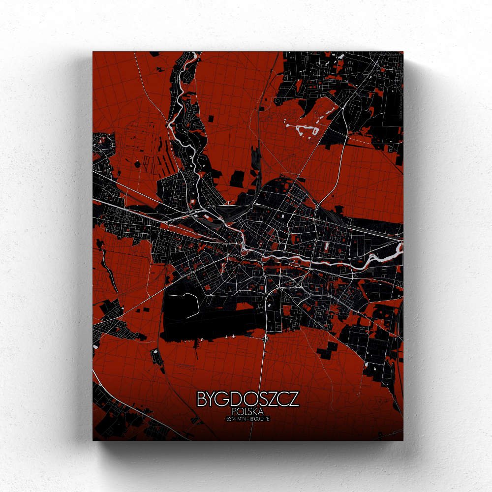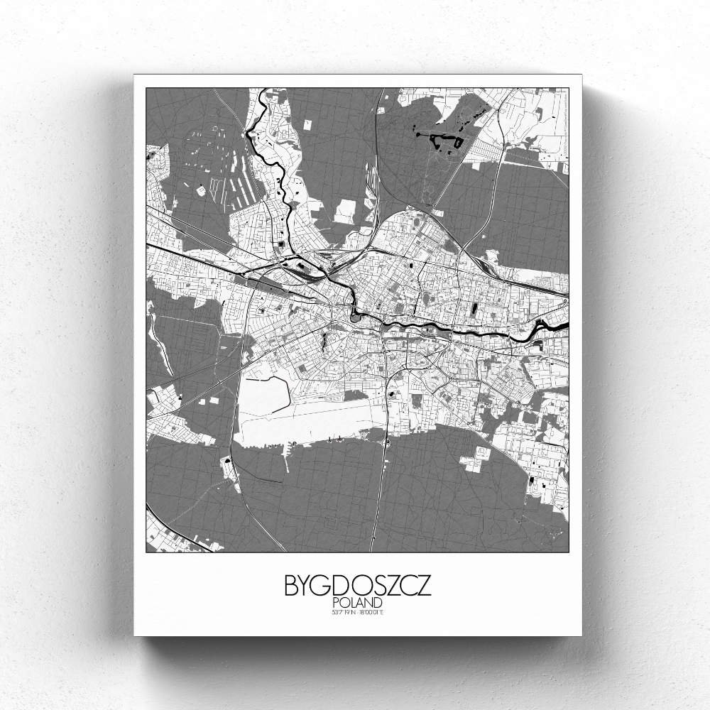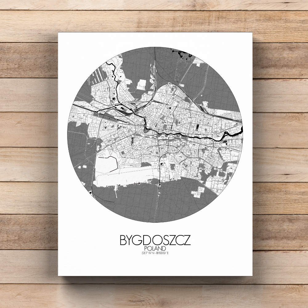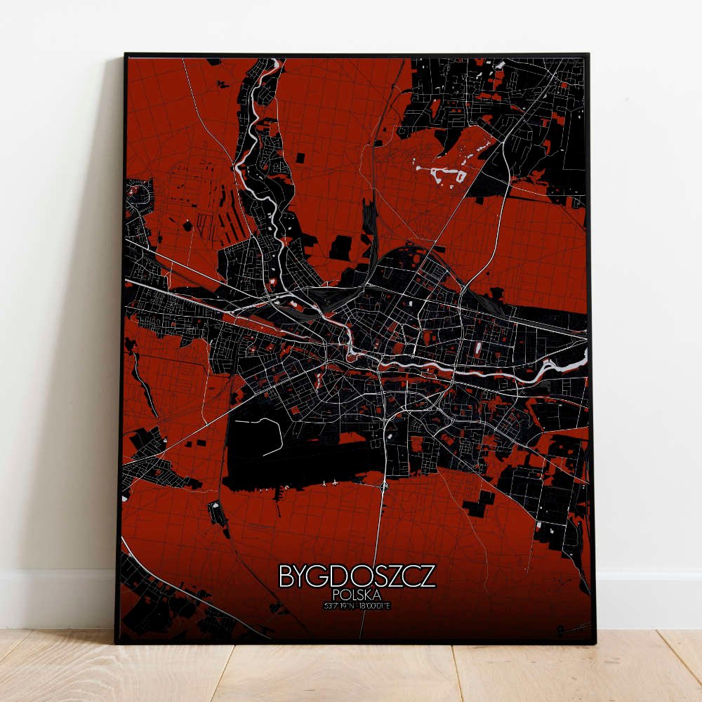 Nichée sur les rives pittoresques de la rivière Brda, Bydgoszcz se déploie avec grâce sur notre carte, révélant ses traits géographiques si singuliers, où collines et cours d’eau sinueux sont représentés avec une précision telle que l’on croirait voir couler l’essence même de la rivière à travers les lignes et les contours. La rivière Brda abritait jadis une ondine espiègle, qui guidait avec malice les voyageurs le long de son cours sinueux — peut-être en apercevrez-vous la silhouette fugace au fil de votre exploration de la carte ! La beauté généreuse de l’Île des Moulins, avec ses jardins tranquilles et ses bâtiments historiques, est saisie avec une précision exquise. Imaginez-vous déambulant dans ces paysages idylliques, le parfum des fleurs embaumant l’air et le chant des oiseaux emplissant vos oreilles. Au cœur de la ville se dresse la majestueuse Vieille Ville, témoignage éloquent du riche patrimoine architectural de Bydgoszcz. La carte met également en lumière l’emblématique Opéra de Bydgoszcz, joyau culturel qui enchante son public depuis des siècles avec ses représentations éblouissantes. Qu’il s’agisse d’un opéra envoûtant ou d’un ballet virtuose, l’Opéra apporte une touche d’élégance et de raffinement à la ligne d’horizon de la ville.