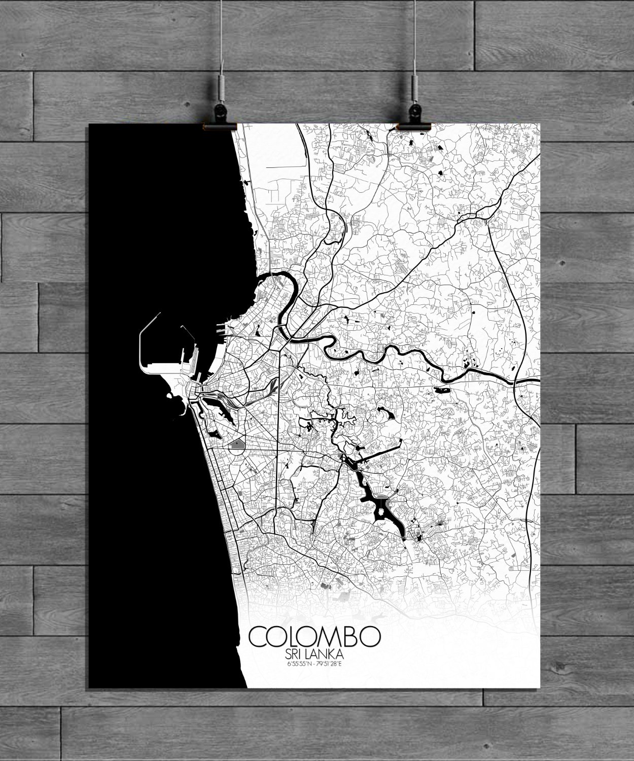Obtenez une City Map – Carte murale – imprimée de la ville de Colombo, Sri Lanka.