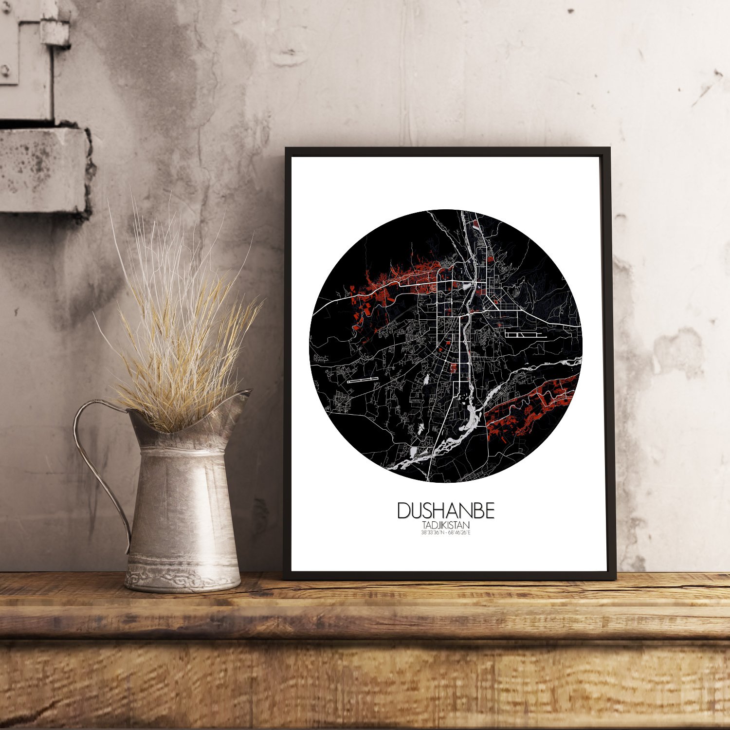 Poster City map de Doushanbé, Tadjikistan : elle montre Douchanbé non seulement telle qu’elle est, mais telle qu’elle a été — à moitié jardin, à moitié forteresse, à moitié conte murmuré.