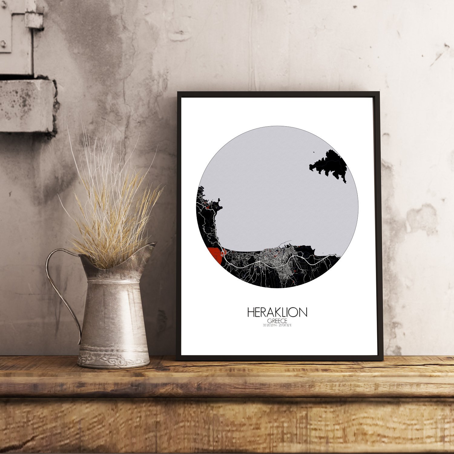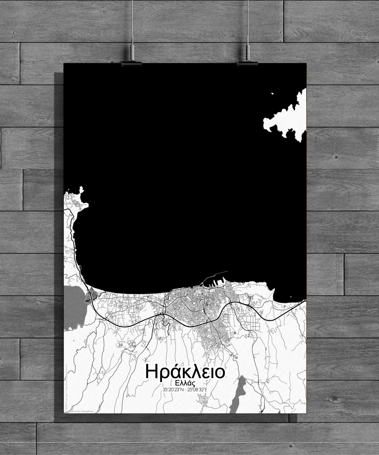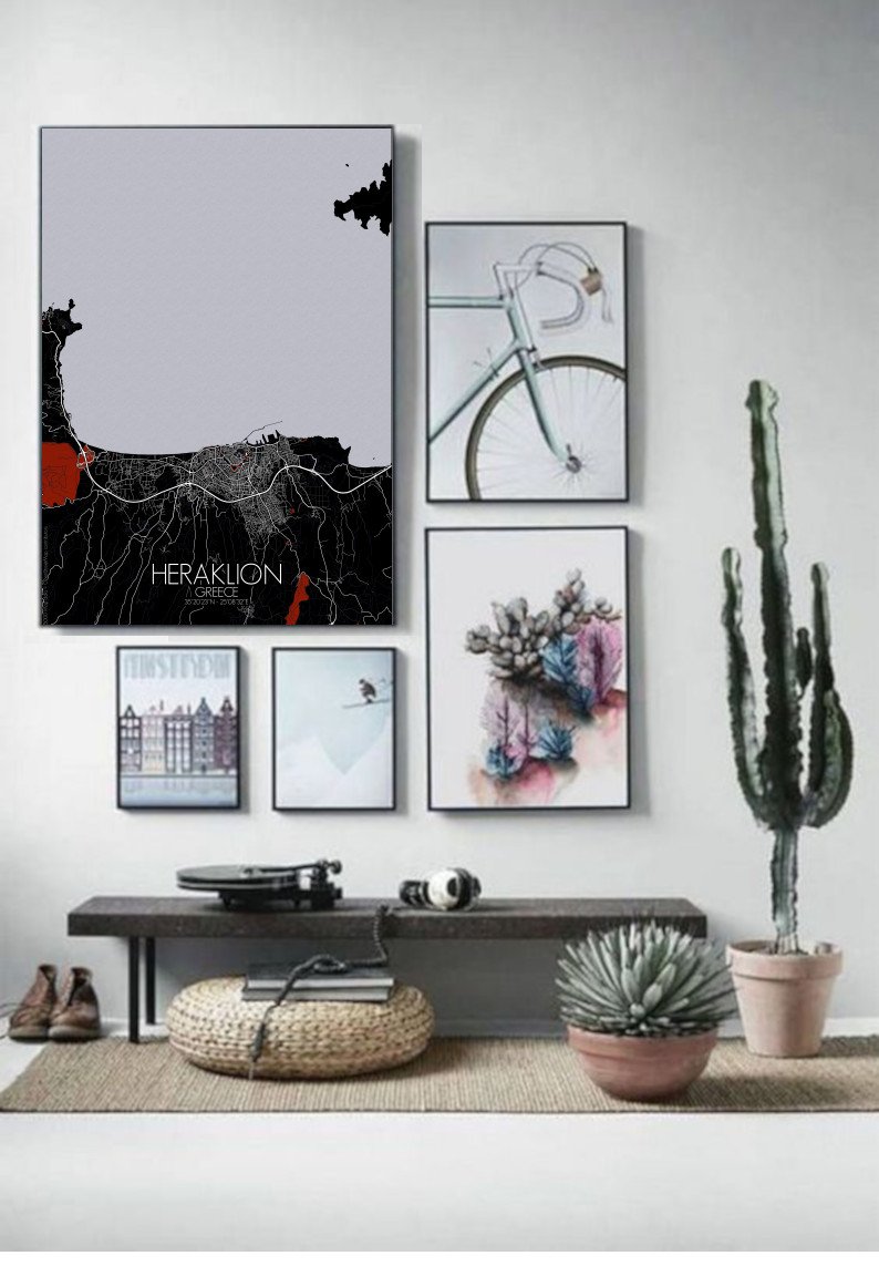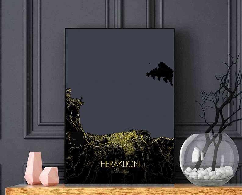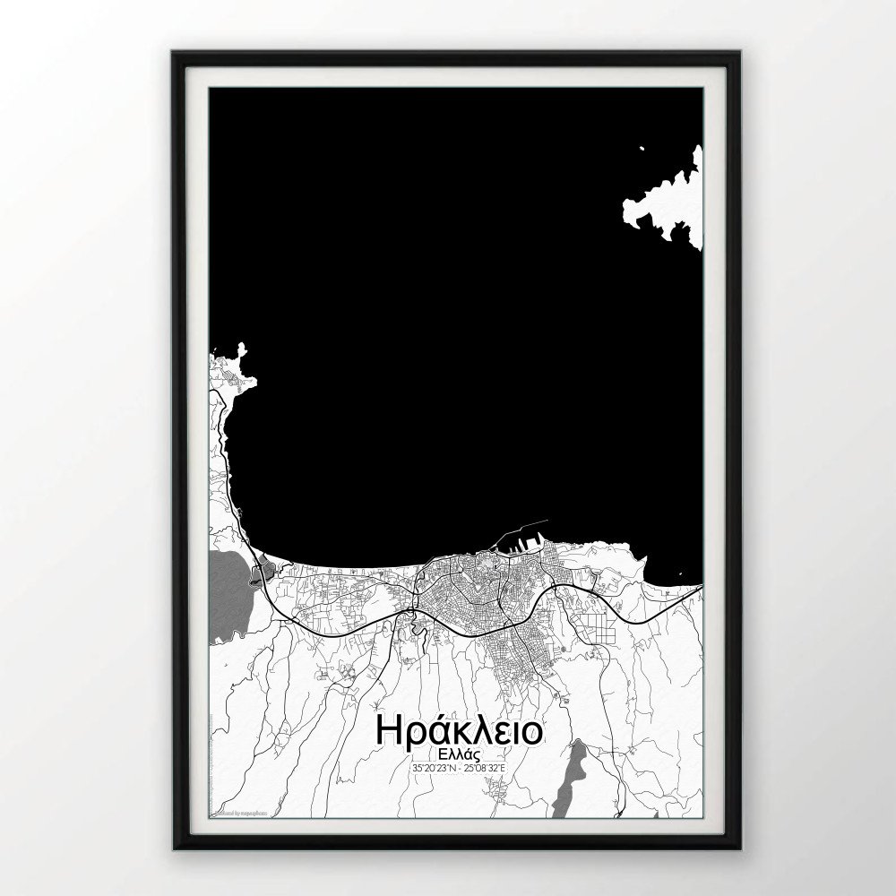 Obtenez une City Map – Carte murale – imprimée de la ville de Heraklion, Grèce.