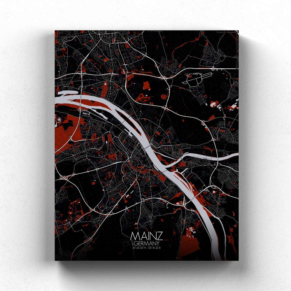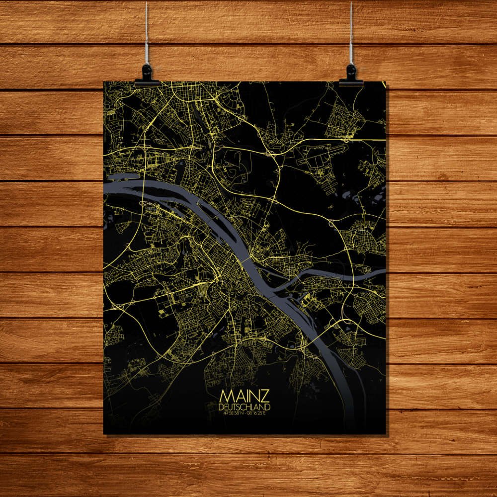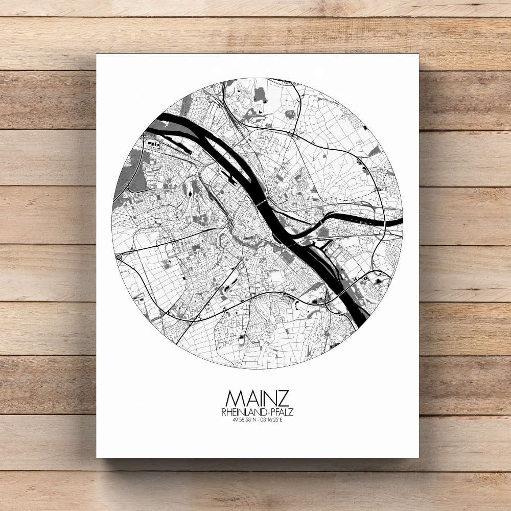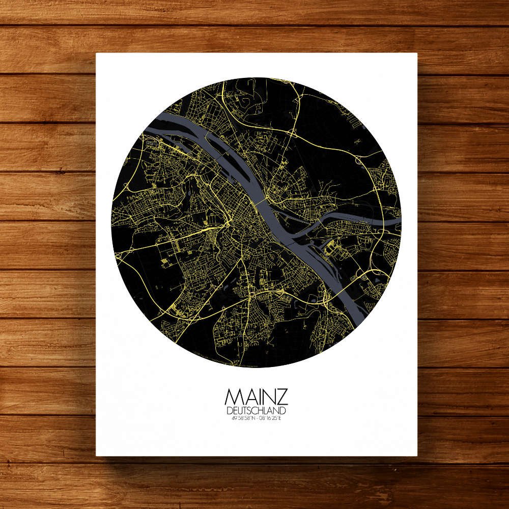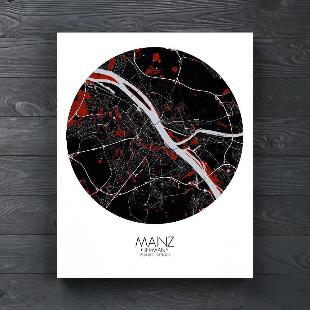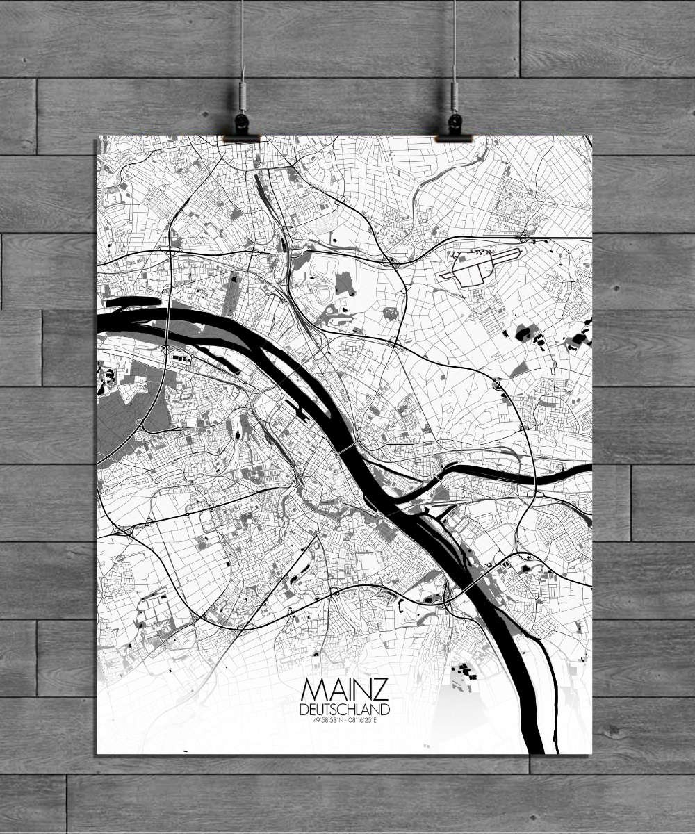 Poster City Map de Mayence, Rhénanie-Palatinat : une ville d’innovation et de créativité.