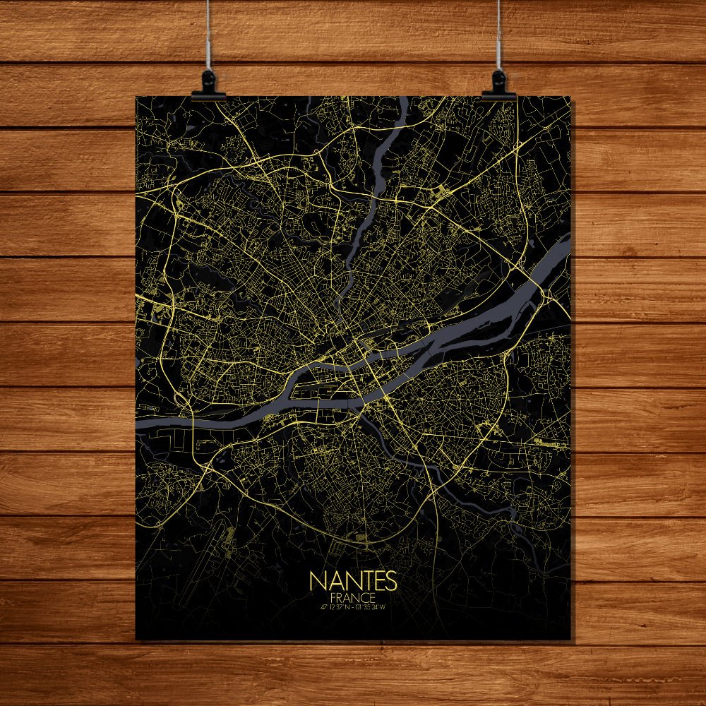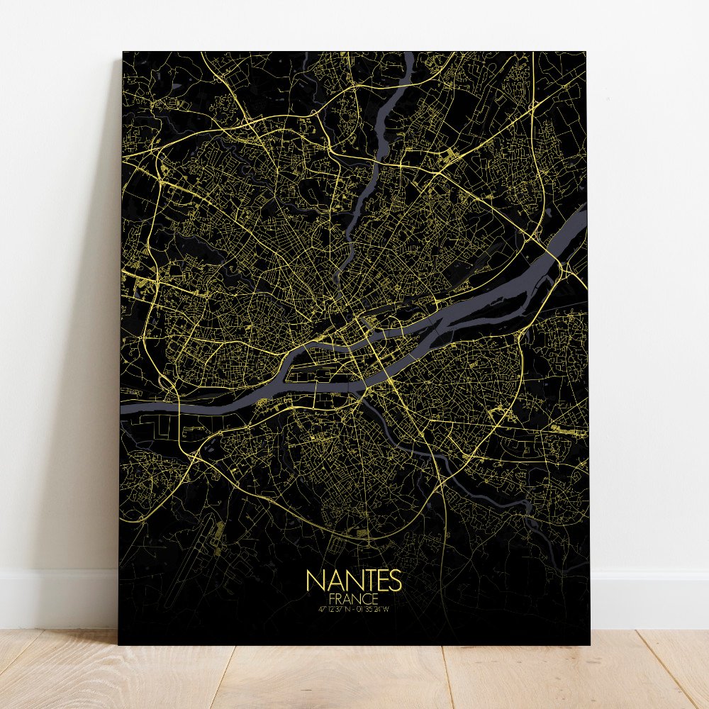 Poster City map de Nantes, France : Cette carte de Nantes révèle une ville façonnée par l’eau, construite sur des îles et dirigée à différentes époques par des ducs, des rêveurs et des ingénieurs aux grandes idées.