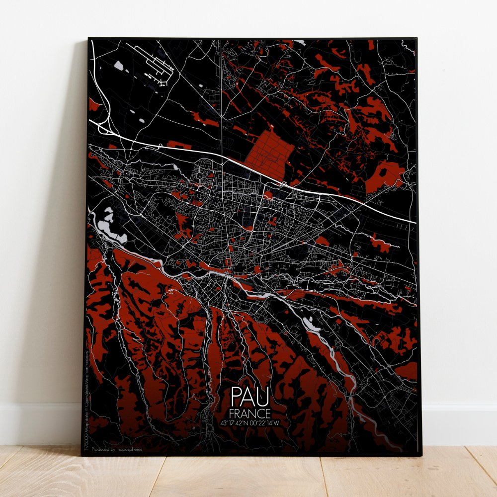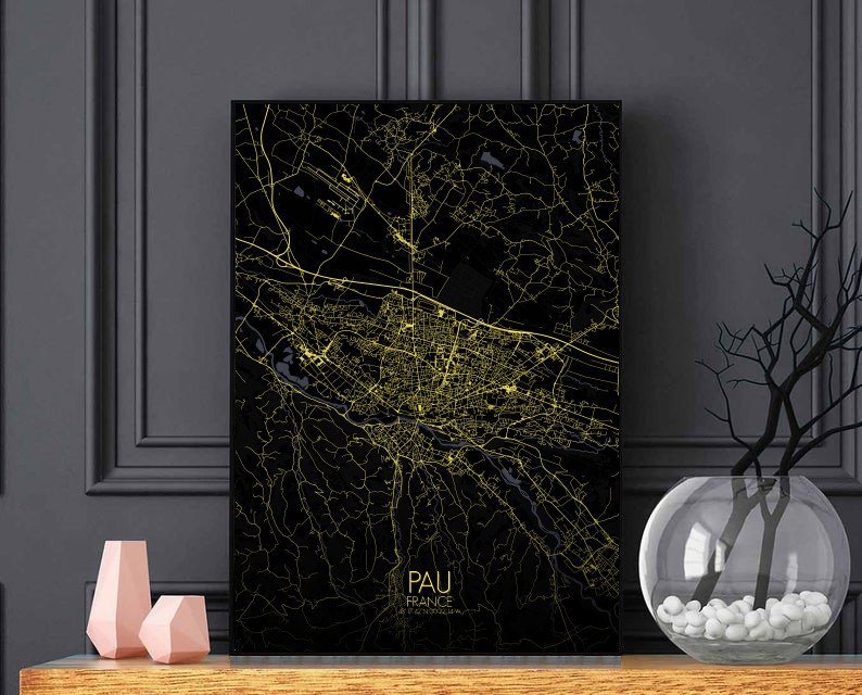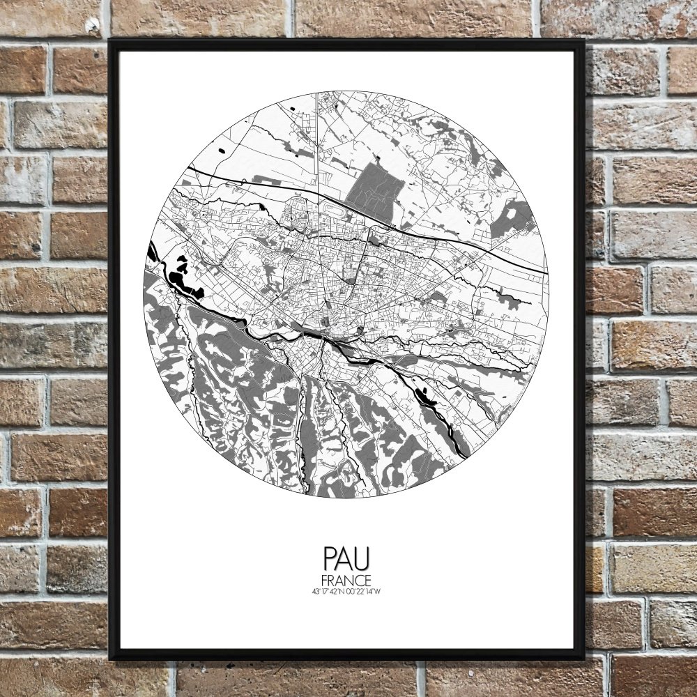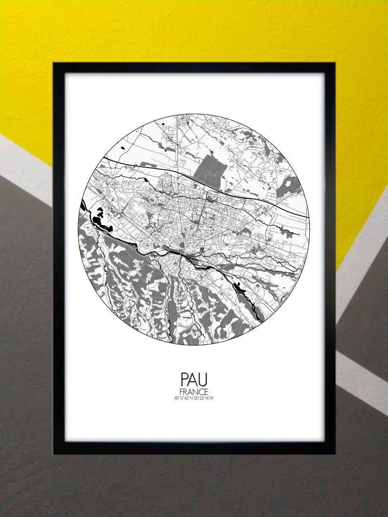 Obtenez une City Map – Carte murale – imprimée de la ville de Pau, France.
