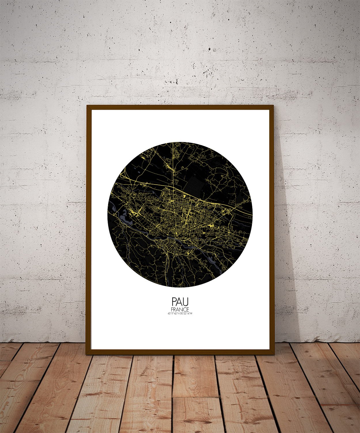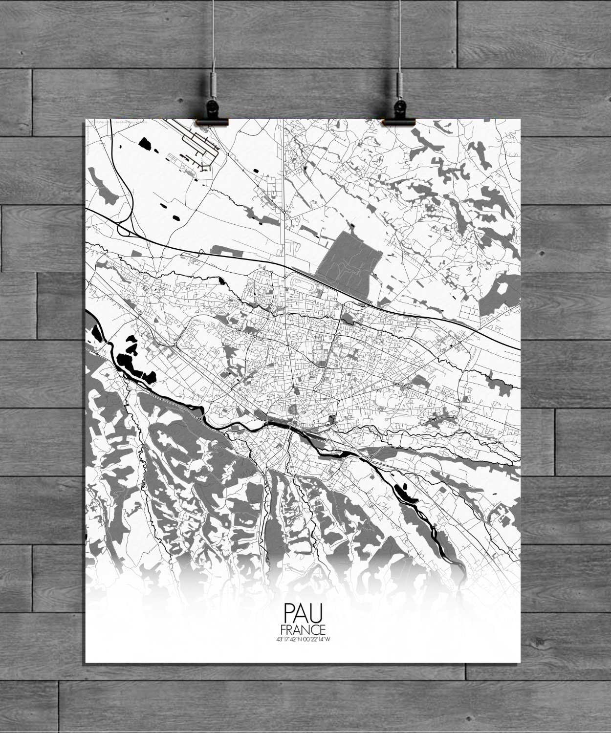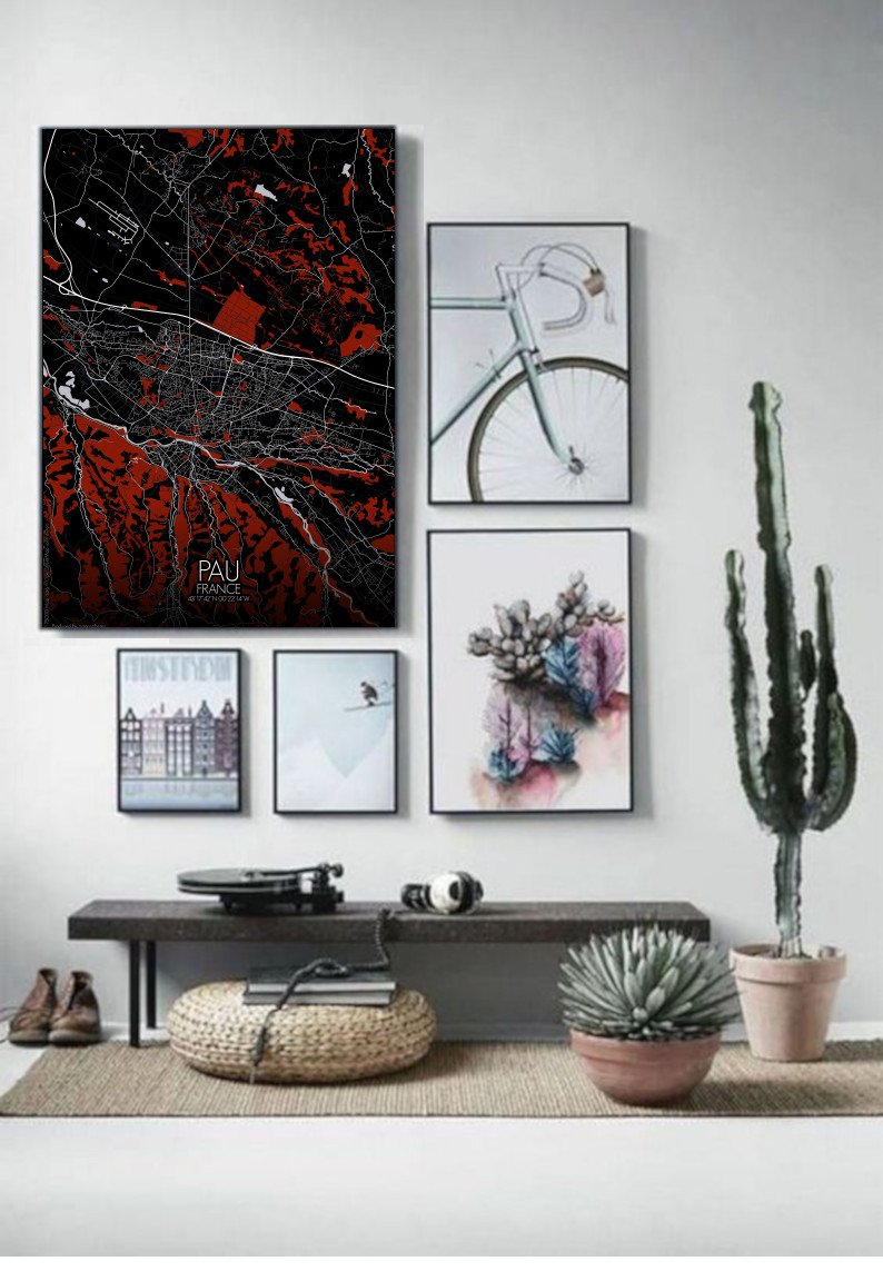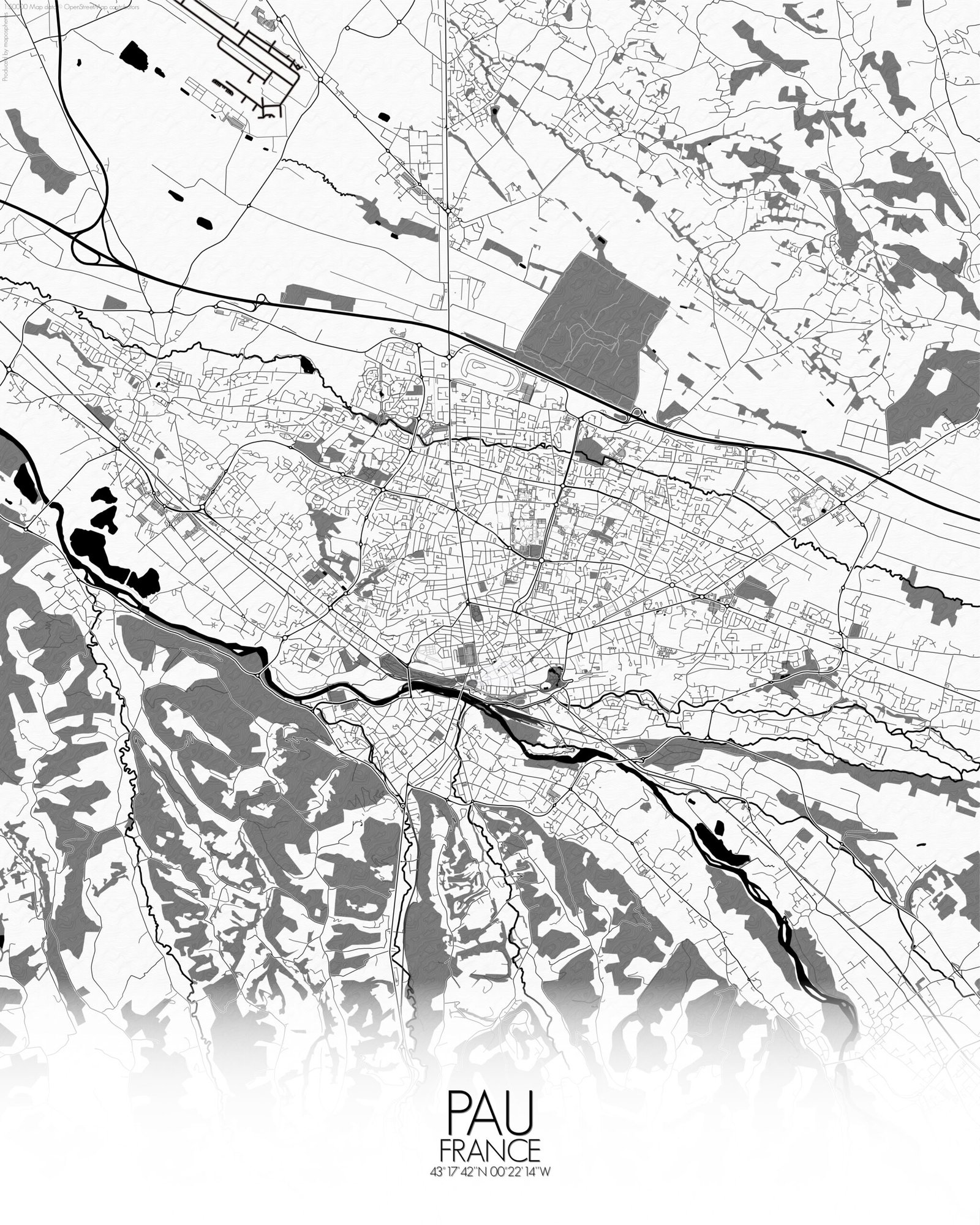 Obtenez une City Map – Carte murale – imprimée de la ville de Pau, France.