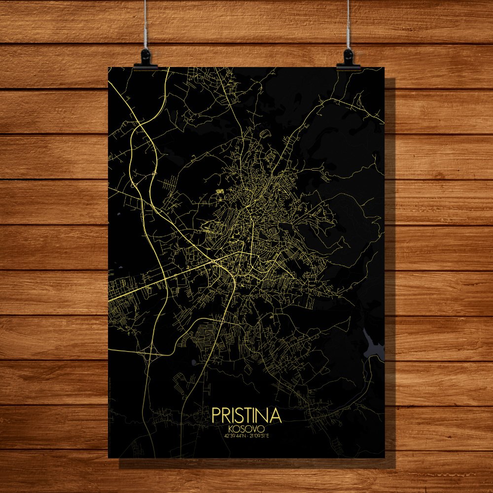 Obtenez une City Map – Carte murale – imprimée de la ville de Pristina, Kosovo.