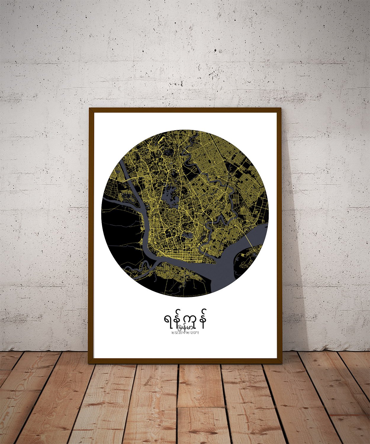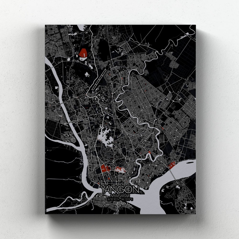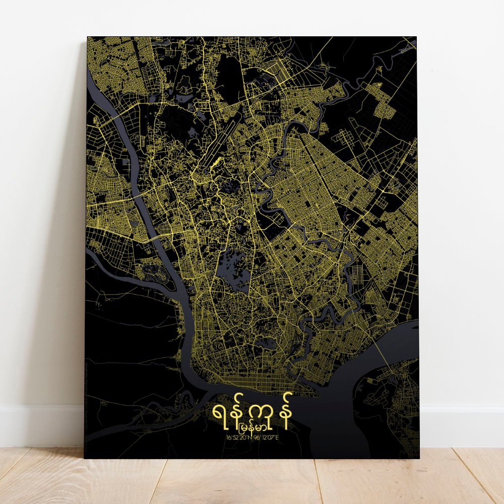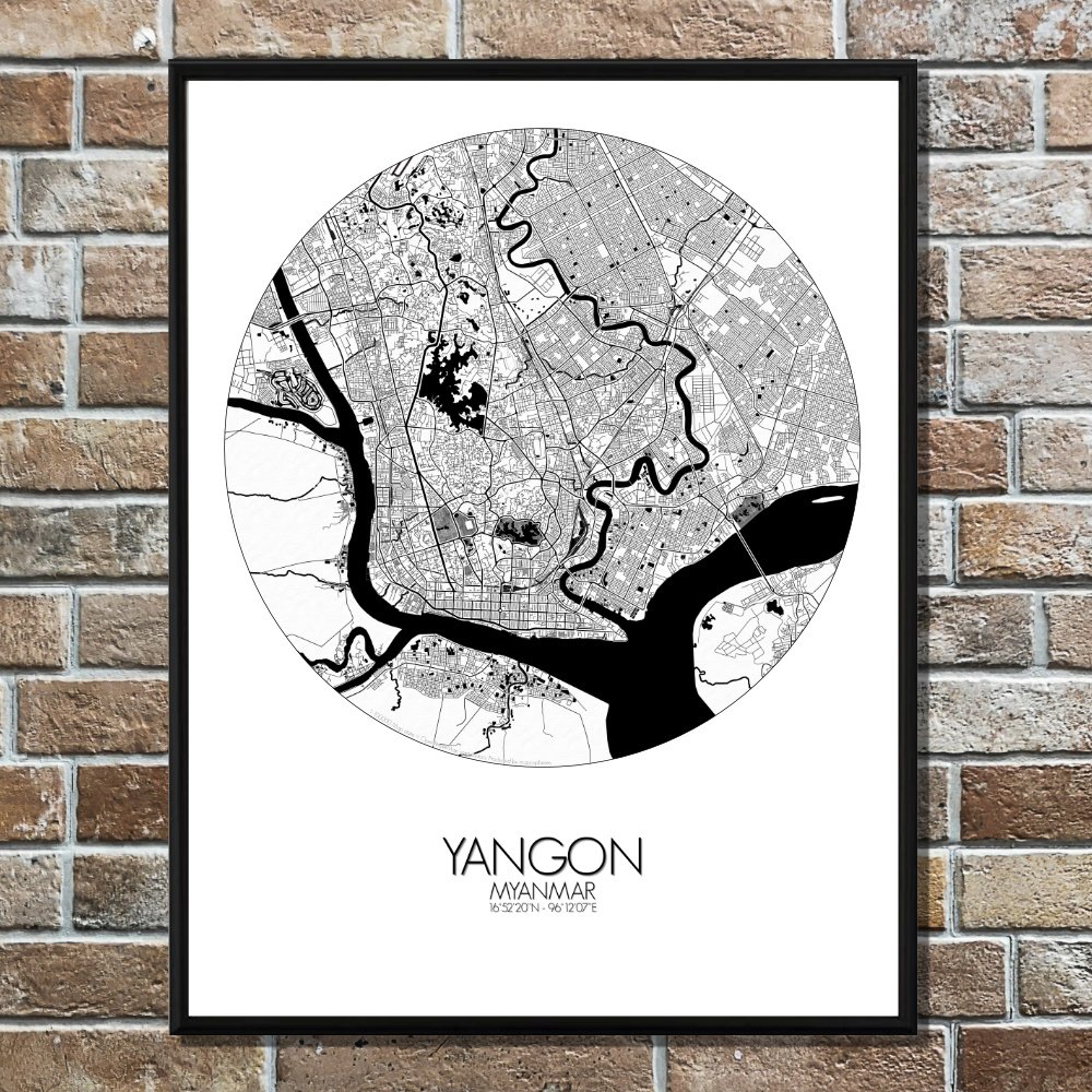 Obtenez une City Map – Carte murale – imprimée de la ville de Rangoun, Myanmar.
