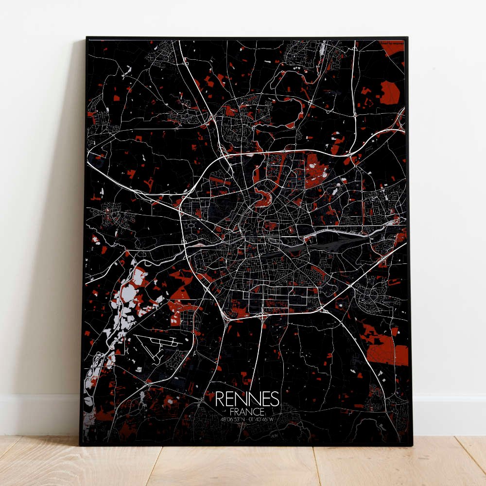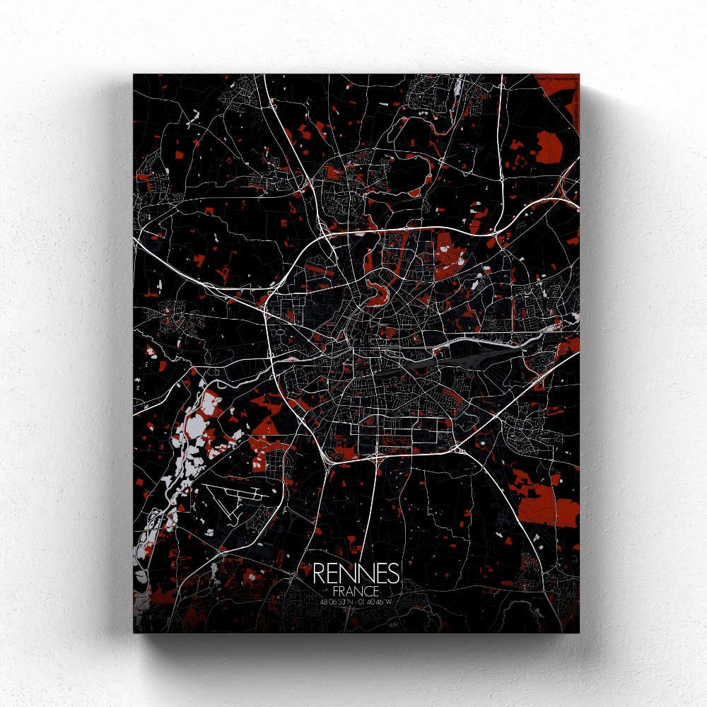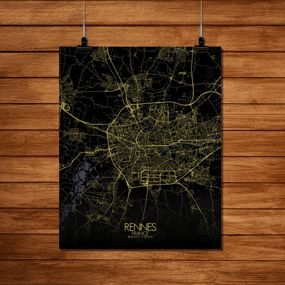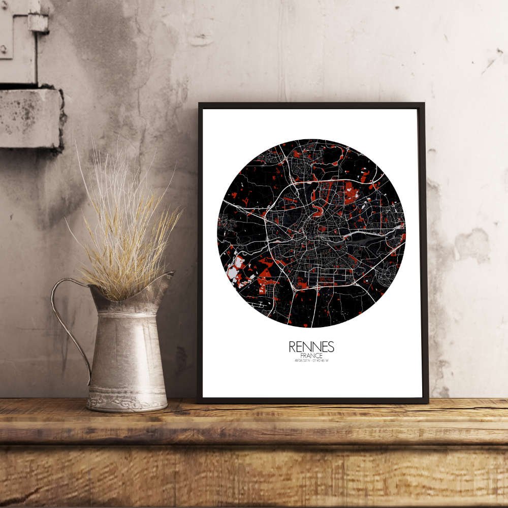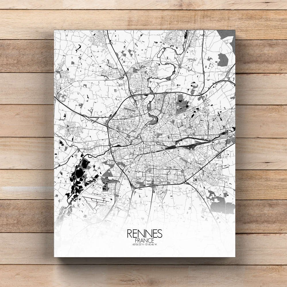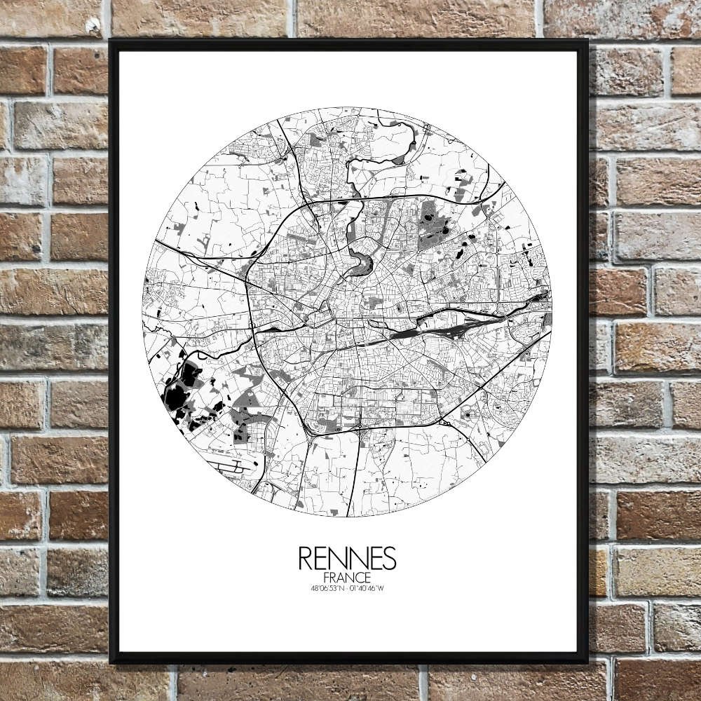 Achetez une City Map – Carte de ville murale – imprimée de la ville de Rennes, France.