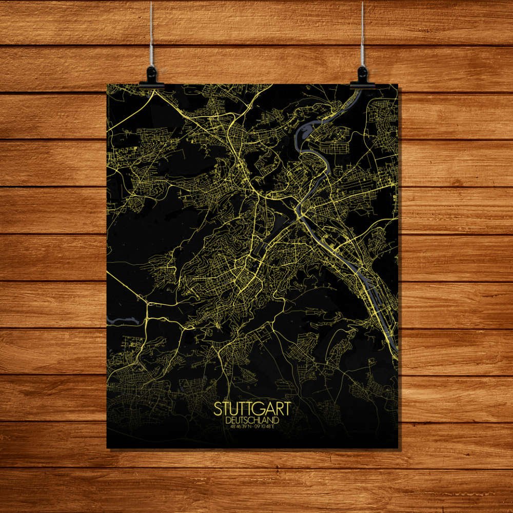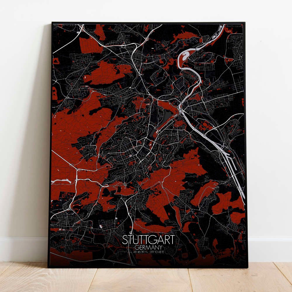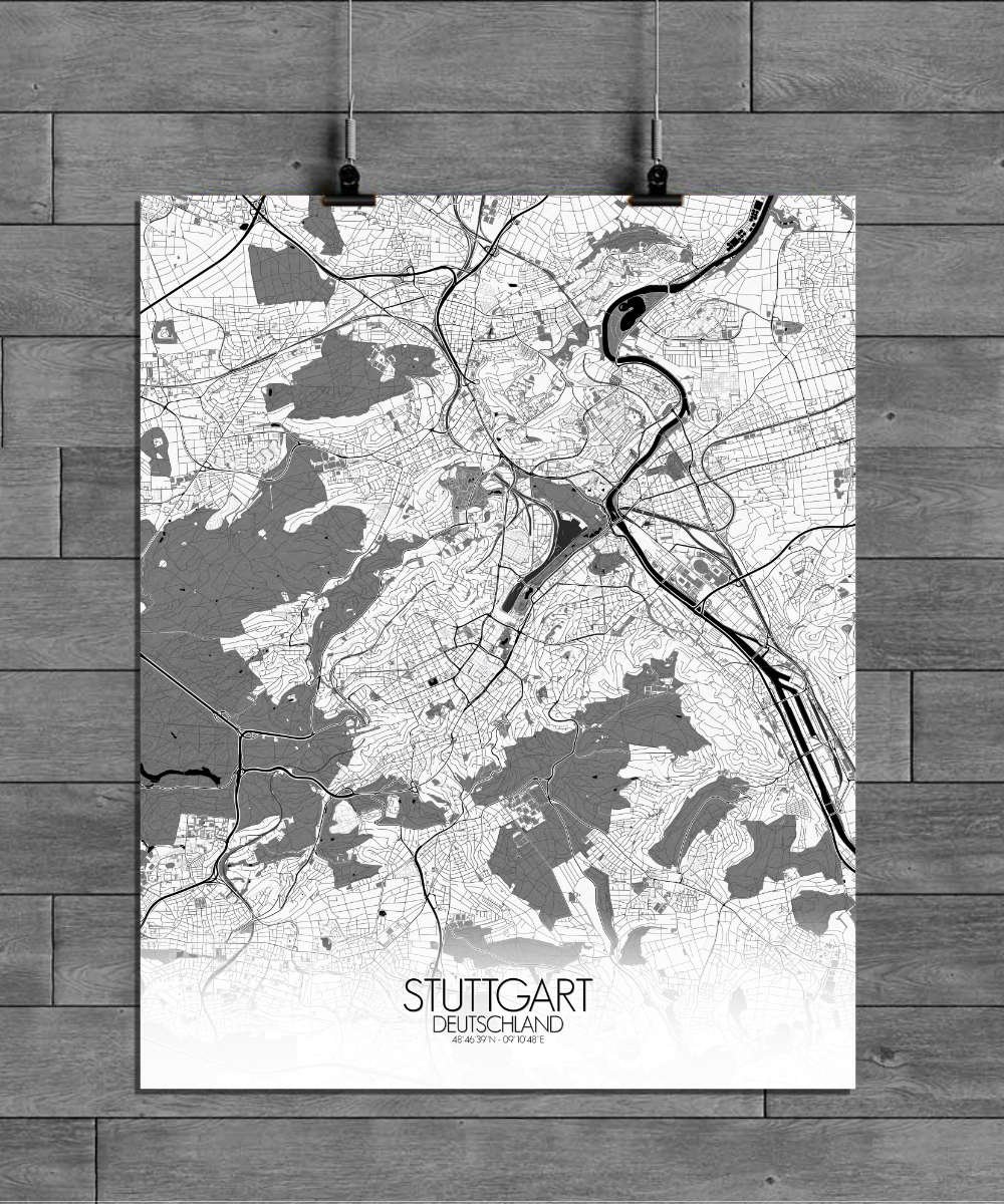 Poster City map de Stuttgart, Bade-Wurtemberg : un voyage visuel plein de reliefs et de surprises !