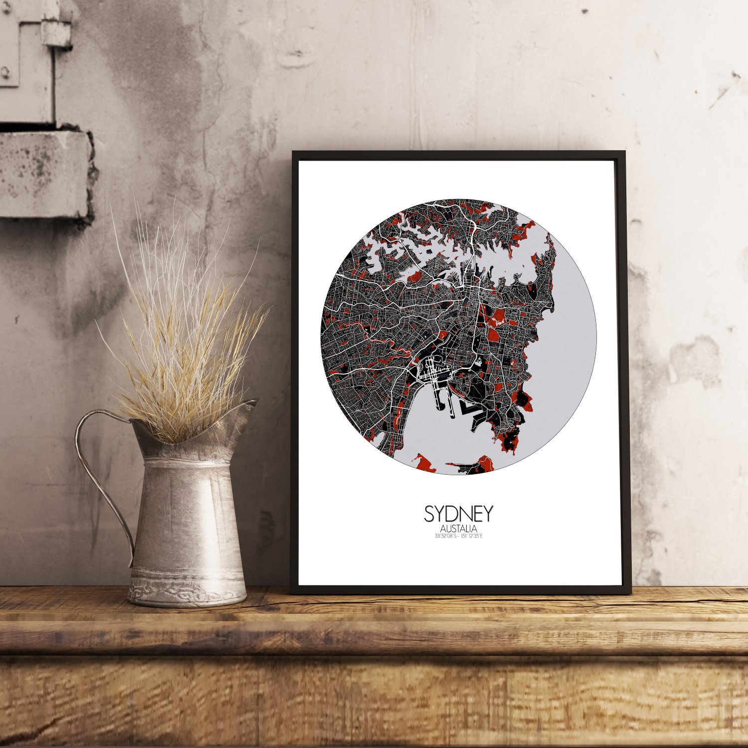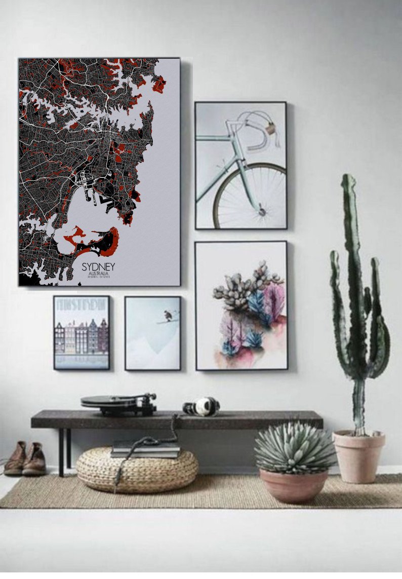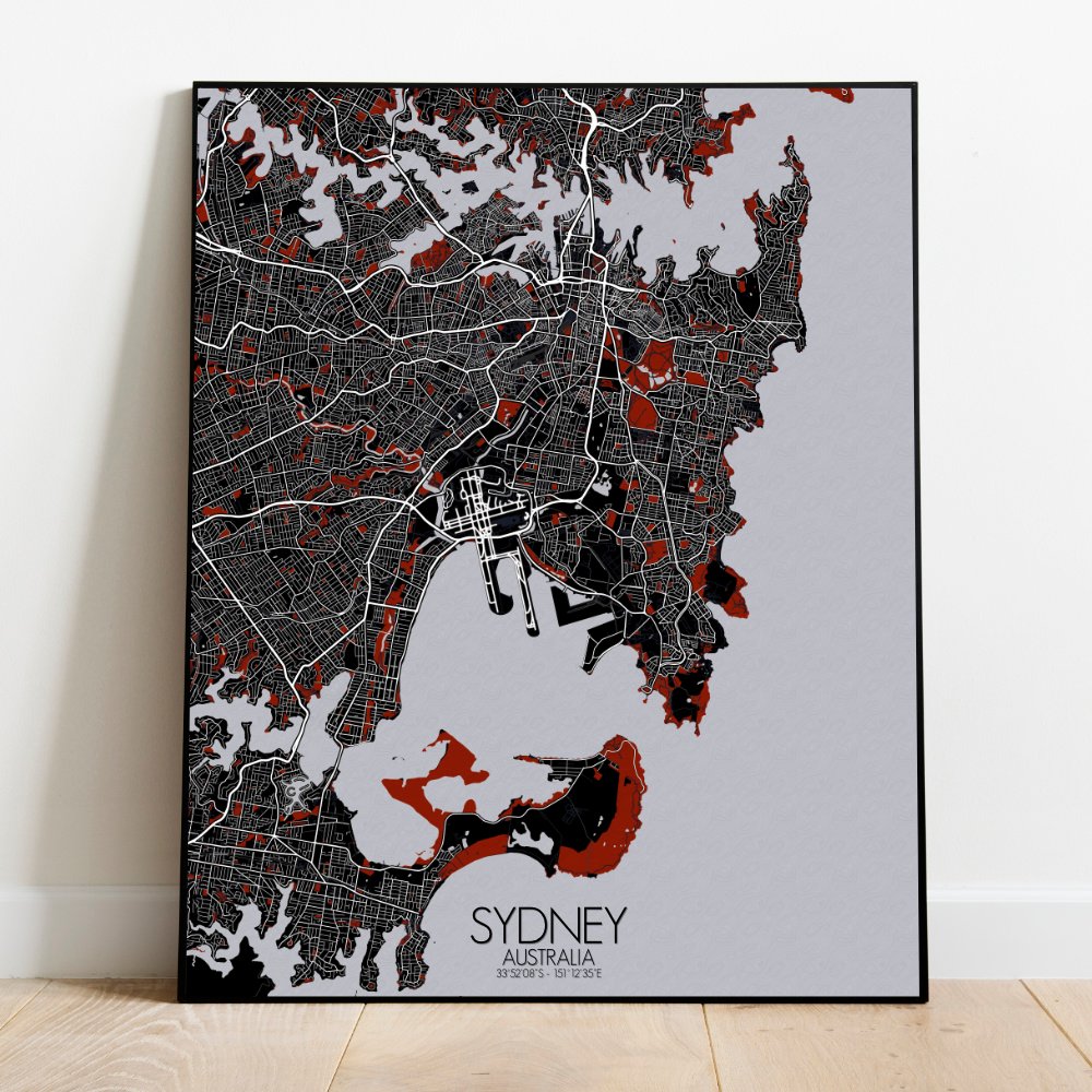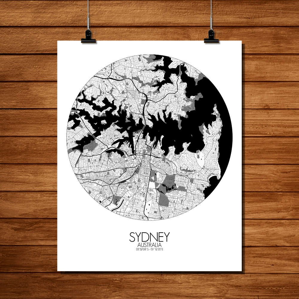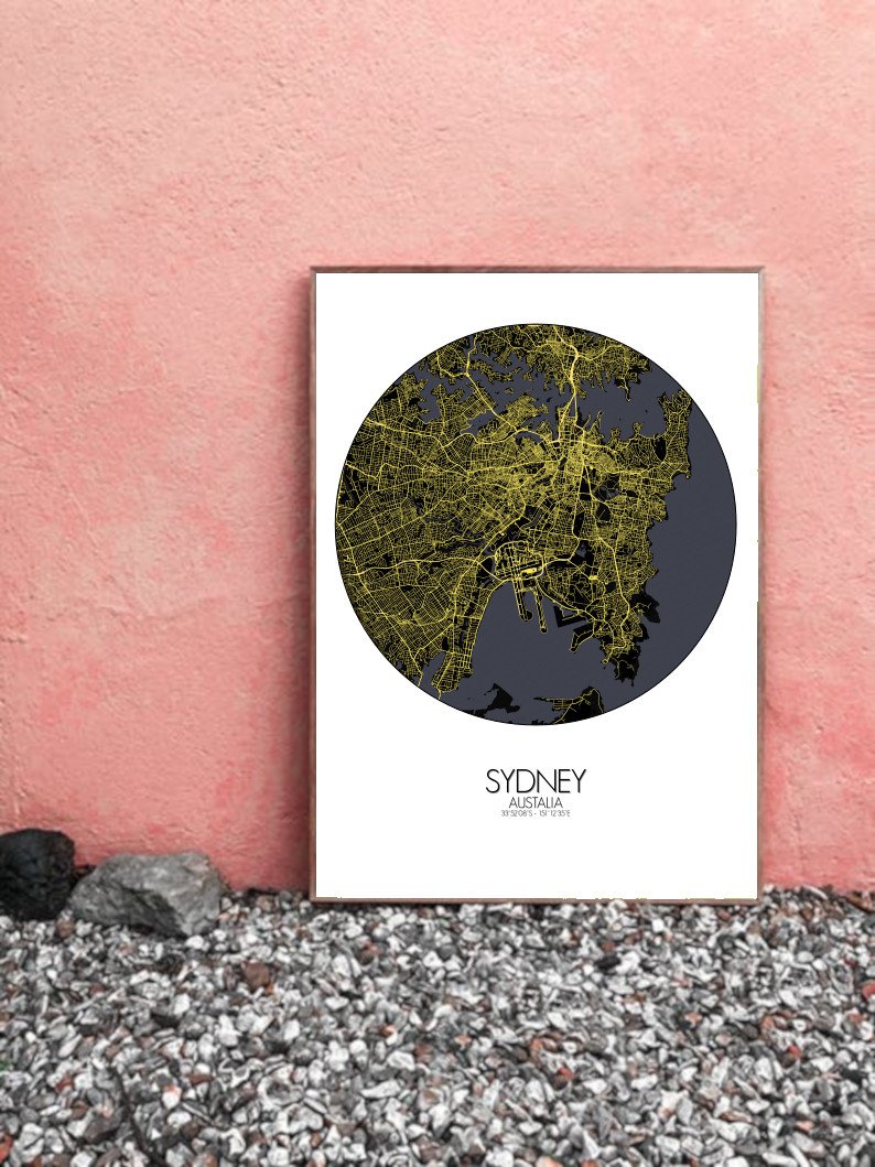 Obtenez une City Map – Carte murale – imprimée de la ville de Sydney, Australie.