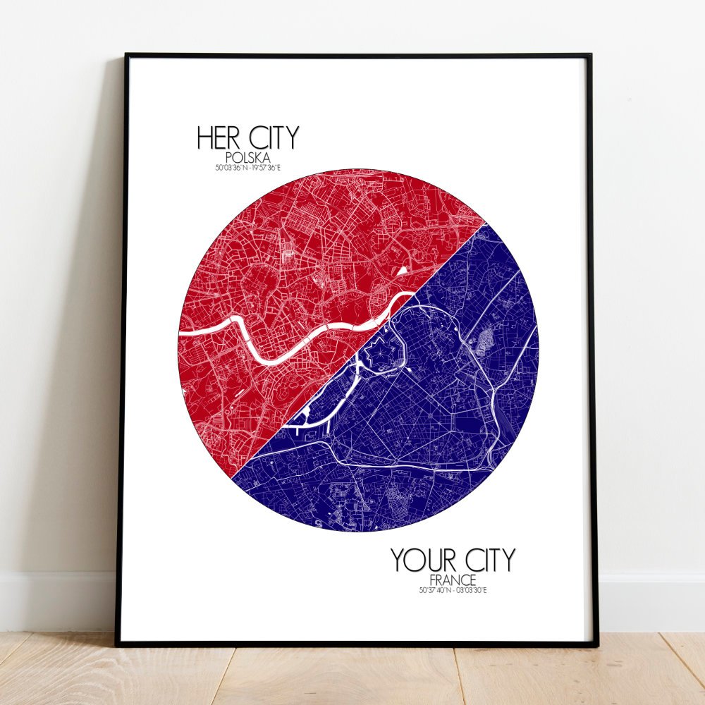 Mapospheres is a good mix of mapmaking and design to reflect your diversity and express your love! We created a distinct design series of Artwork, which displays the cities of origin of each member of a couple and combine them on big format city maps. Large-sized format maps printed on demand and easy to order!Â