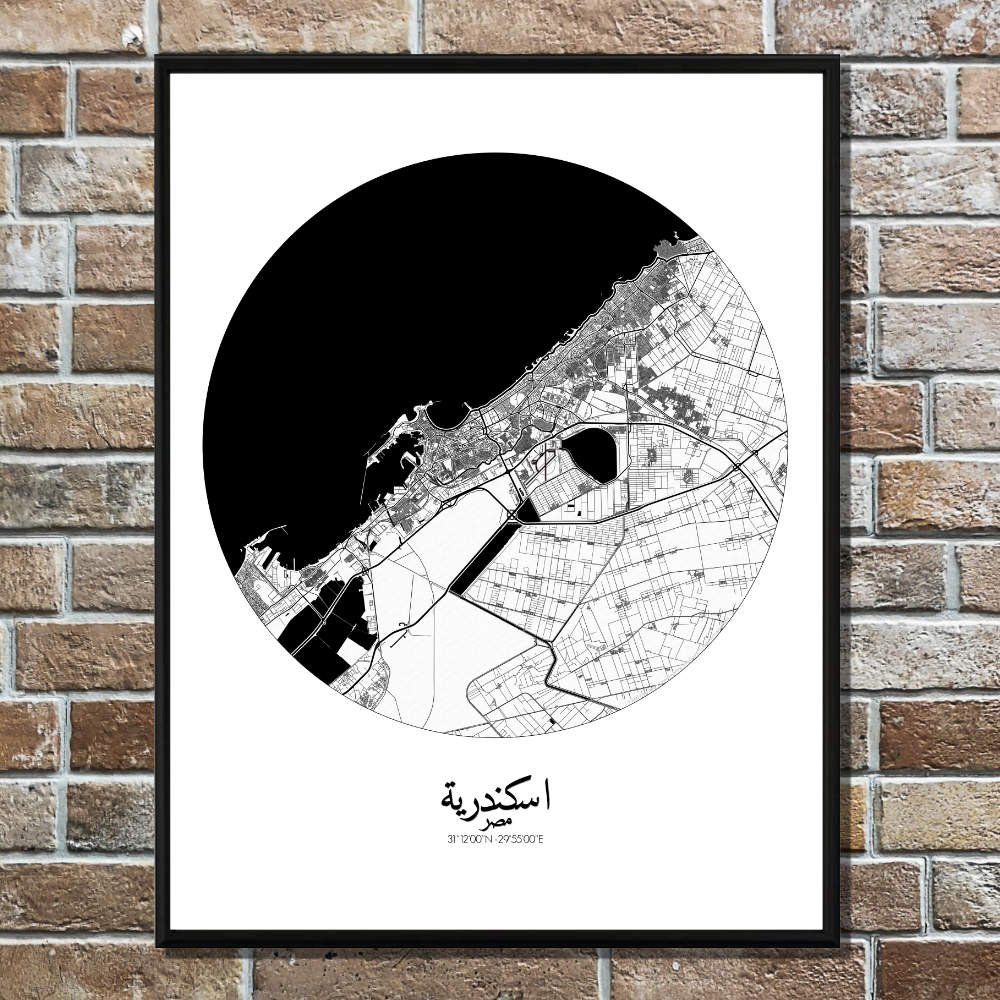 Nestled on the Mediterranean coast, Alexandria, Egypt, is a city where ancient history meets vibrant modern life, and its map captures the essence of this timeless blend. The map features the city’s natural layout, gracefully hugging the shoreline with the waters of the Mediterranean, while its sprawling streets reveal a city shaped by both nature and human hands. The terrain, with its subtle changes in elevation, invites the eye to wander across the gently rising hills, leading toward the famous Montaza Palace and its expansive gardens, a green gem on the city’s edge. A thick network of streets, once planned by the Ptolemies, carries the marks of Alexandria’s ancient glory, from the once mighty Library of Alexandria (long gone but still whispered about in the breeze) to the remnants of the Pharos Lighthouse, one of the Seven Wonders of the Ancient World. Greenspaces like the serene Alexandria Corniche, stretching along the waterfront, offer delightful contrasts against the urban sprawl. Parks, gardens, and tree-lined avenues dot the map, making Alexandria not just a bustling metropolis but also a city that knows how to take it easy, whether under the shade of a palm or near the quiet of the Mediterranean.