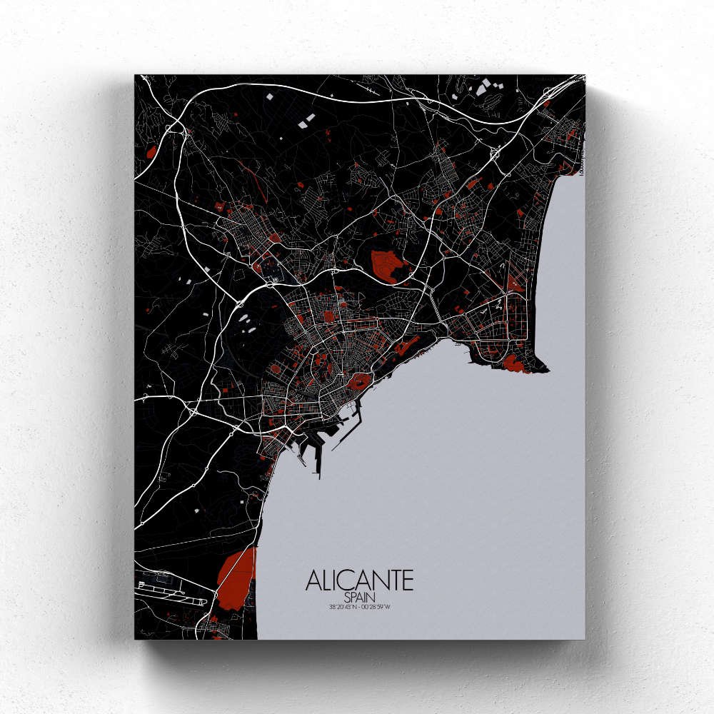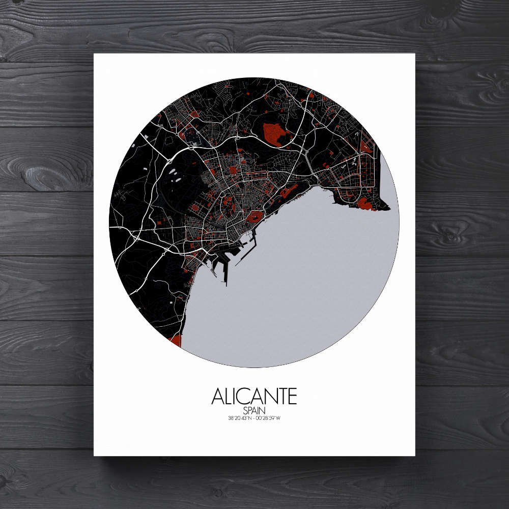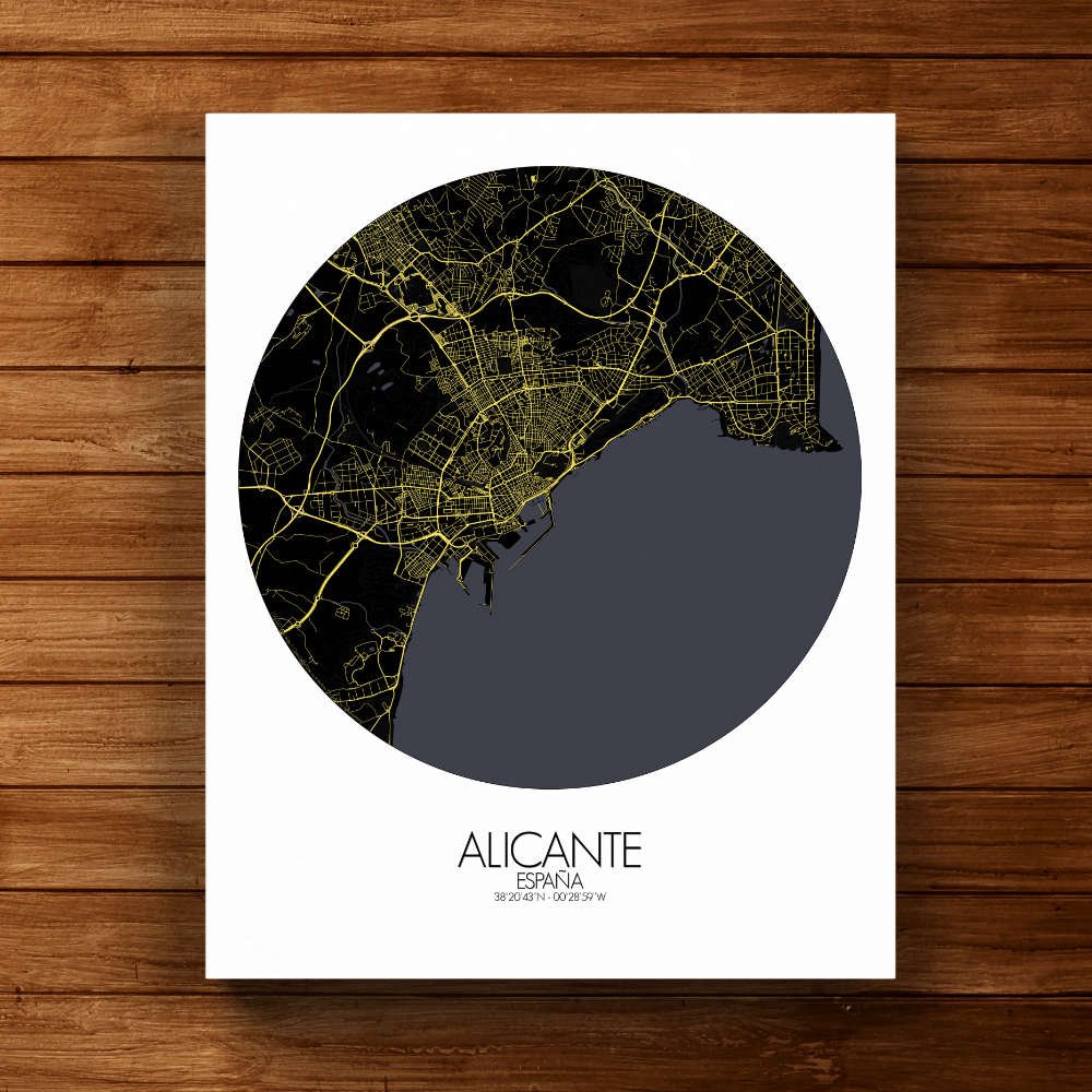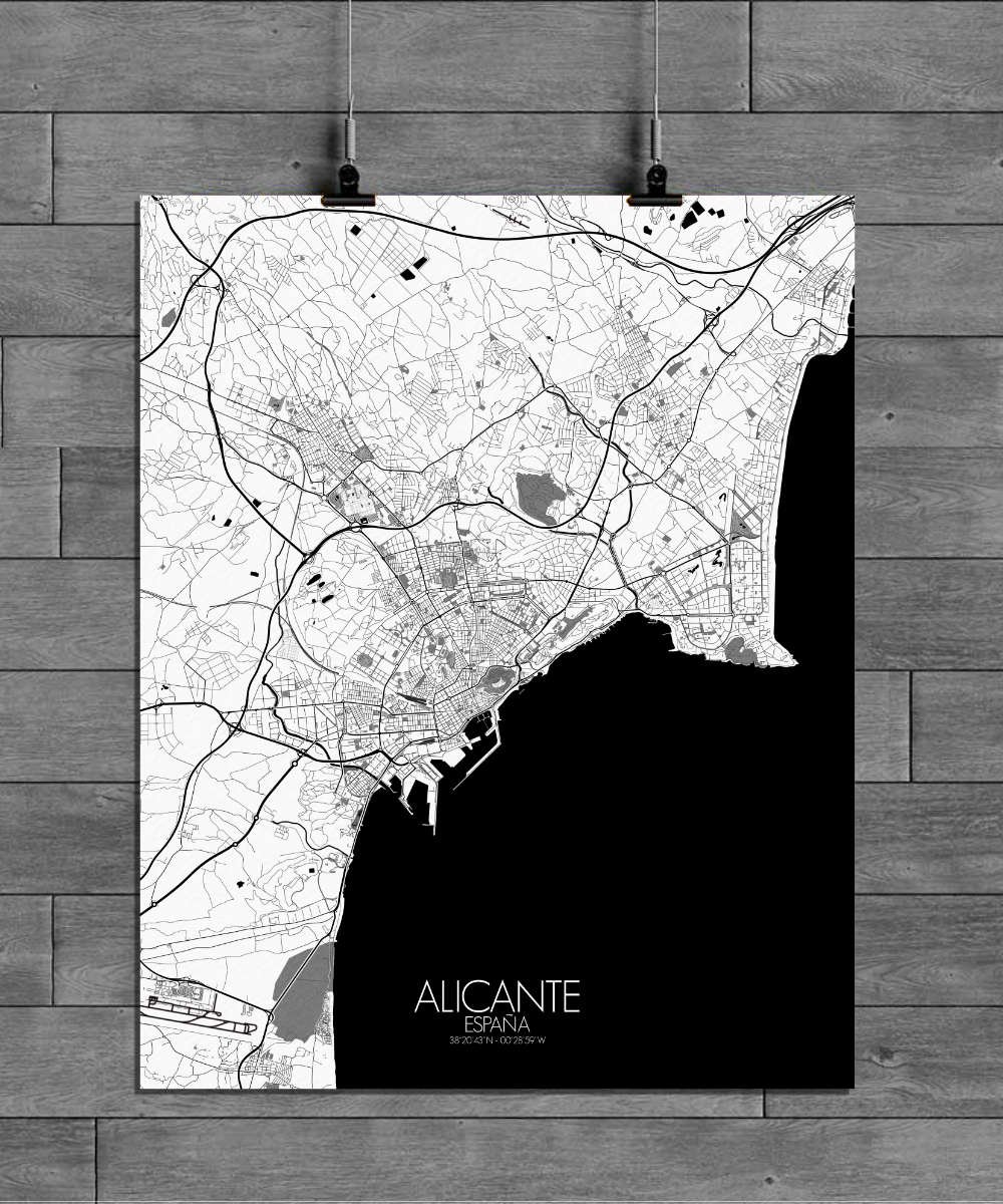 Get this Poster City Map print of Alicante, Spain, as a wall map. You can select the size, color or pattern for your map !
