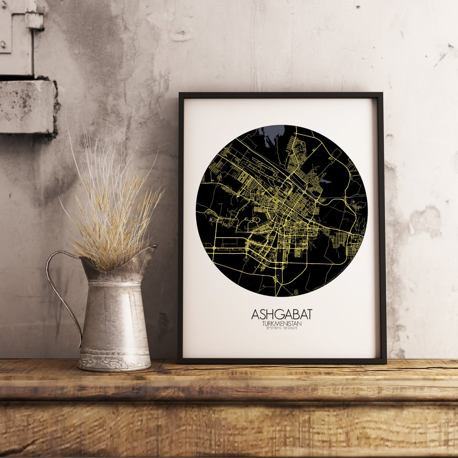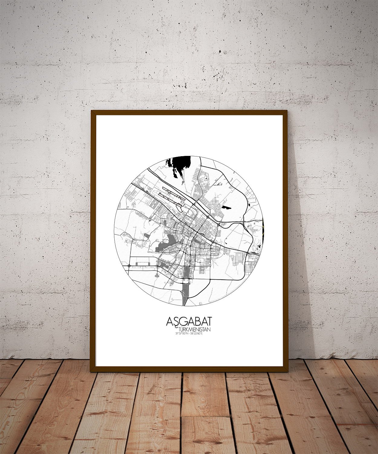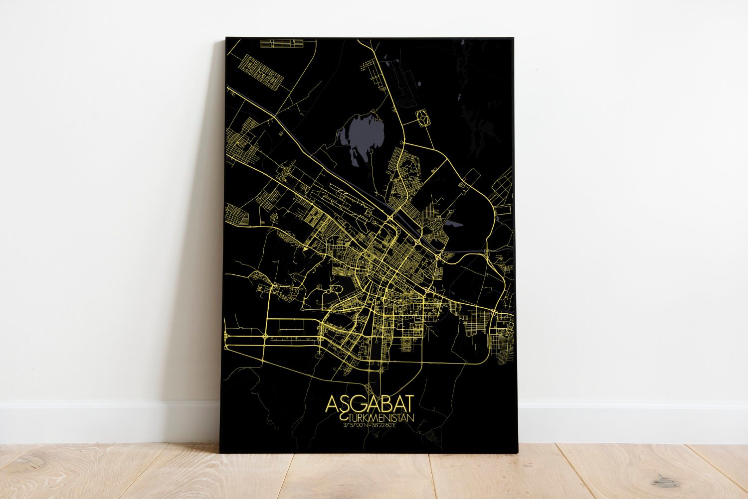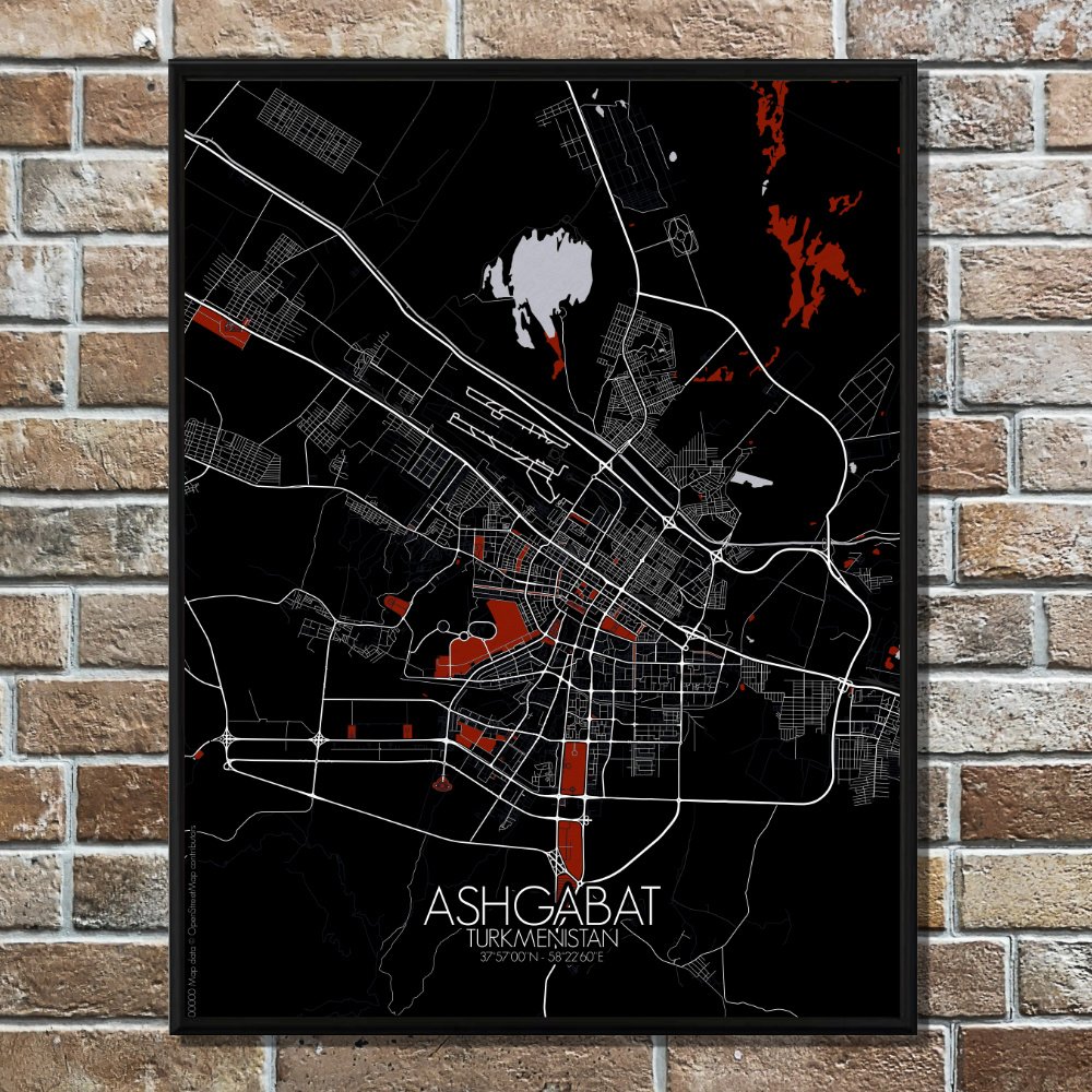 Poster City map of Ashgabat, Turkmenistan: the marble mirage of the desert, Ashgabat rises where the Karakum sands meet the foothills of the Kopet Dag mountains — and this map captures that strange and wonderful meeting point with quiet precision.