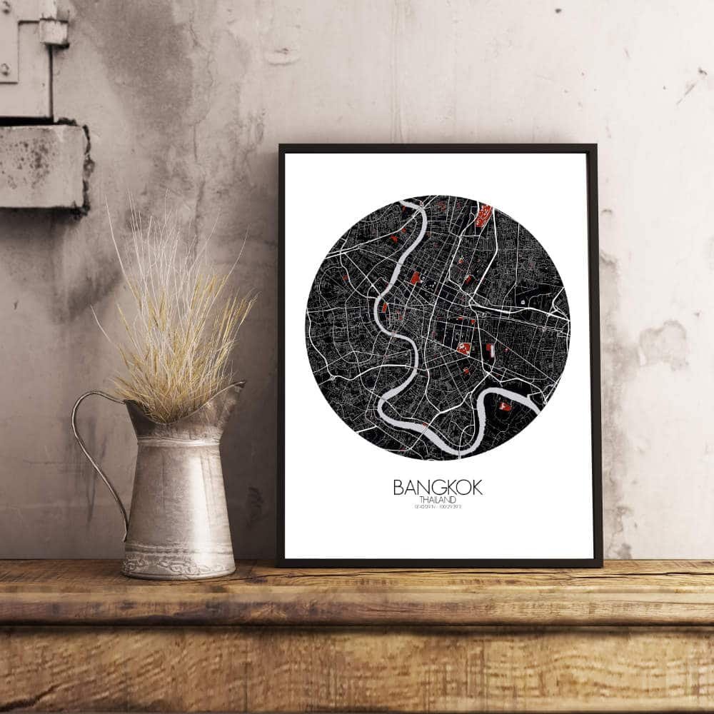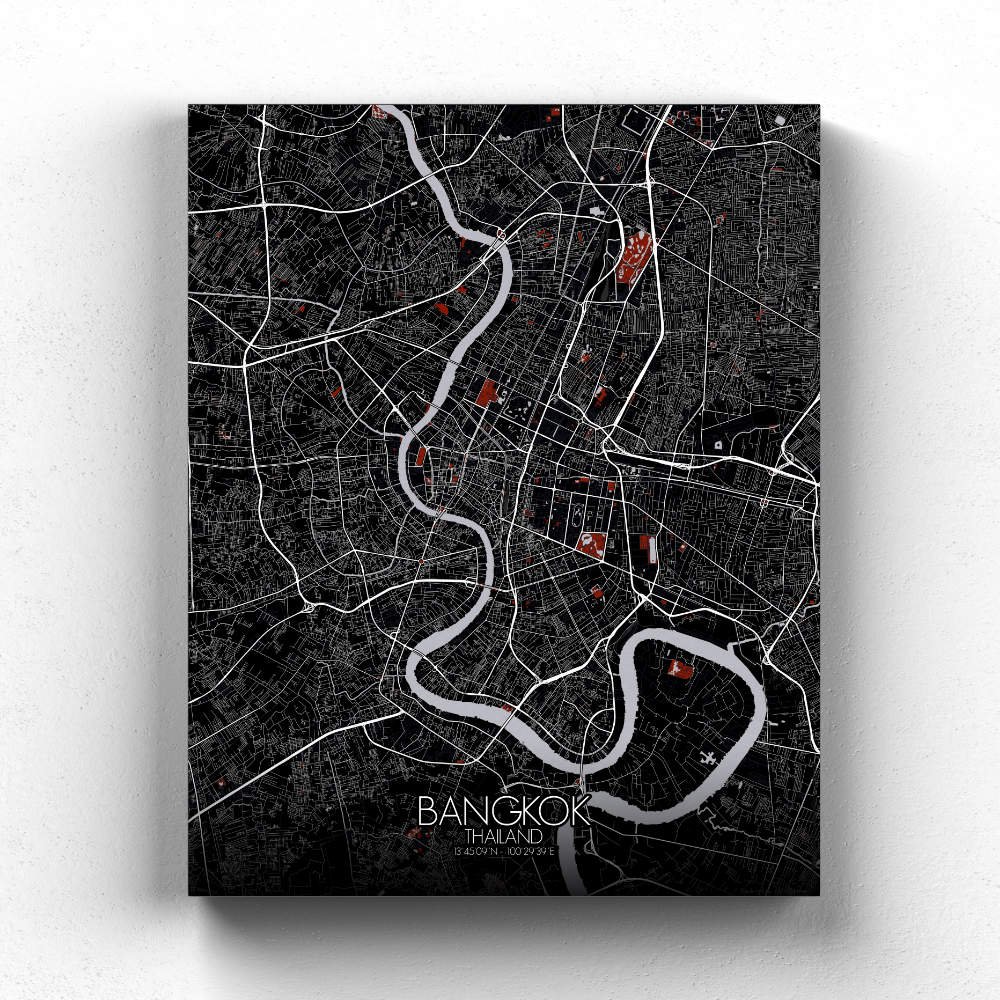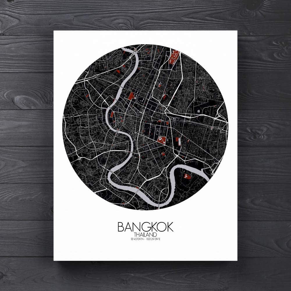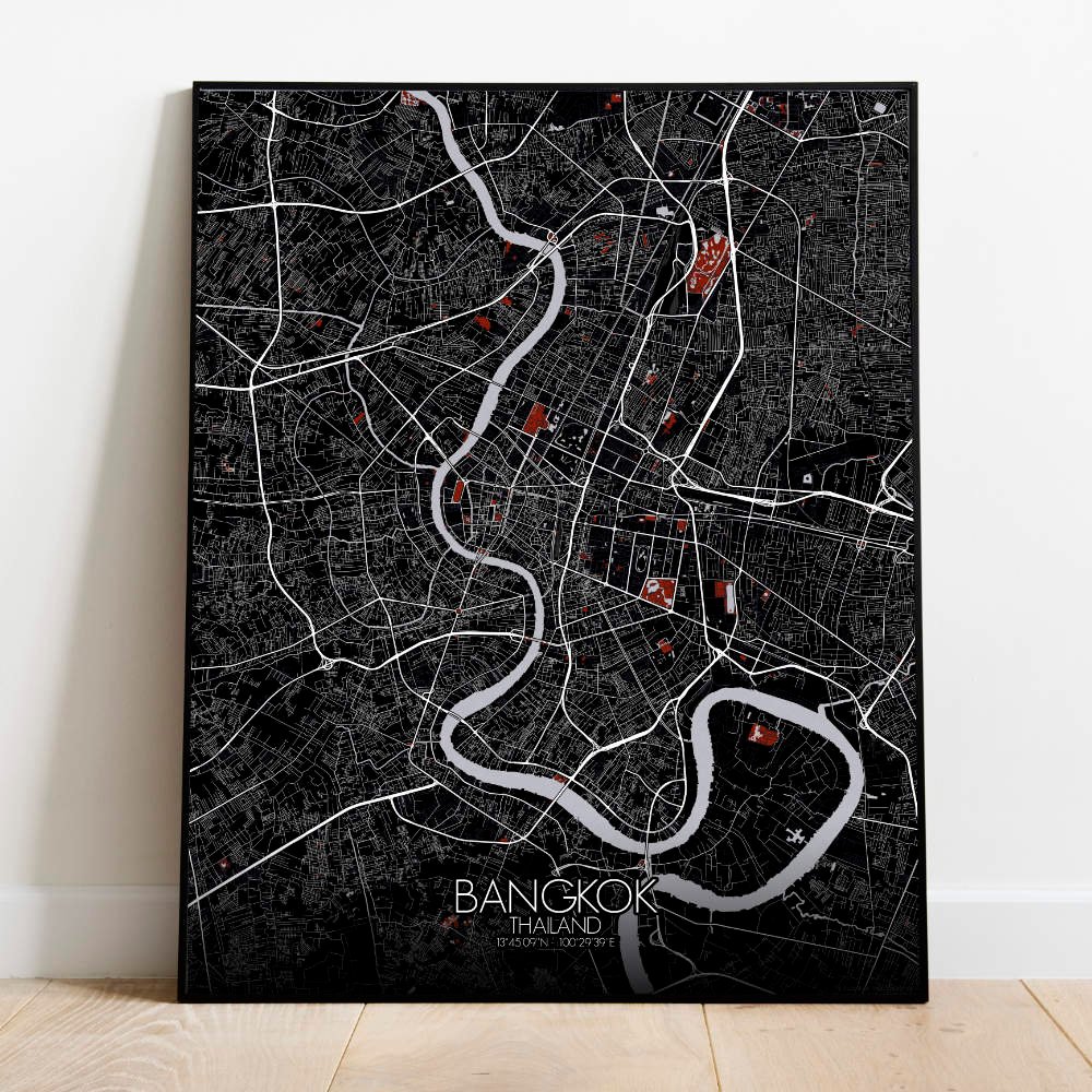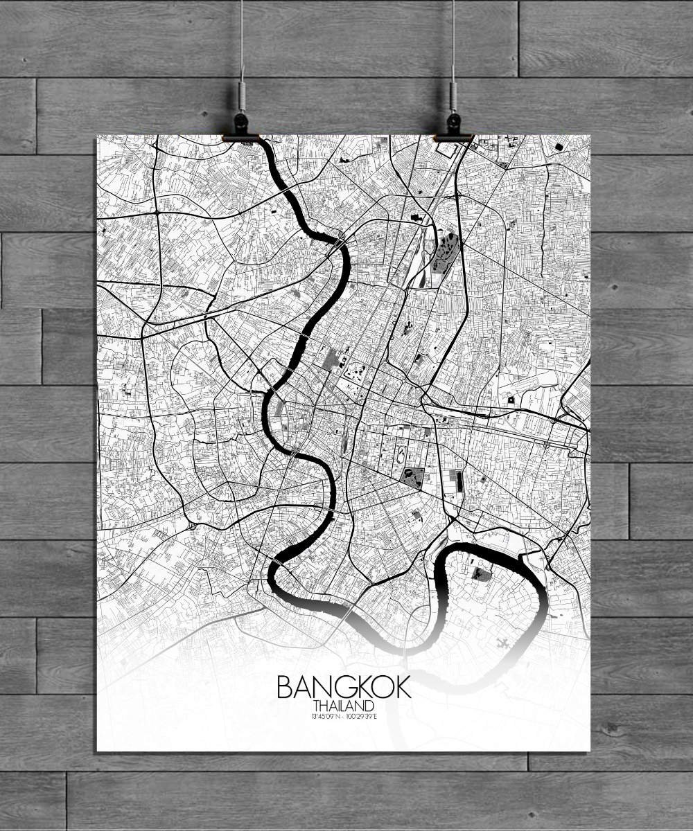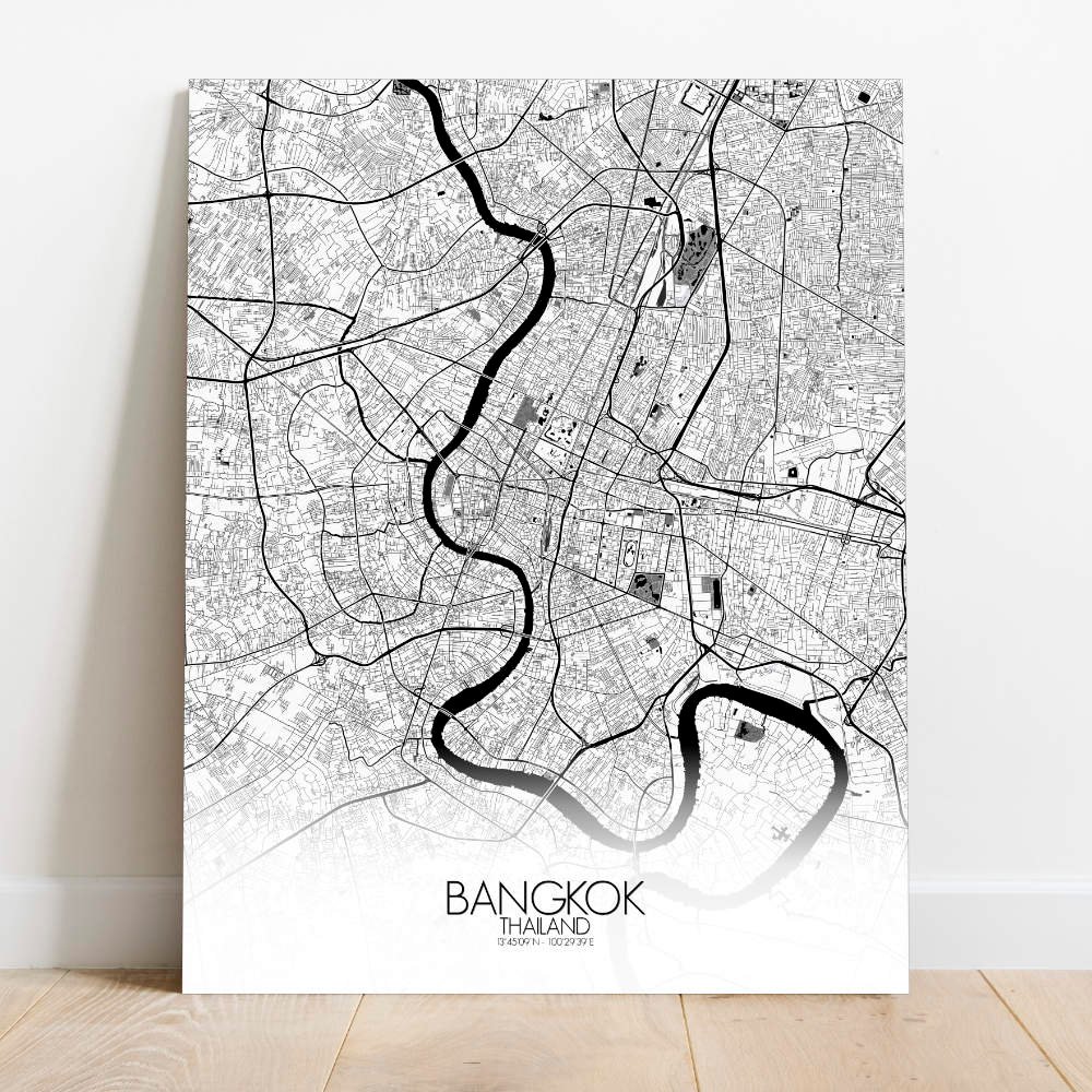 Poster City map of Bangkok, Thailand: The map captures the intricate network of canals, known locally as “khlongs,” which were once the city’s main arteries.