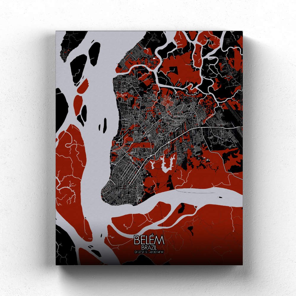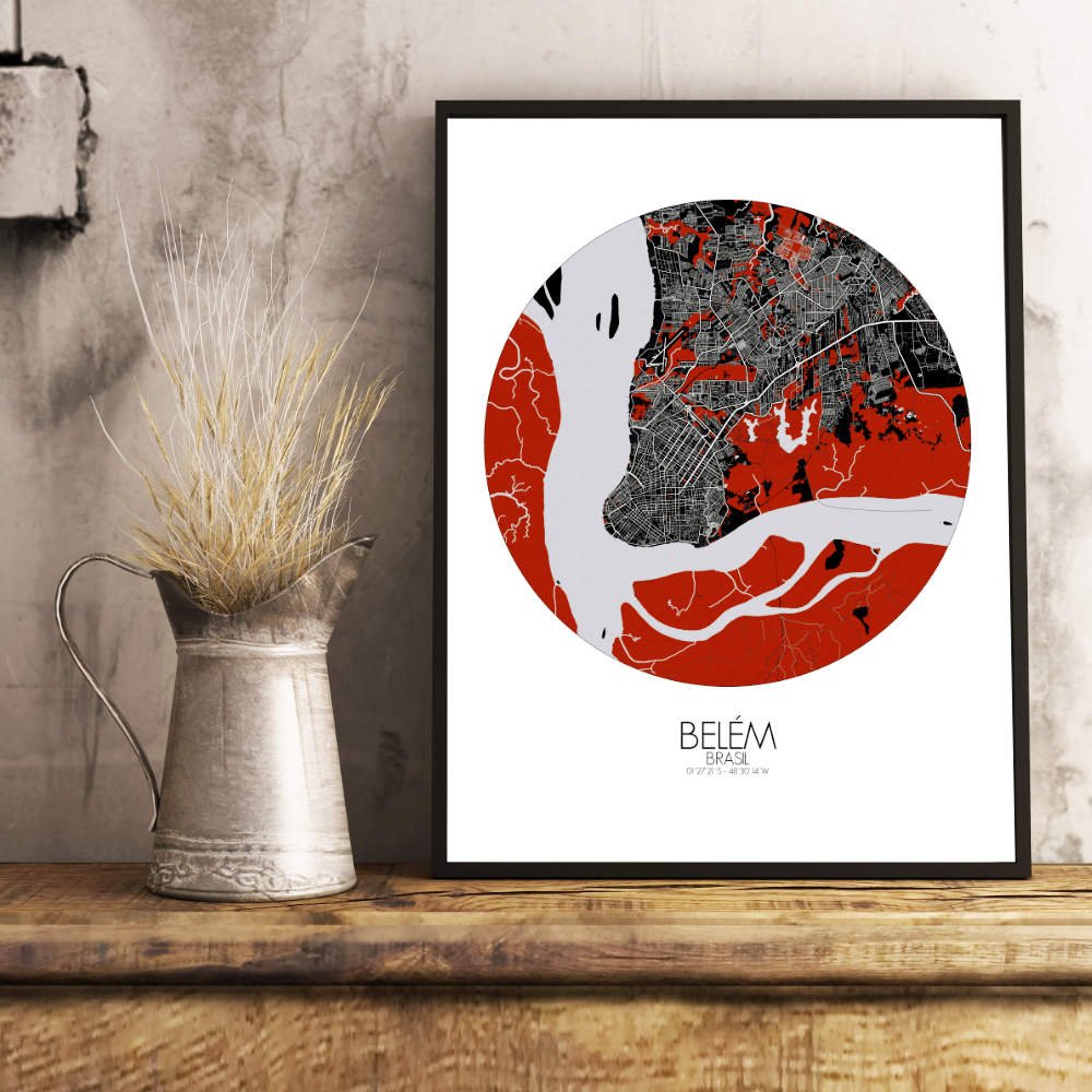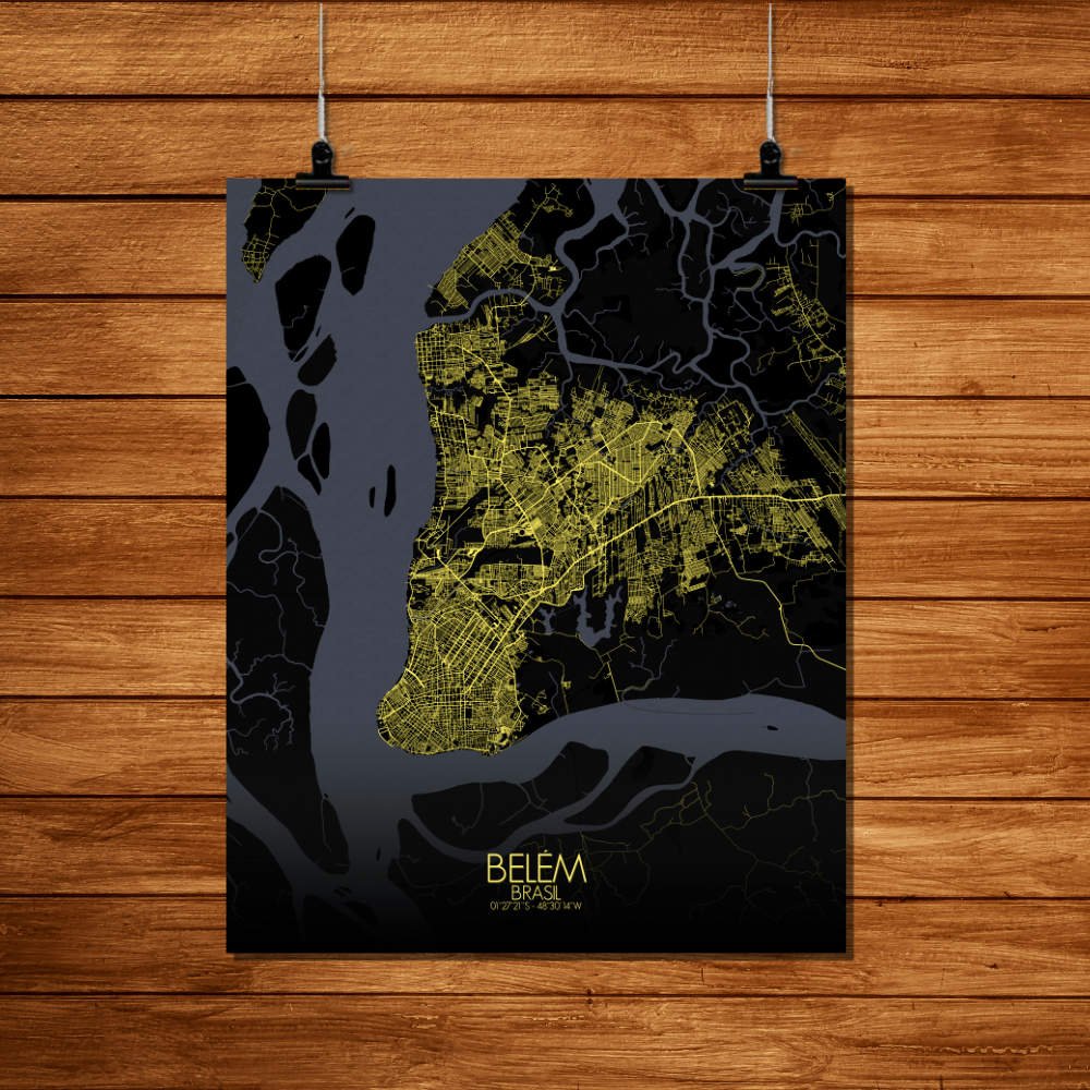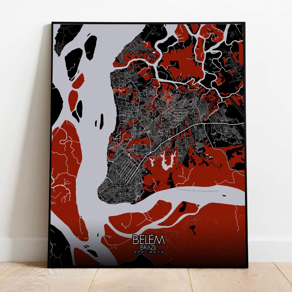 Explore the map and the sinuous curves of the Pará River as it winds its way through the city like a ribbon of liquid silver, breathing life into its bustling heart. The majestic Ver-o-Peso Market, its colorful stalls and bustling atmosphere is a vibrant reflection of the city’s rich cultural heritage. Do not forget he historic architecture of the Cidade Velha, where centuries-old buildings whisper tales of days gone by. So whether you’re a proud Belenense, or simply a lover of all things lovely, this map of Belém is sure to captivate your imagination and transport you to a world of whimsy and wonder with each passing glance. Hang it on your wall and let its charm brighten up your space with a touch of Brazilian flair.