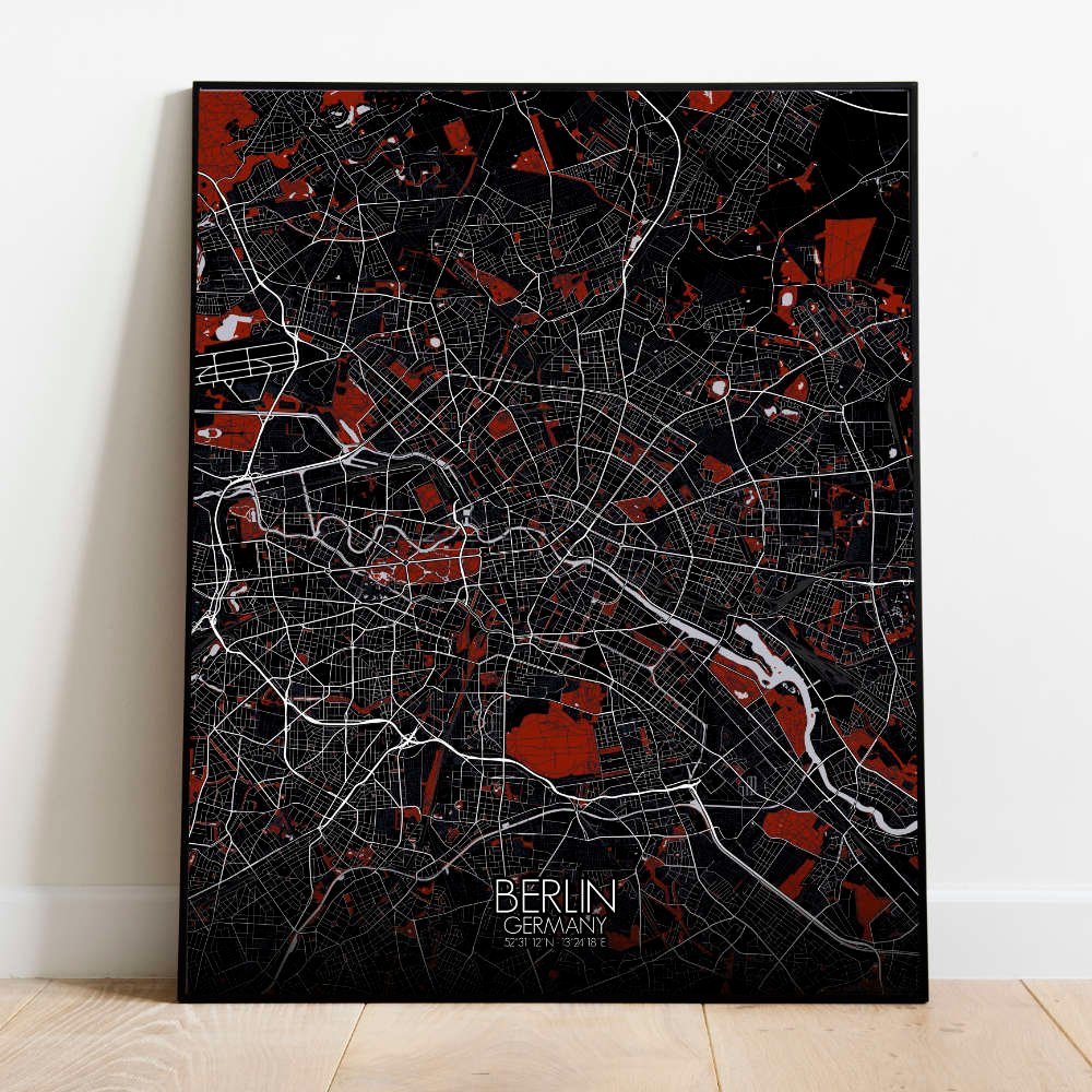 Get this Poster City Map print of Berlin, Germany, as a wall map. You can select the size, color or pattern for your map !