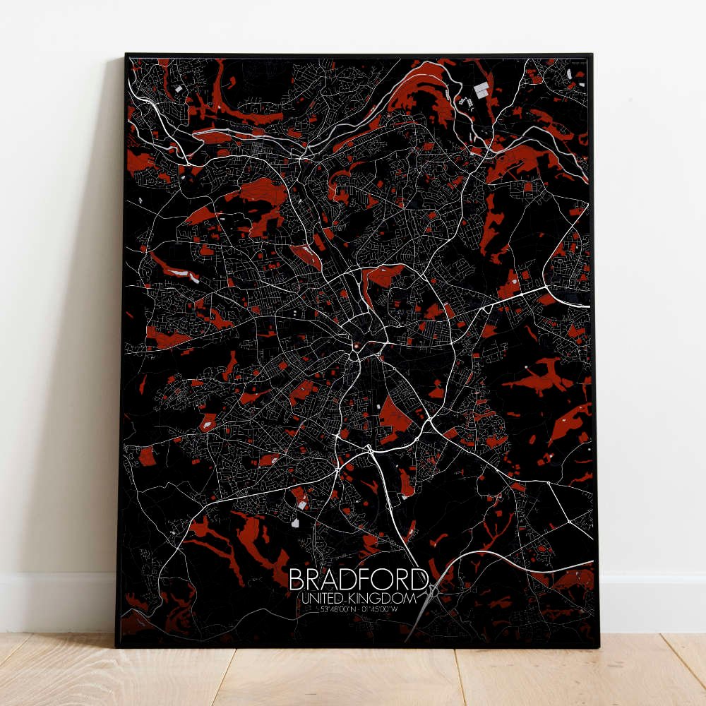 Get this Poster City Map print of Bradford, UK, as a wall map. You can select the size, color or pattern for your map !