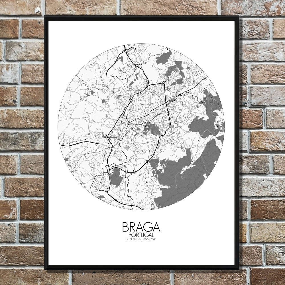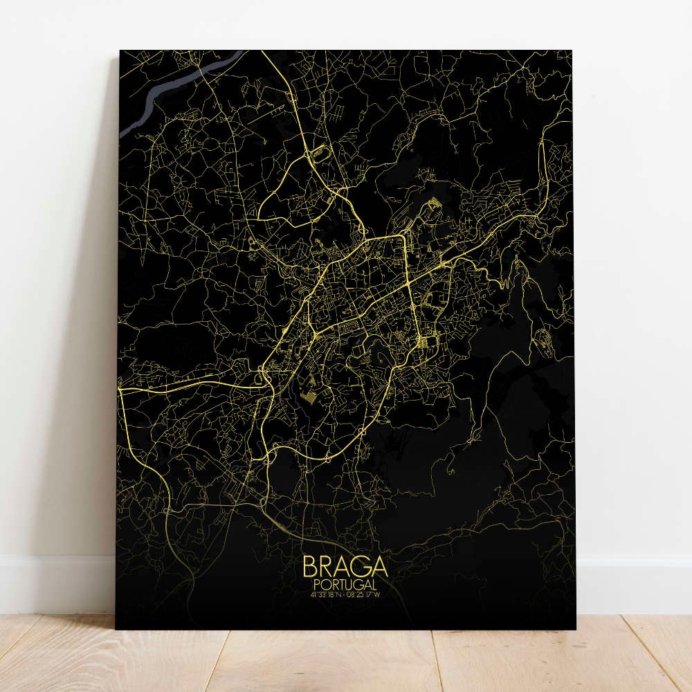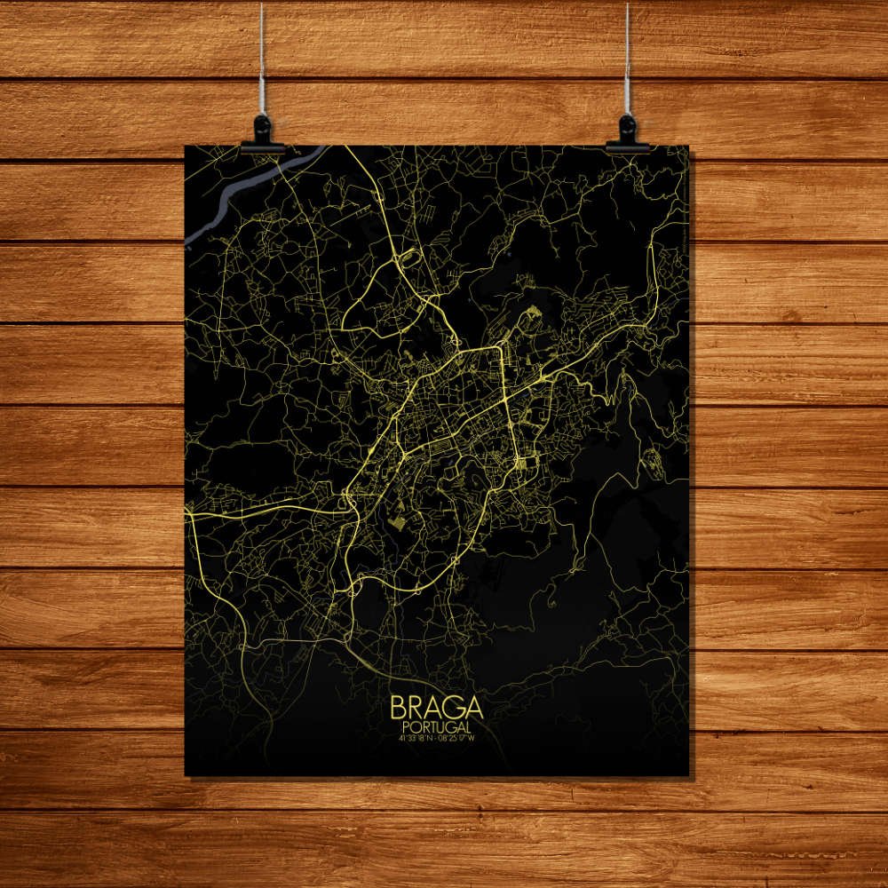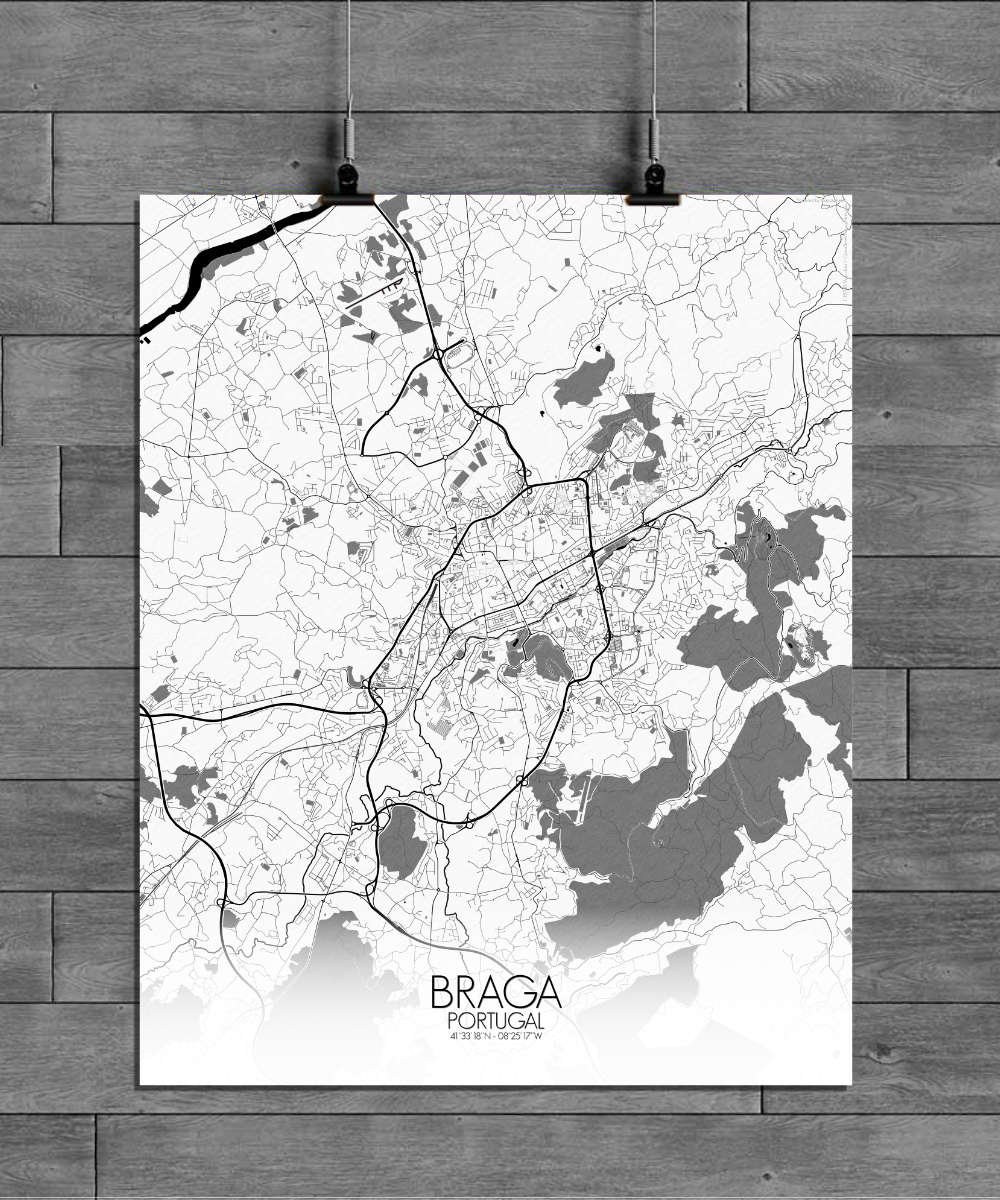 Poster City Map of Braga, Portugal: hang this map on your wall and let it transport you to the heart of Braga!