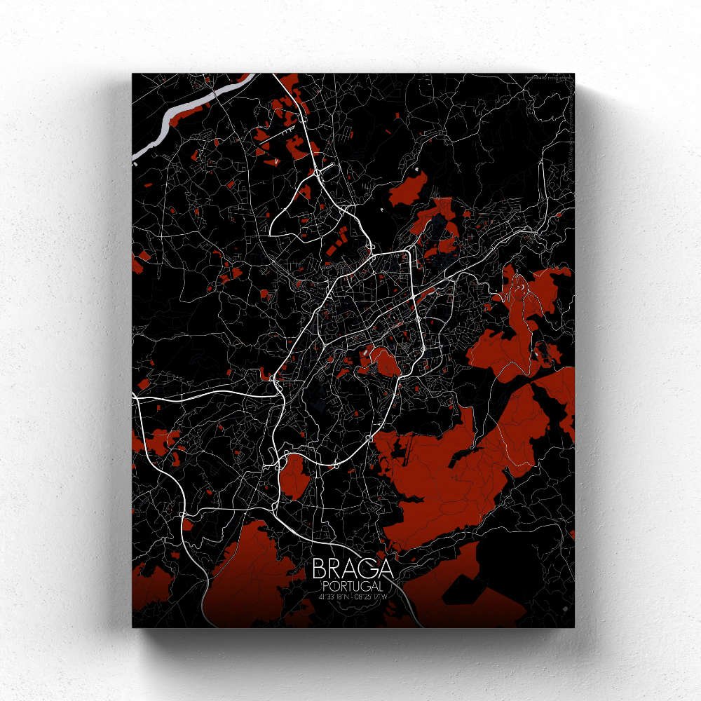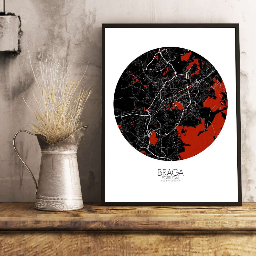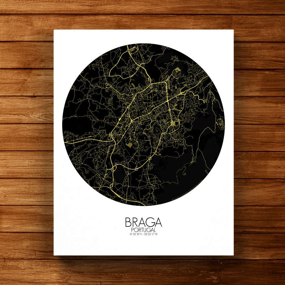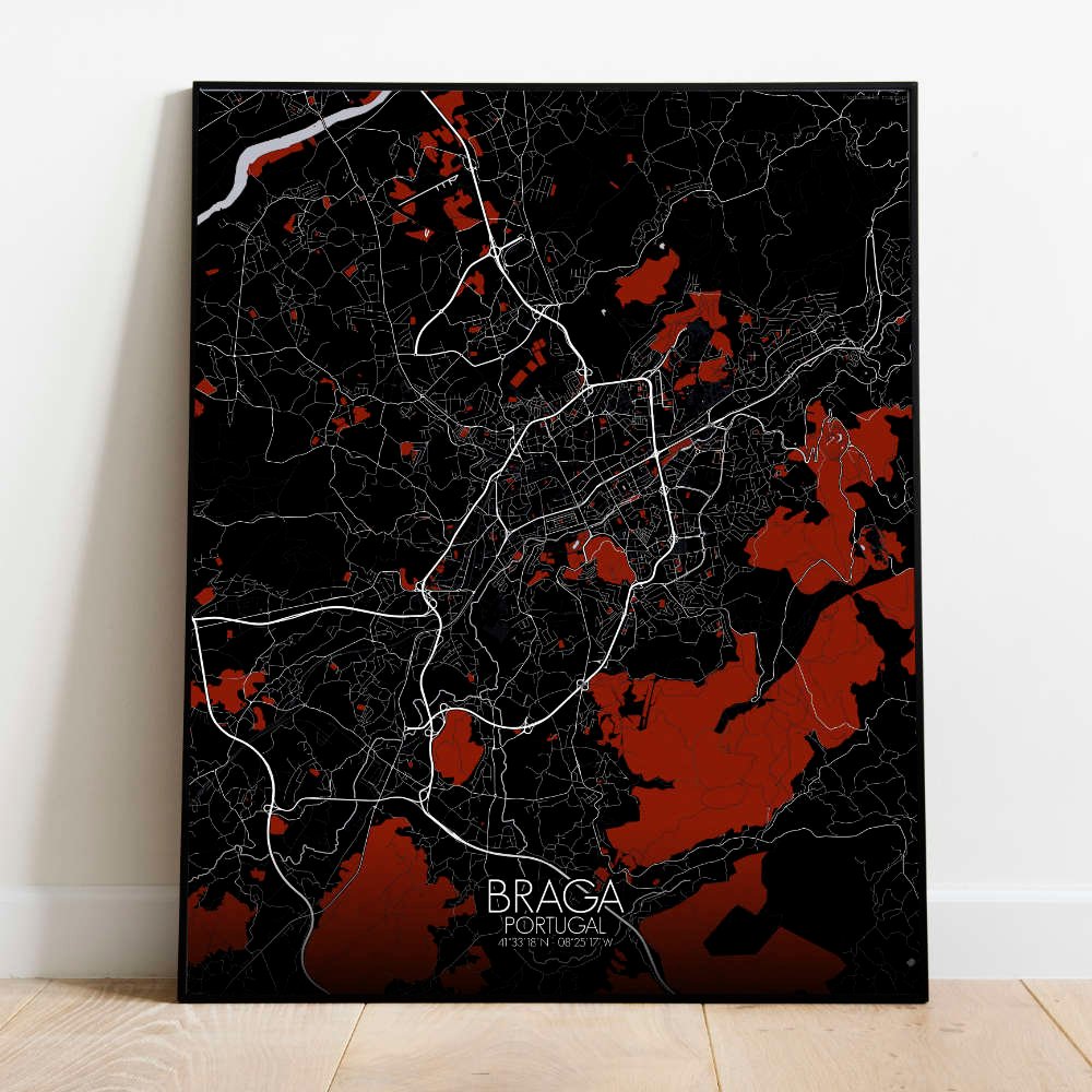 Poster City Map of Braga, Portugal: hang this map on your wall and let it transport you to the heart of Braga!