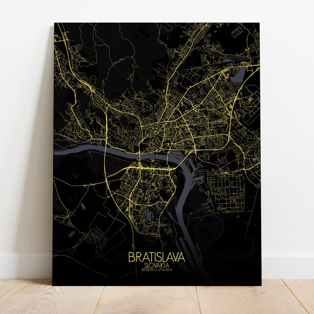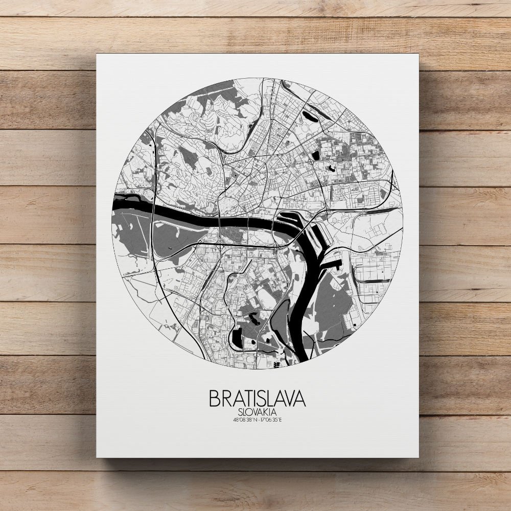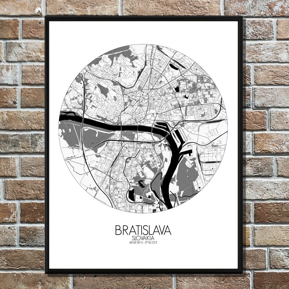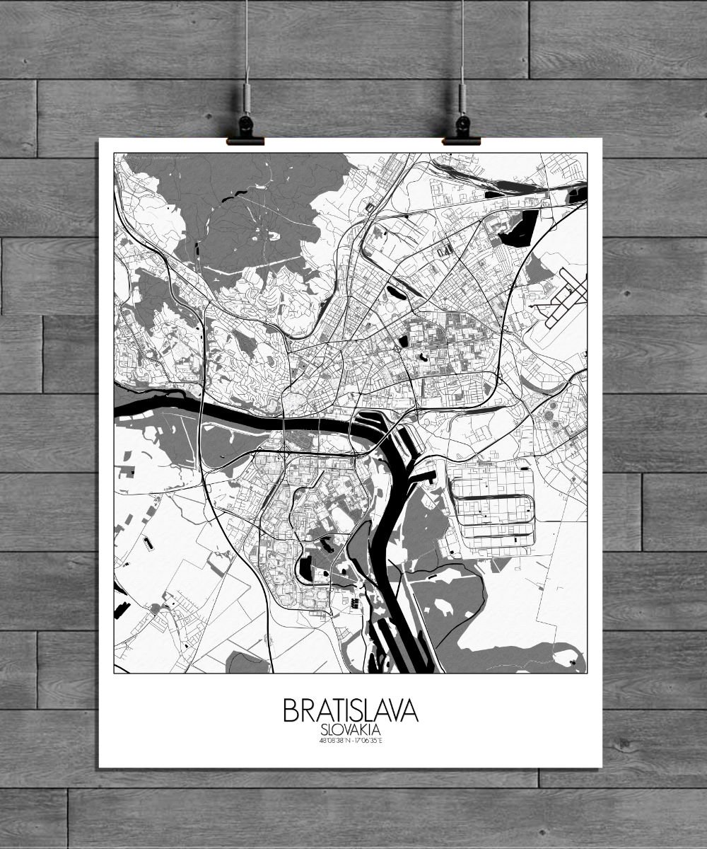Get this Poster City Map print of Bratislava, Slovakia, as a wall map. You can select the size, color or pattern for your map !