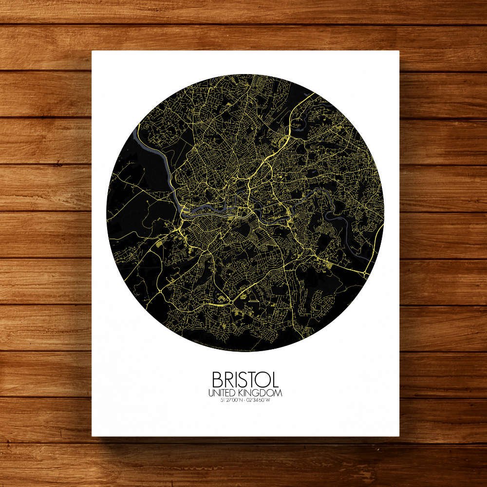 Get this Poster City Map print of Bristol, UK, as a wall map. You can select the size, color or pattern for your map !