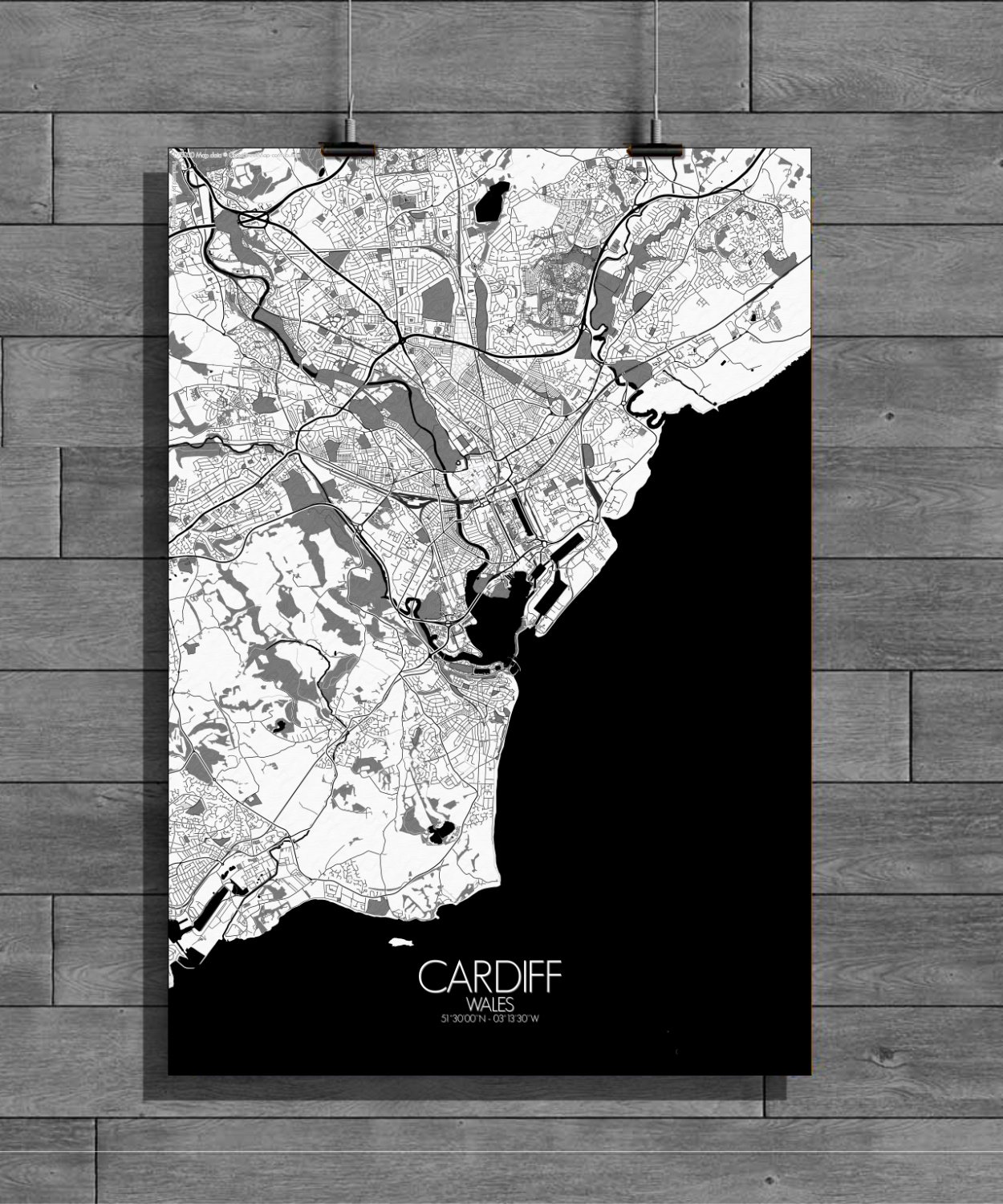 Get this Poster City Map print of Cardiff, Wales, as a wall map. You can select the size, color or pattern for your map !