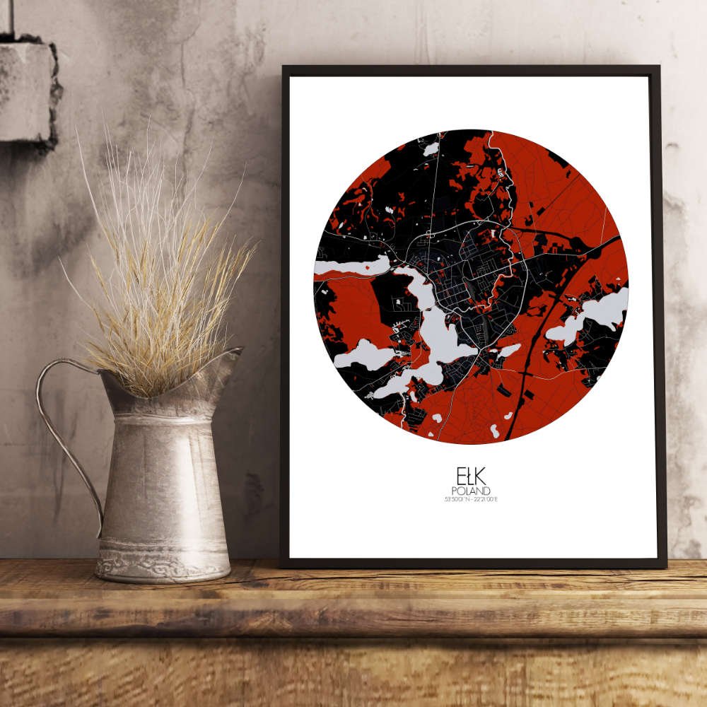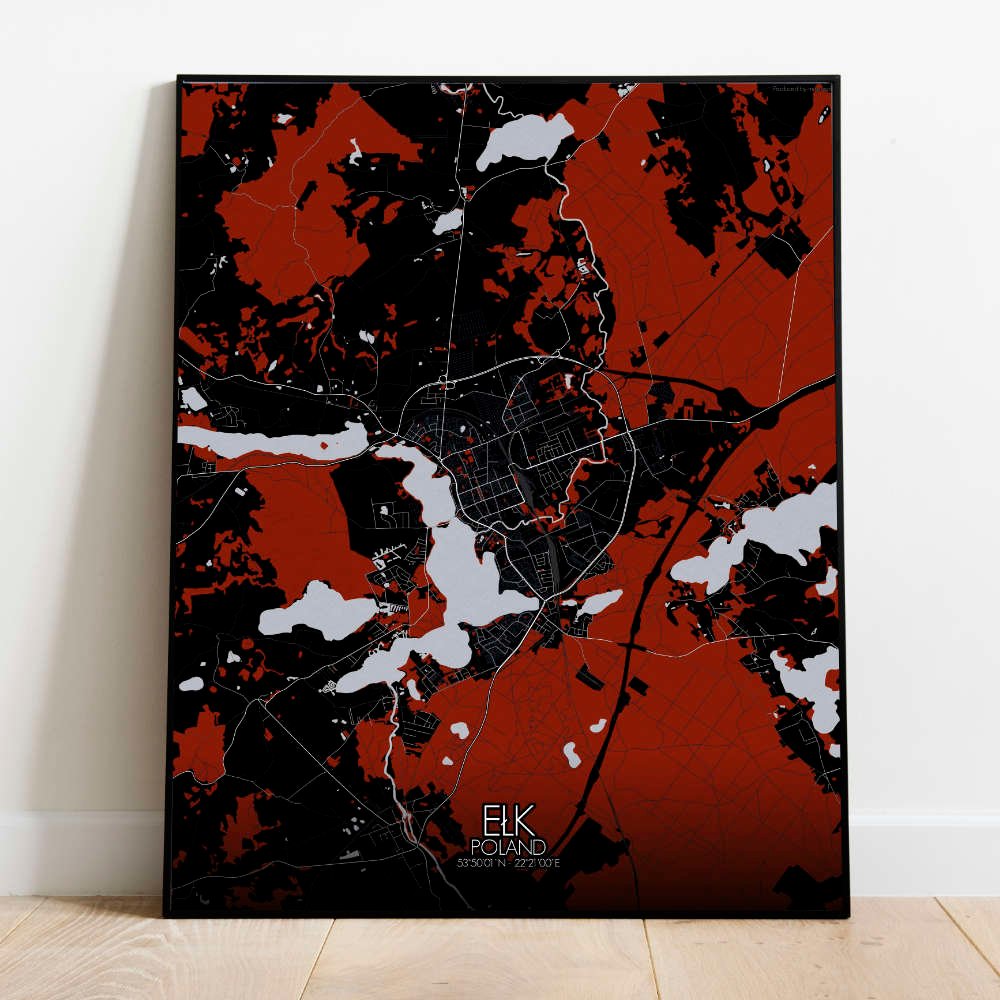 Poster of Elk, Poland (City Map): you might expect to hear the distant call of an elk, the city’s namesake, echoing through the lush greenery.