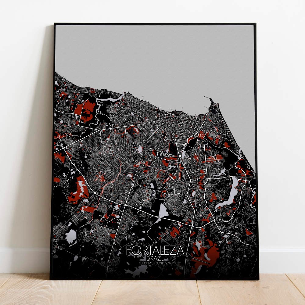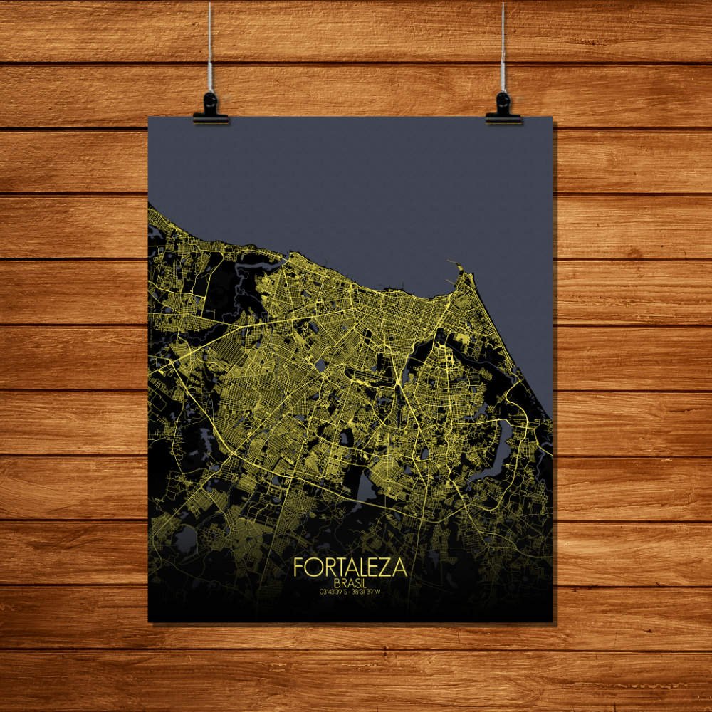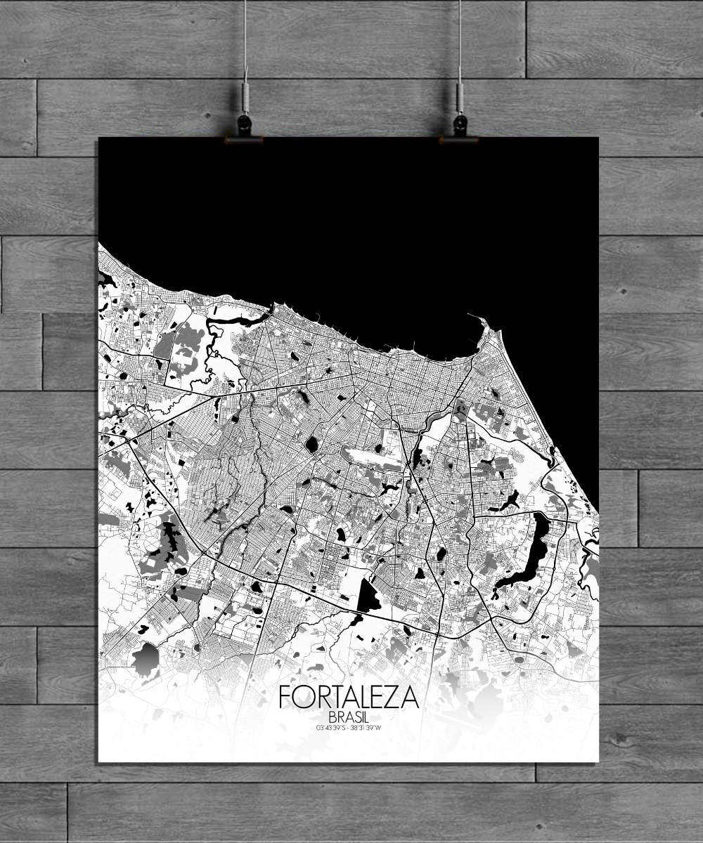 Poster City Map of Fortaleza, Ceará: Witness the azure embrace of the Atlantic Ocean as it caresses the city’s coastline with gentle waves of coastal charm!