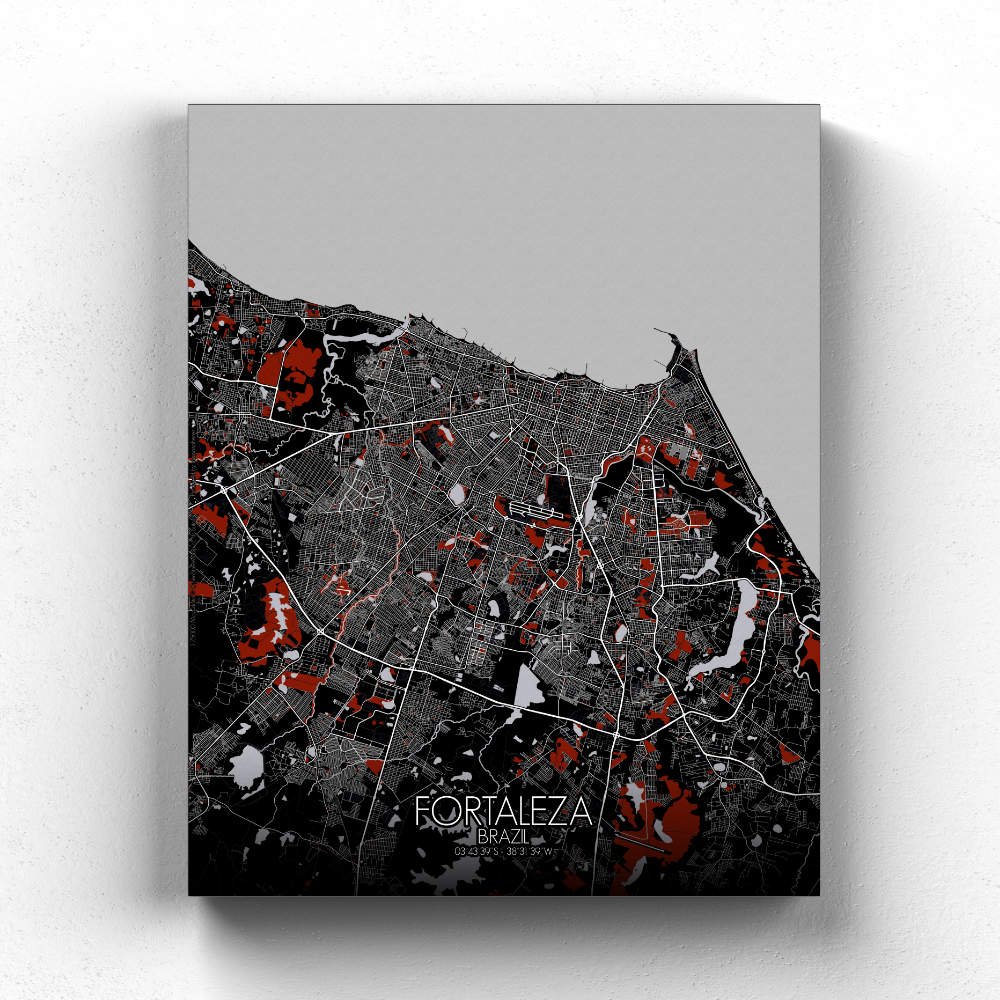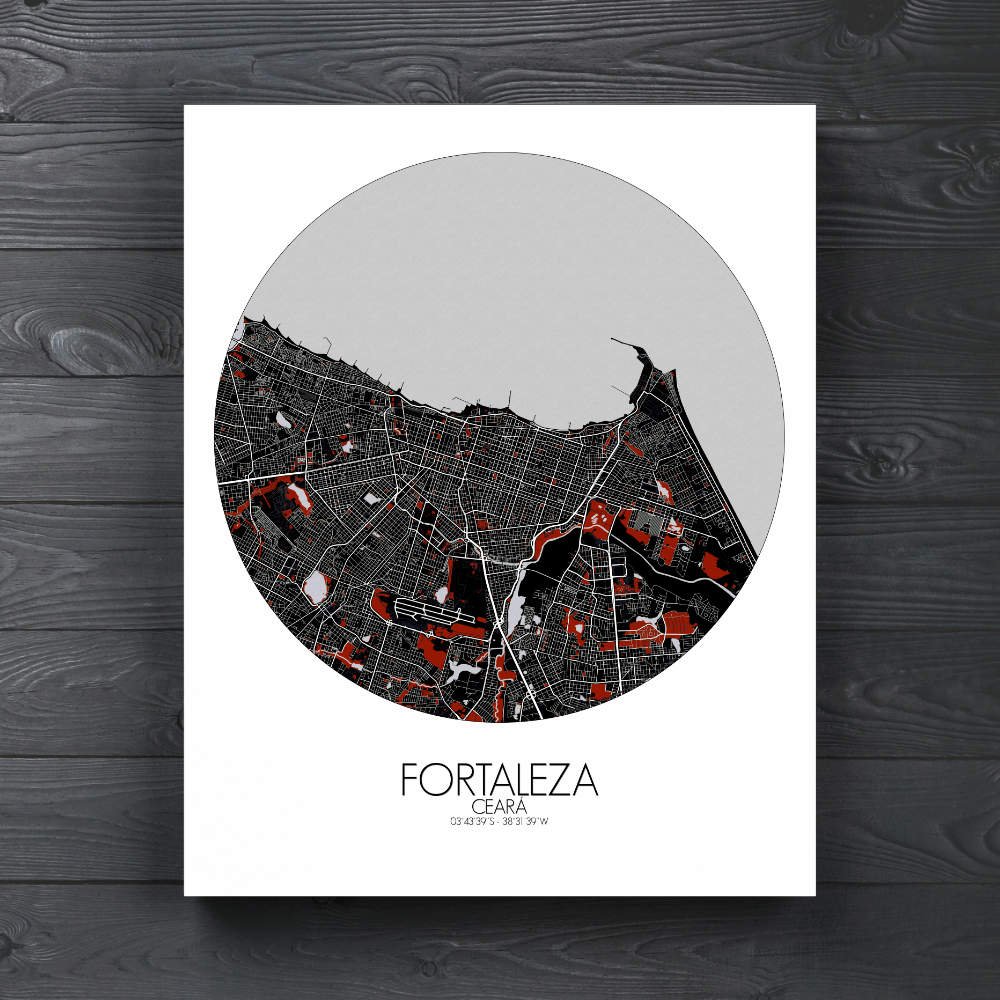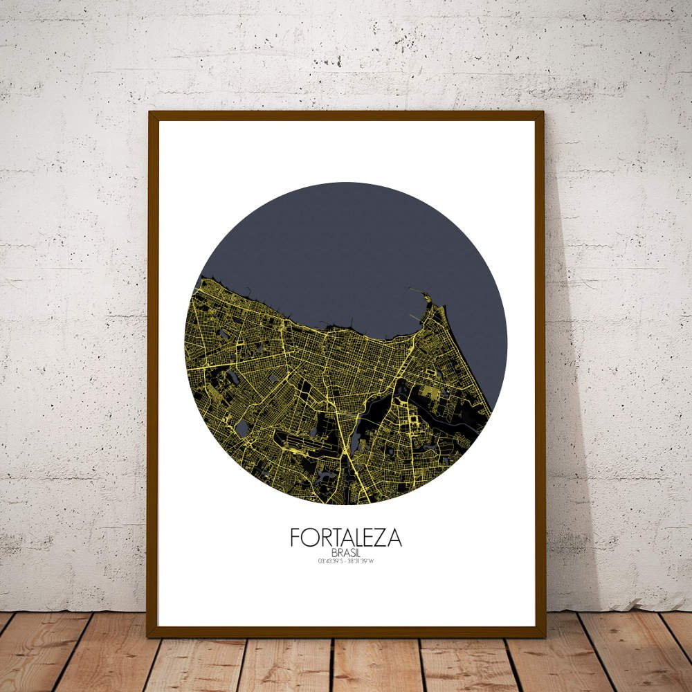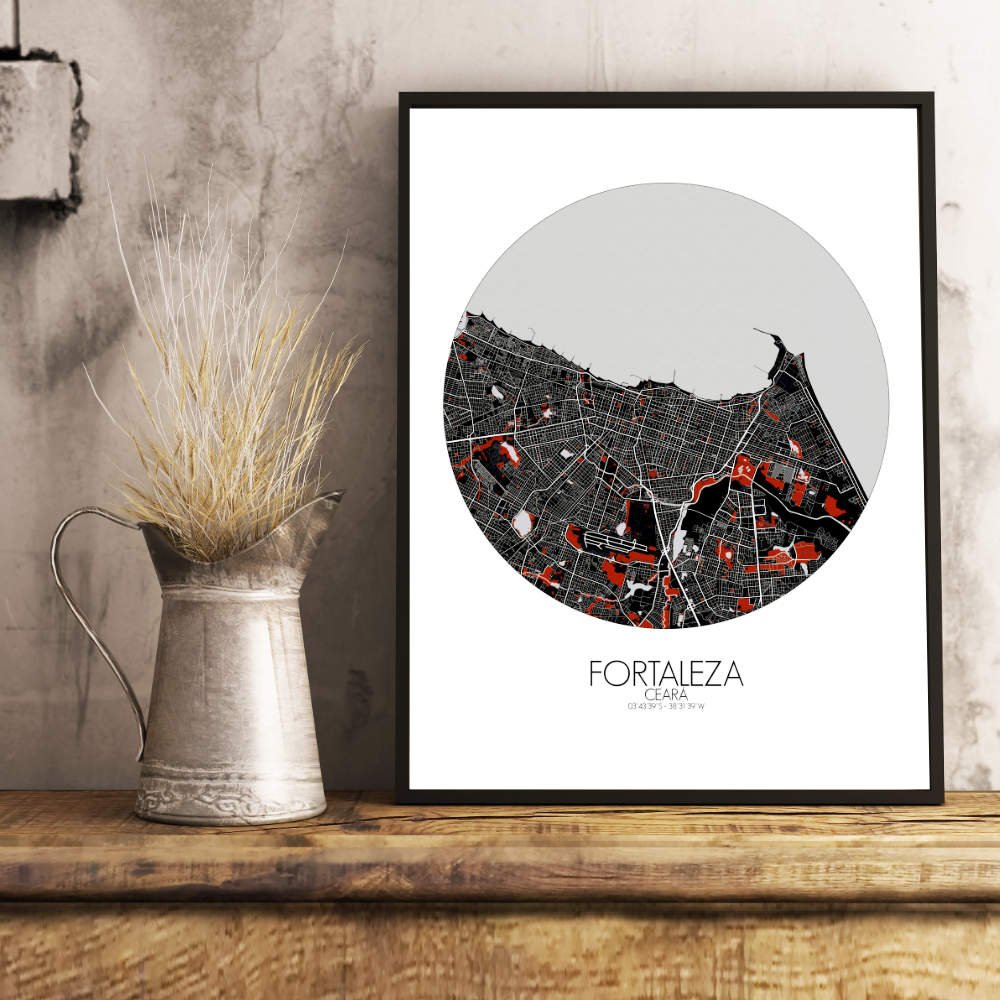 Poster City Map of Fortaleza, Ceará: Witness the azure embrace of the Atlantic Ocean as it caresses the city’s coastline with gentle waves of coastal charm!