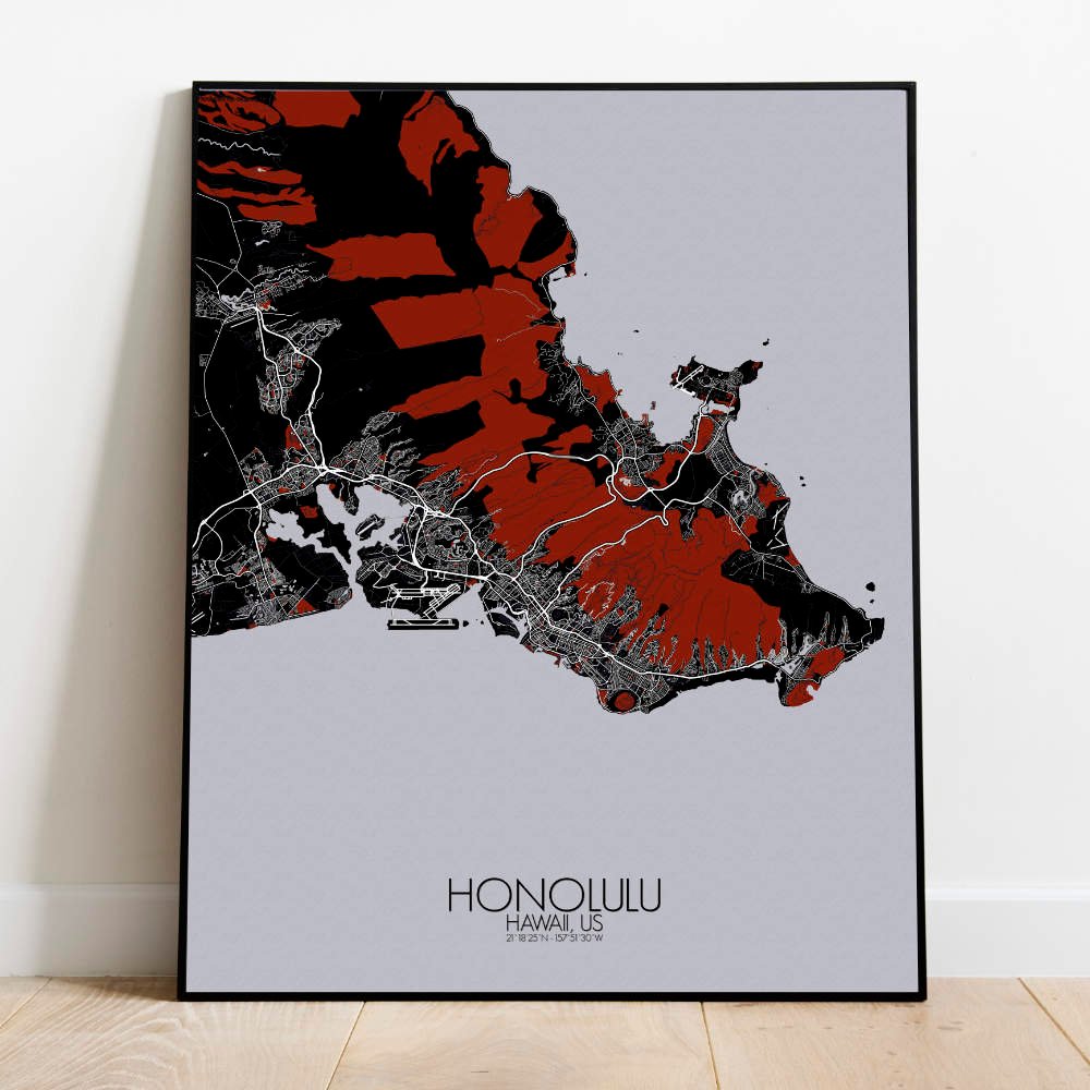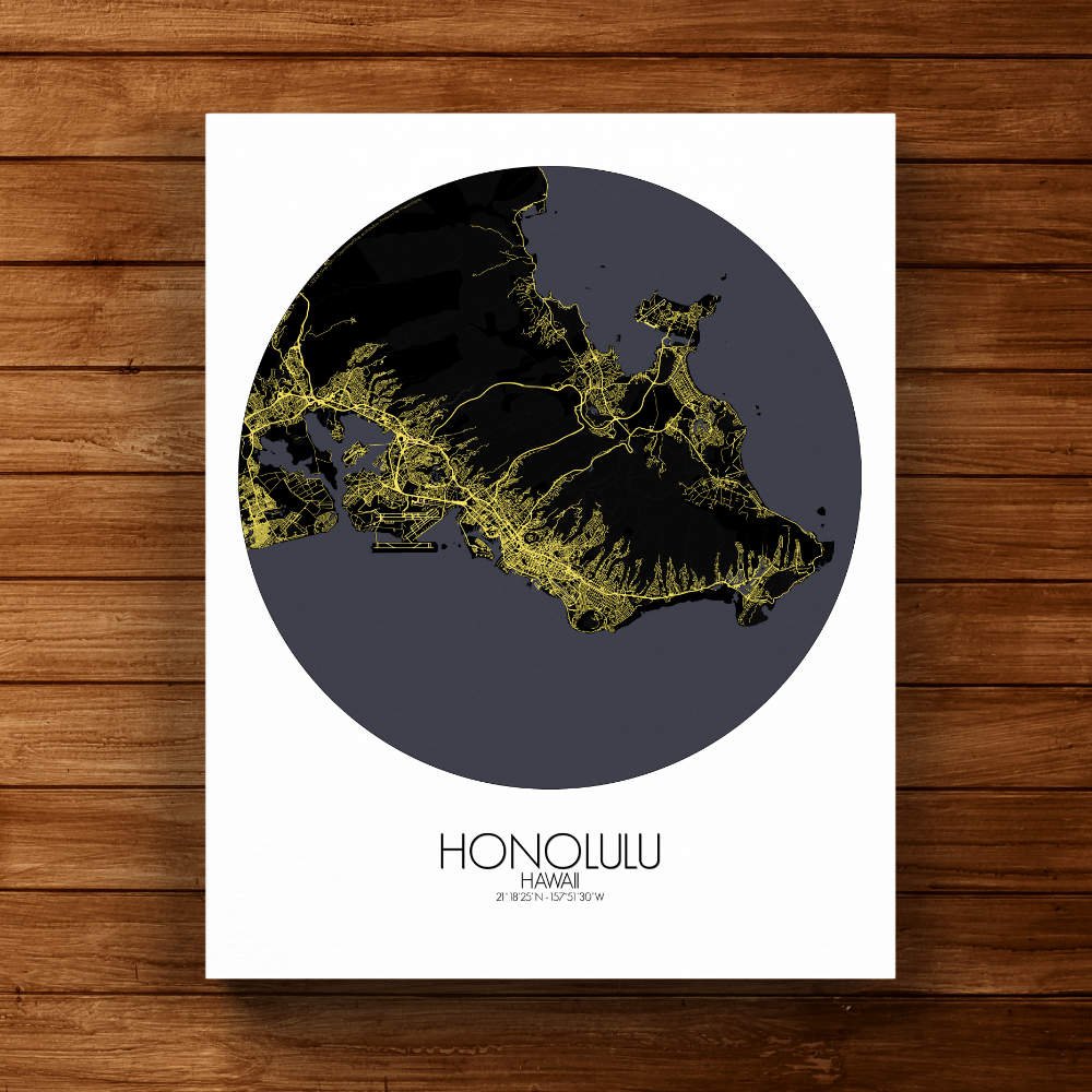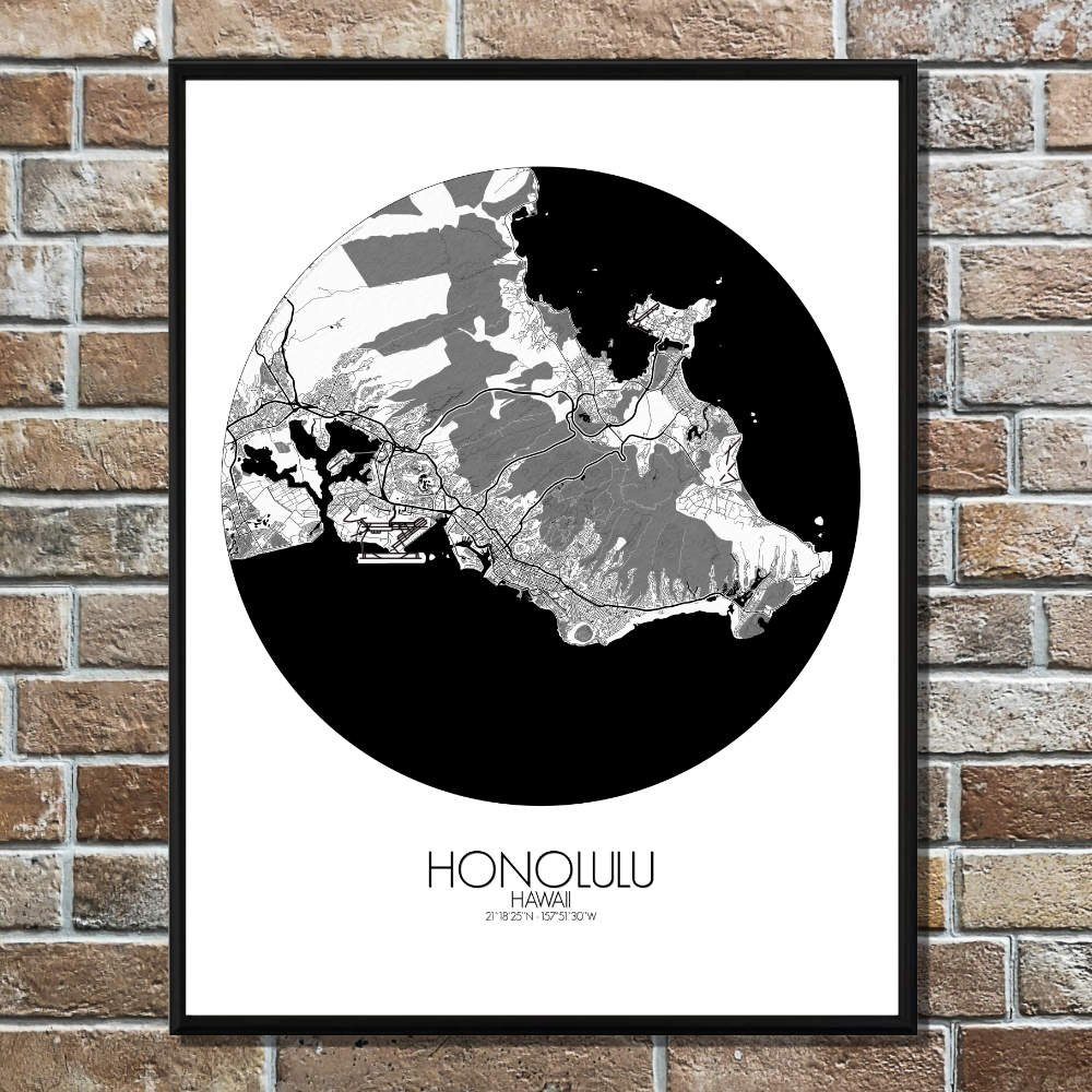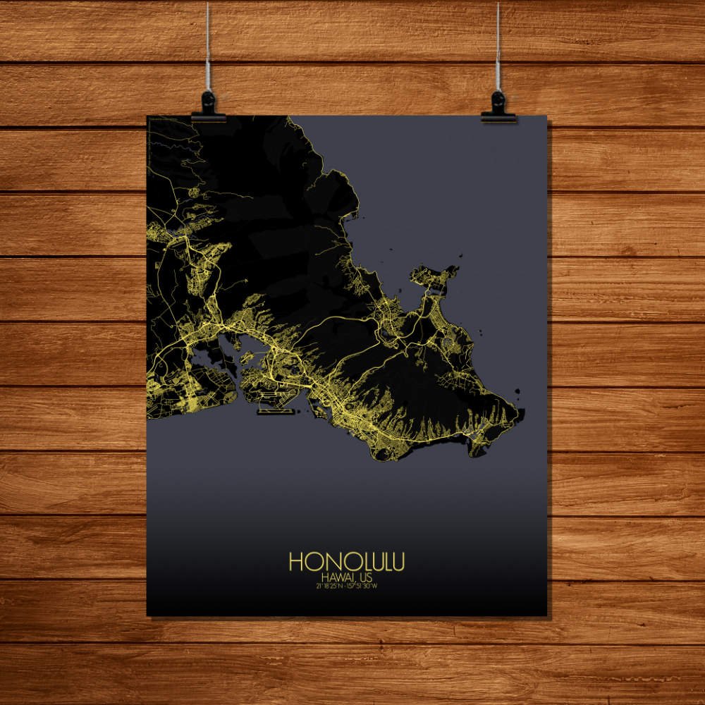Poster City map of Honolulu, Hawai: Whether you’re drawn to its sweeping coastline, its volcanic origins, or its historical landmarks, the map of Honolulu offers a striking and thoughtful representation.