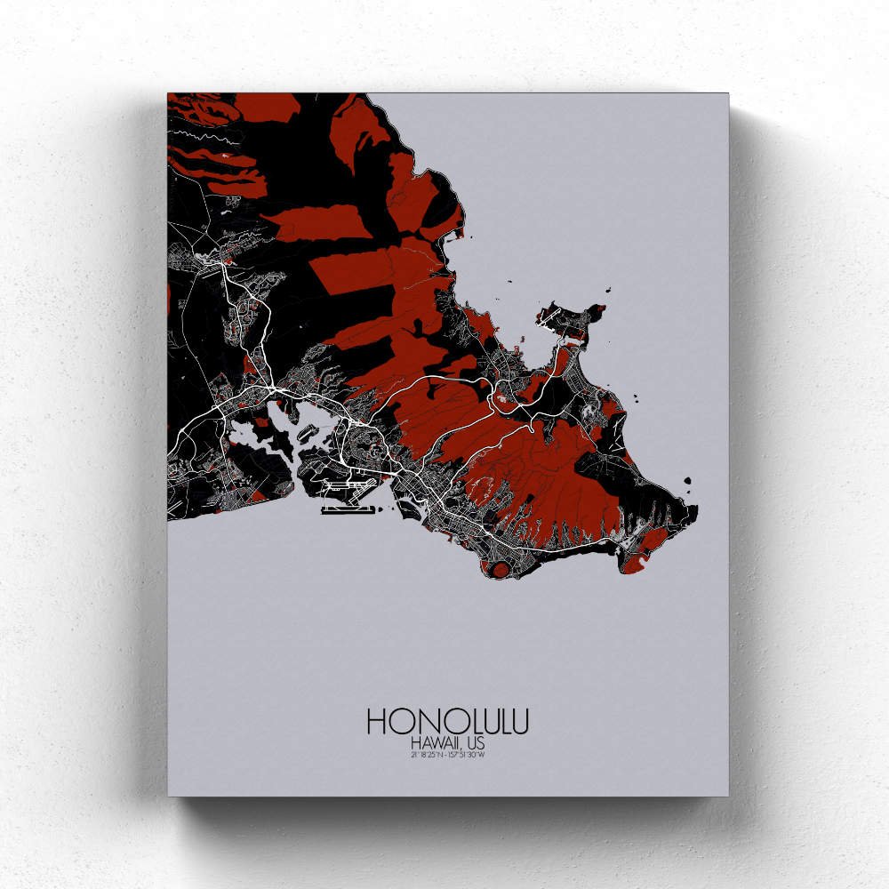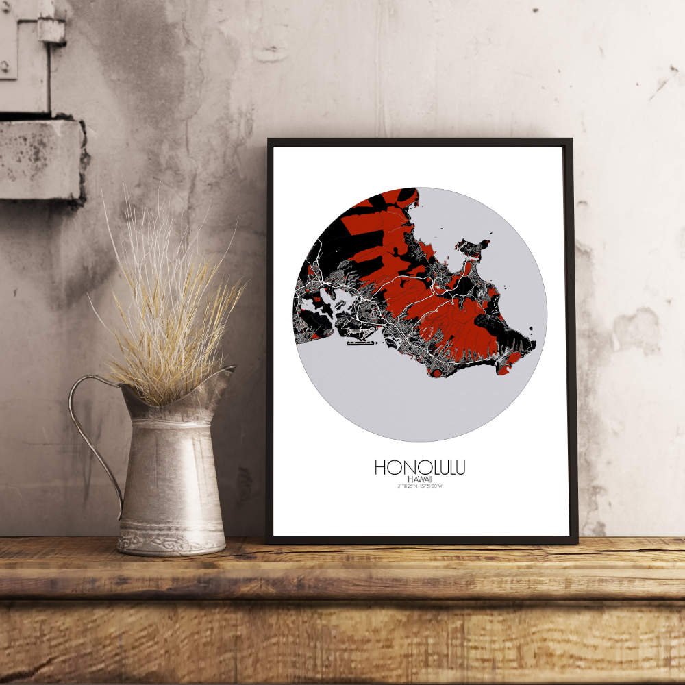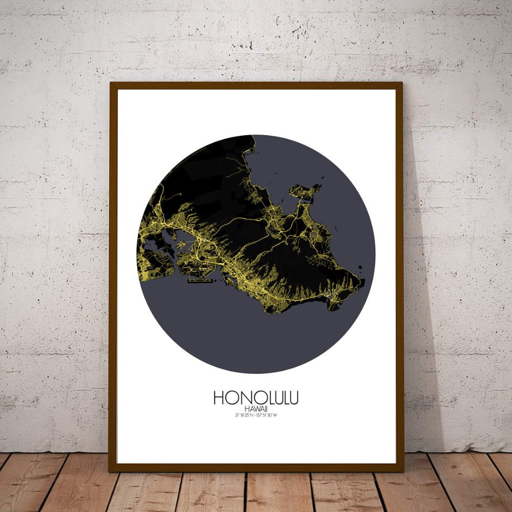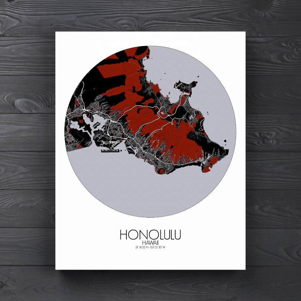 Poster City map of Honolulu, Hawai: Whether you’re drawn to its sweeping coastline, its volcanic origins, or its historical landmarks, the map of Honolulu offers a striking and thoughtful representation.