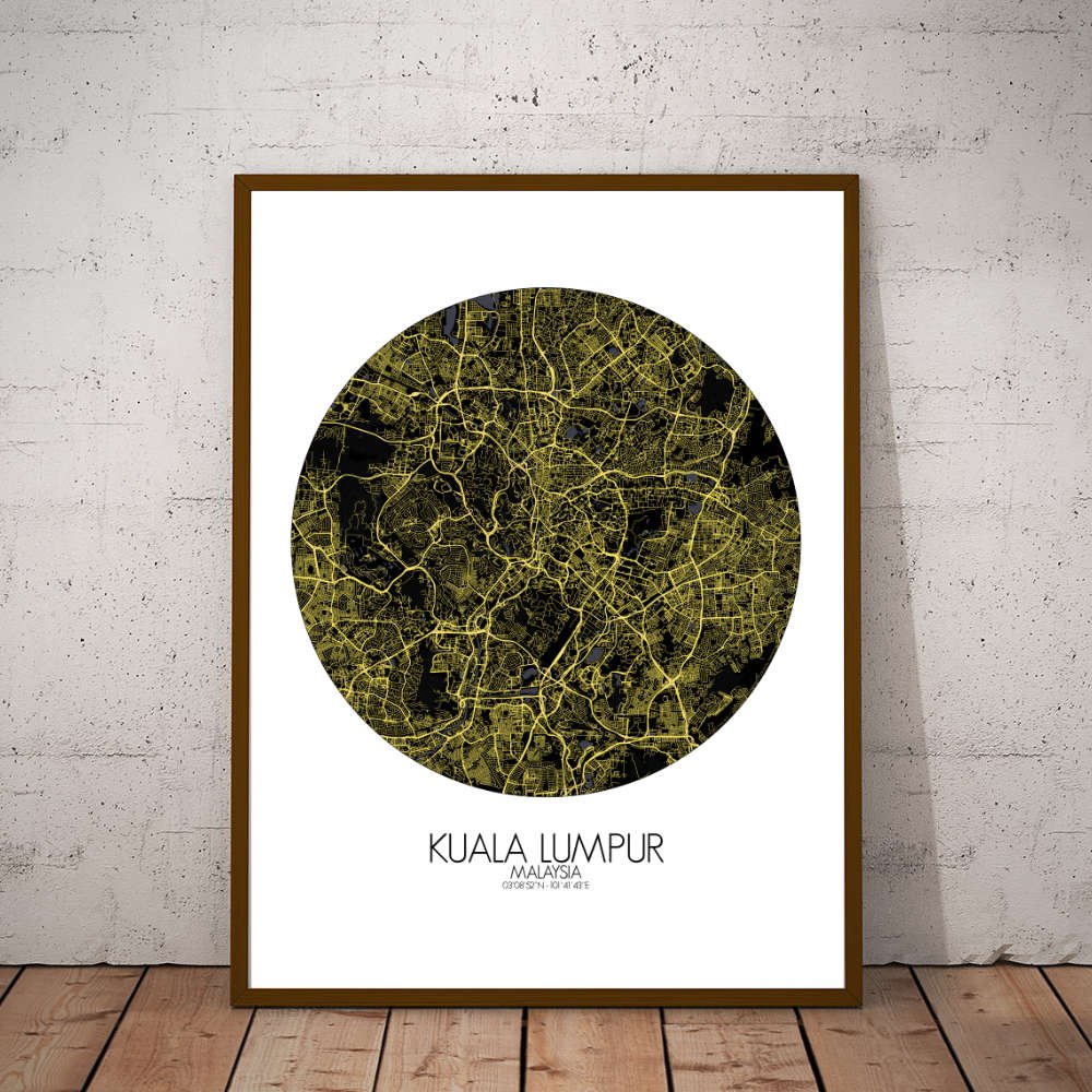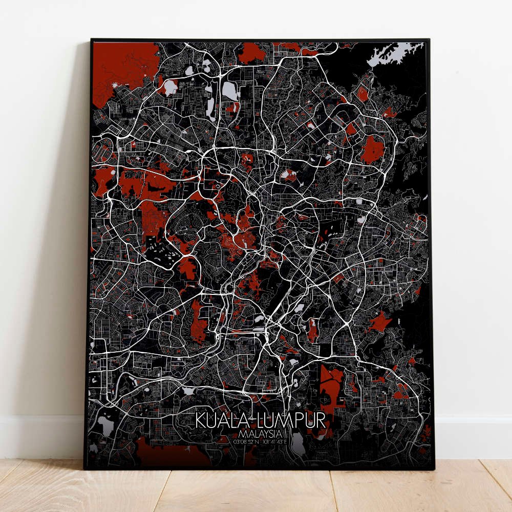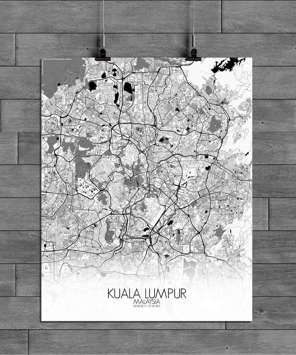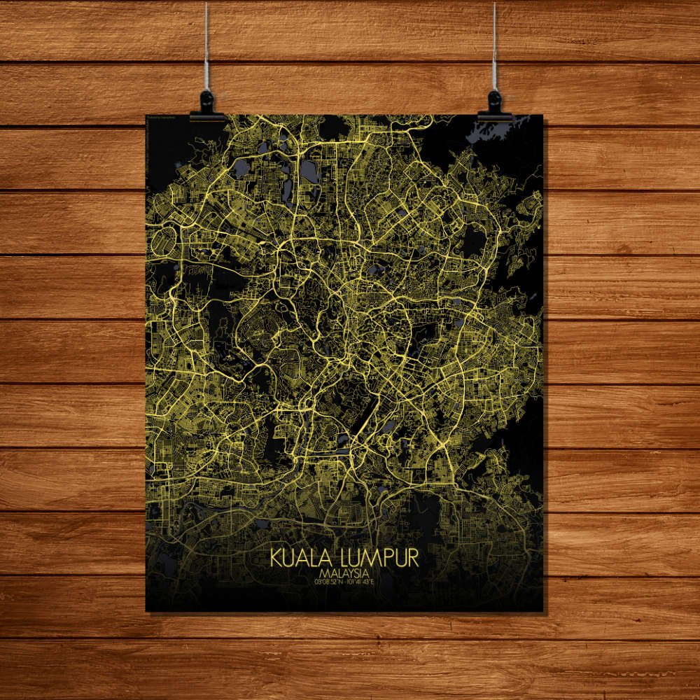 Poster City map of Kuala Lumpur, Malaysia: This map offers a snapshot of a city always evolving, with every curve and landmark telling the tale of a young but proud metropolis that never forgets its roots.