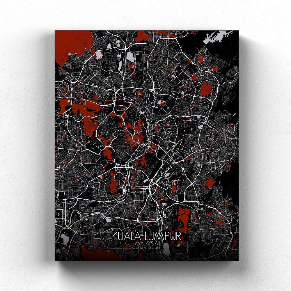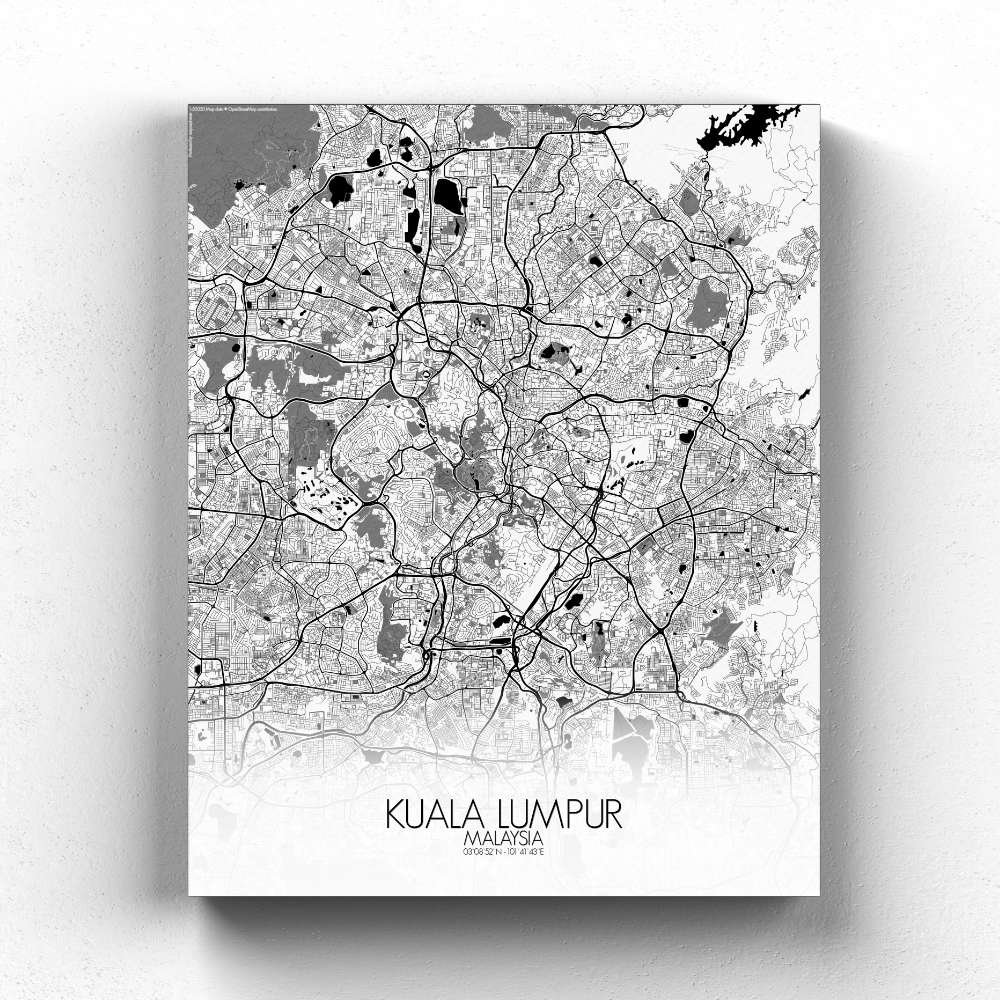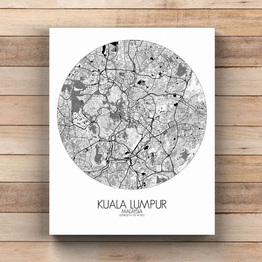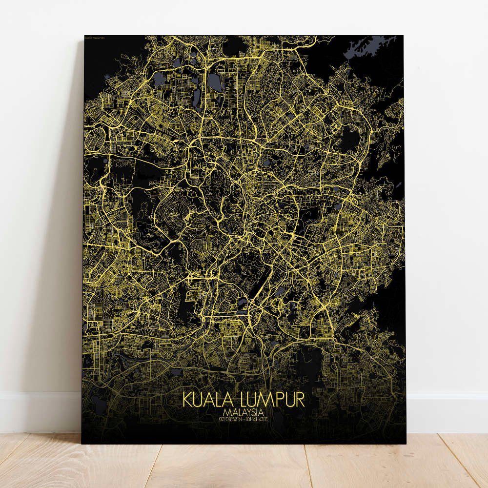 Poster City map of Kuala Lumpur, Malaysia: This map offers a snapshot of a city always evolving, with every curve and landmark telling the tale of a young but proud metropolis that never forgets its roots.